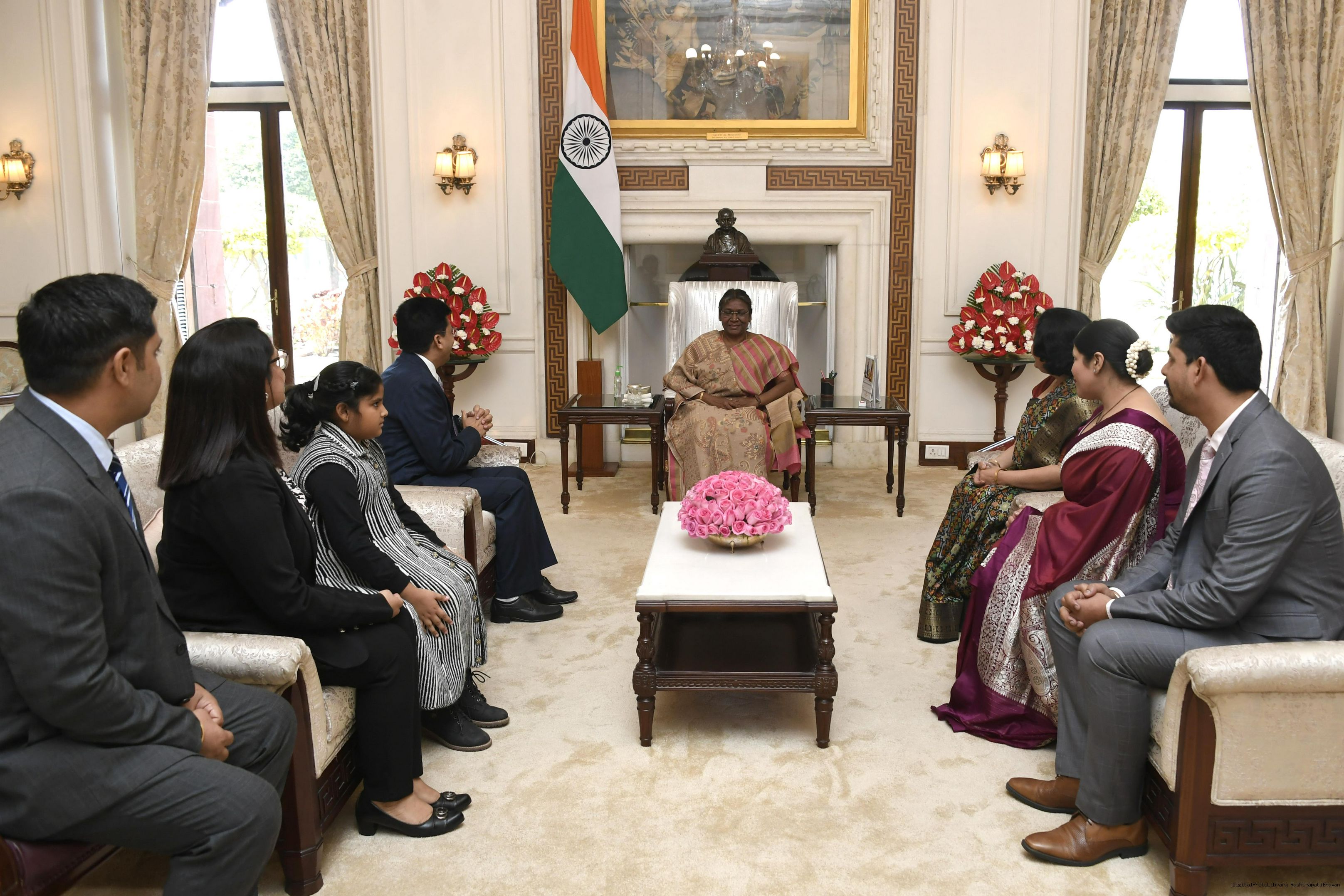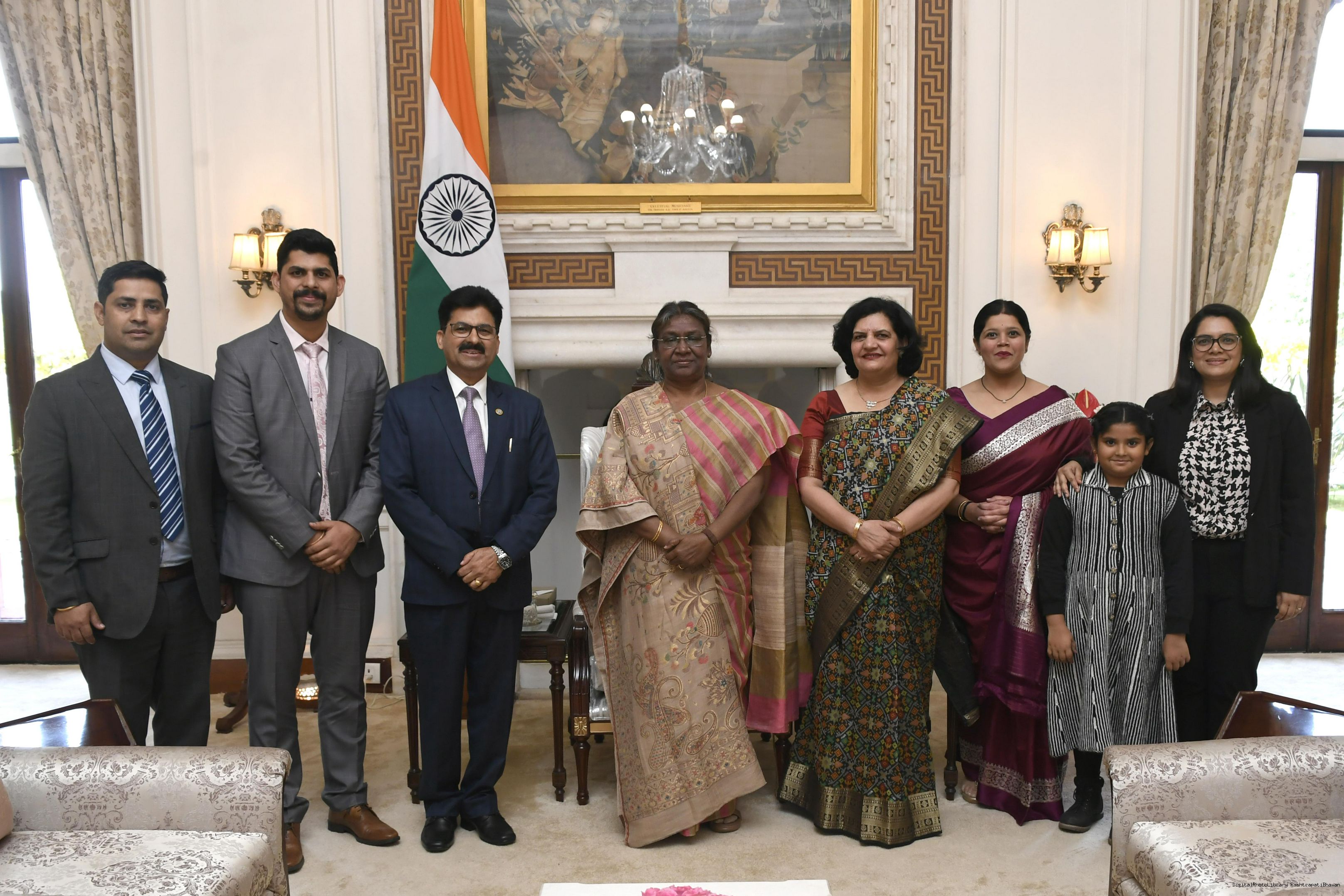 | Caption: | Shri Shrawan Kumar Sankhyan, General Manager, UCO Bank, Kolkata along with family members meeting with the President of India Smt. Droupadi Murmu at Rashtrapati Bhavan on February 04, 2023. |