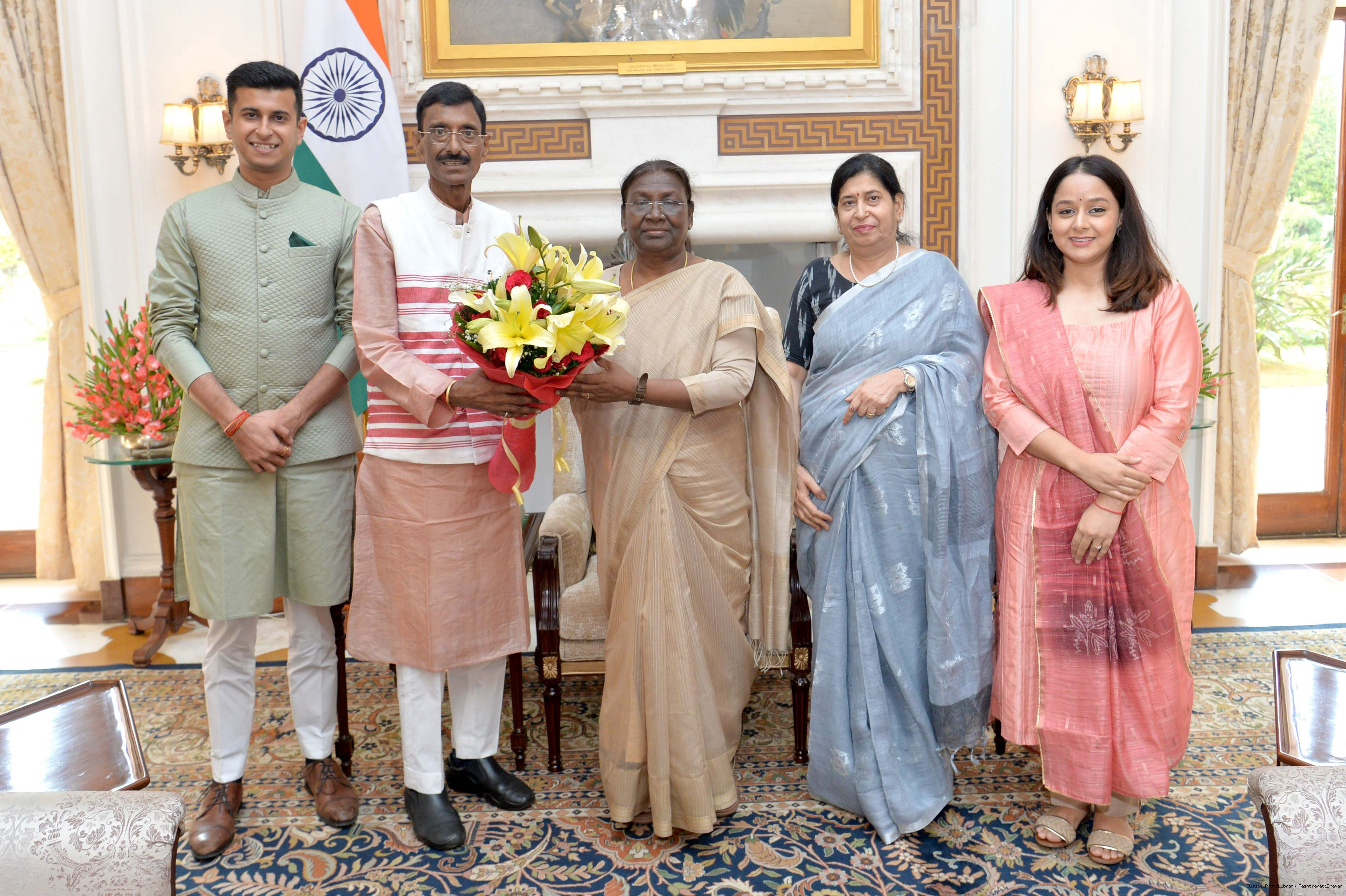 | Caption: | Shri Sanjay Seth, MP (LS) along with family members meeting with the President of India, Smt. Droupadi Murmu, at Rashtrapati Bhavan on Aug 09, 2022. |