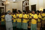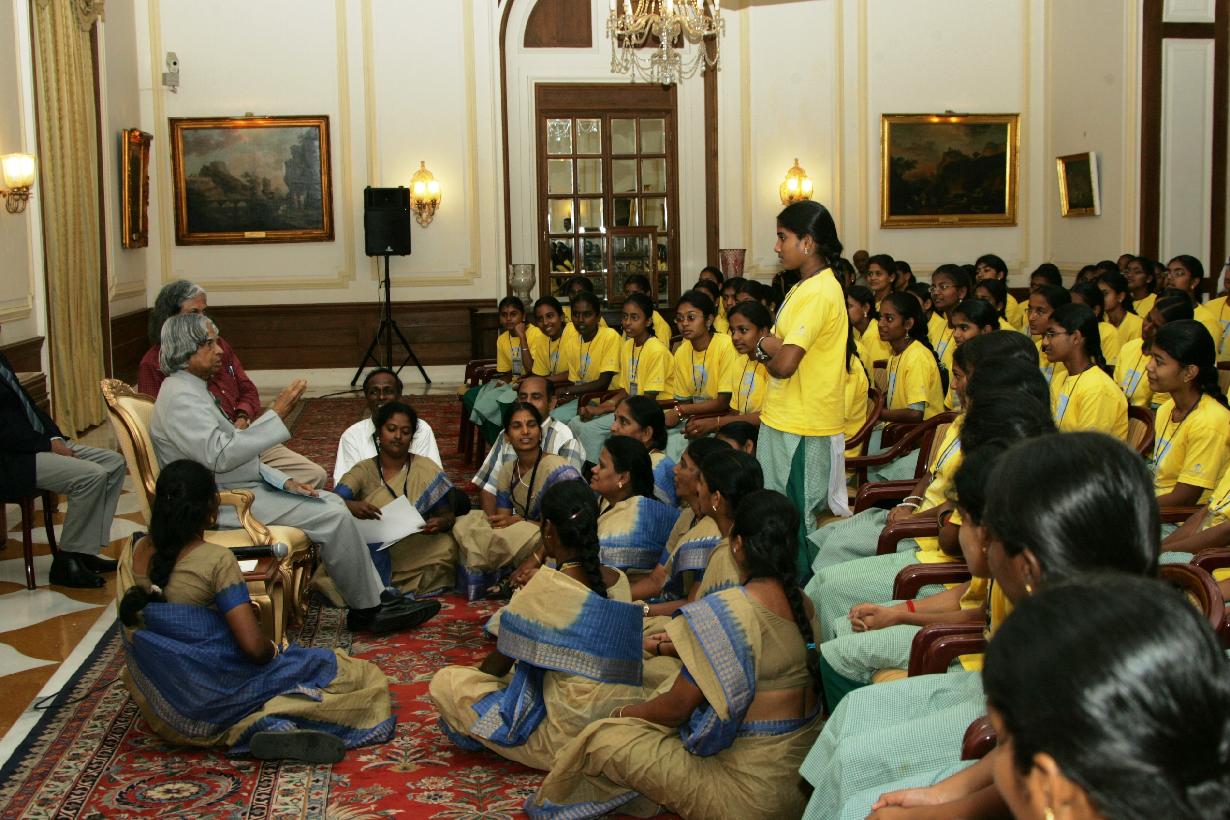 | Caption: | The Students from Jaivabai Municipal Girls Hr Sec School, Tirupur calling on the President of India, Dr A P J Abdul Kalam at the Yellow Drawing Room of Rashtrapati Bhavan in New Delhi on Sep 28, 2005 |