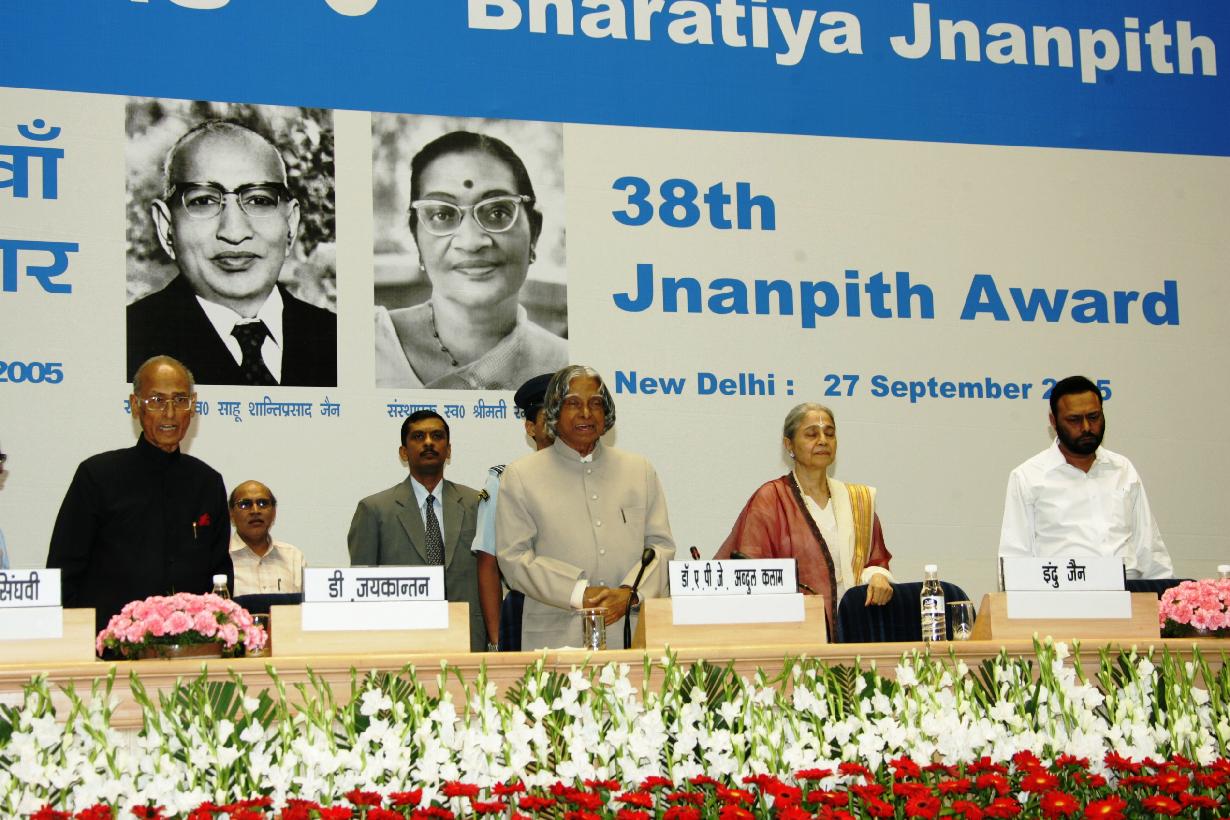 | Caption: | The President of India, Dr A P J Abdul Kalam giving away the 38th Jnanpith Award for 2002 to Shri D J Jaikanthan at Vigyan Bhavan in New Delhi on Sep 27, 2005 |