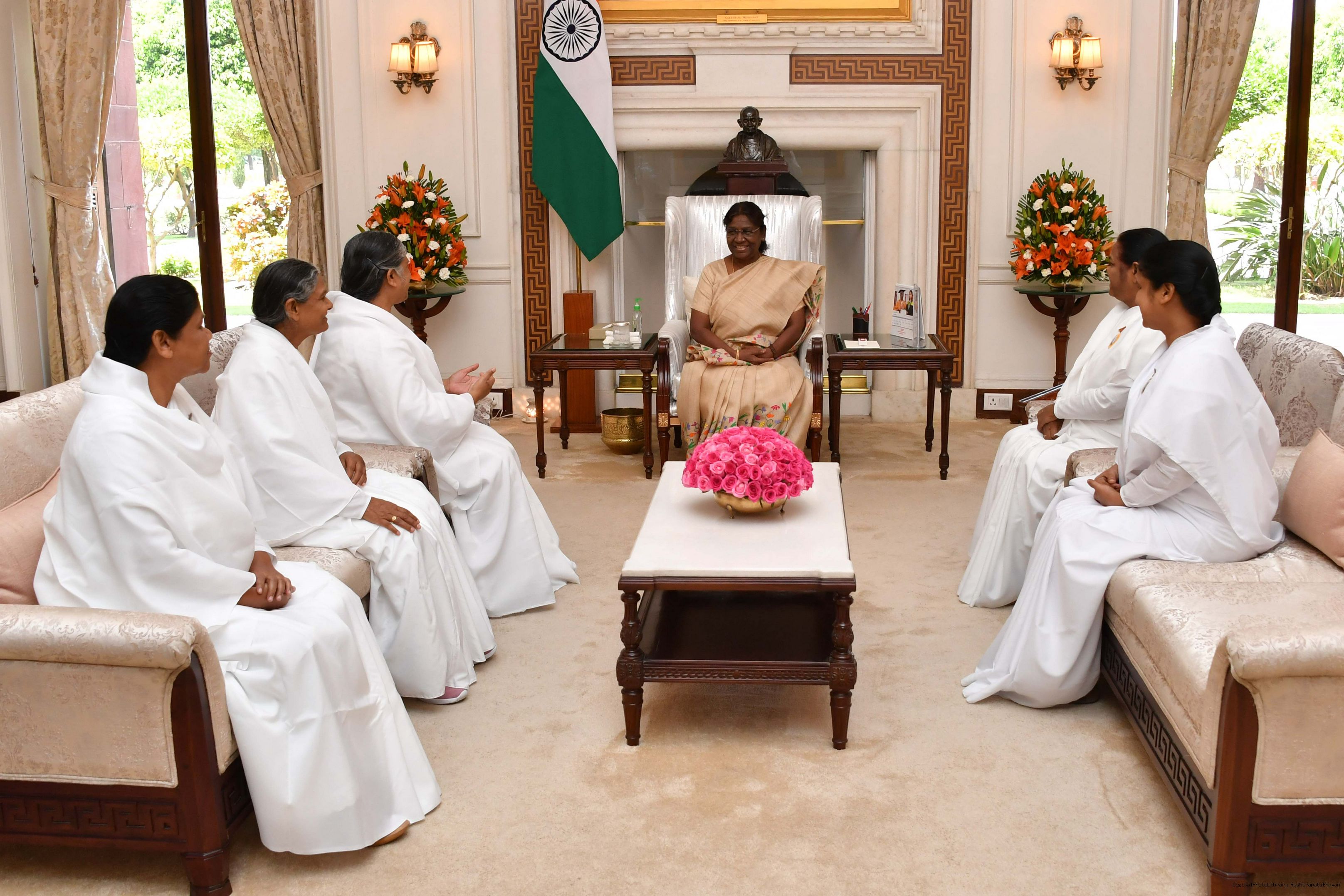 | Caption: | BK Leena Bhuyan, BK Prabhamani Mahanty, BK Sakhi Sahoo, along with Others meeting with the President of India, Smt. Droupadi Murmu at Rashtrapati Bhavan on June 02, 2023. |