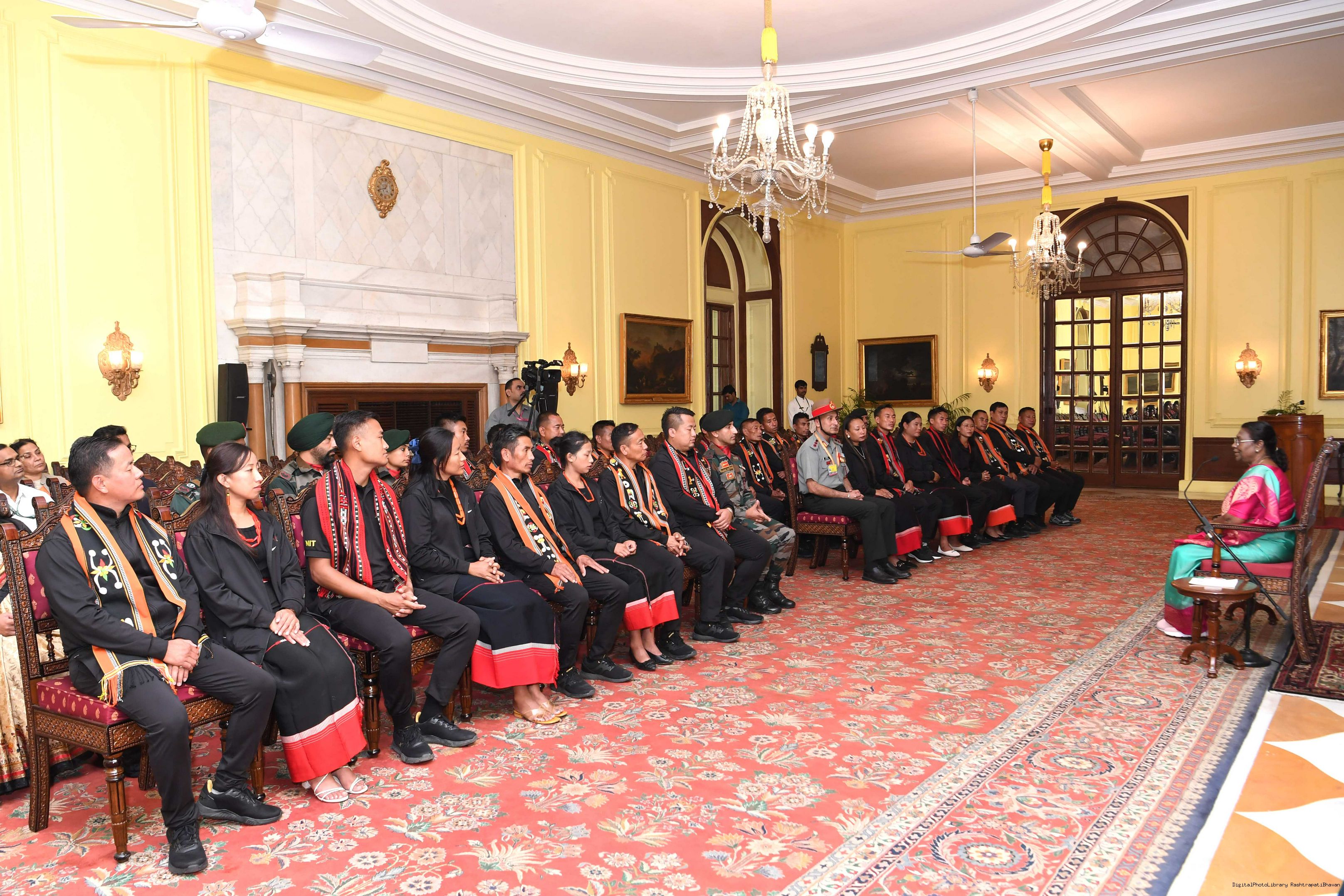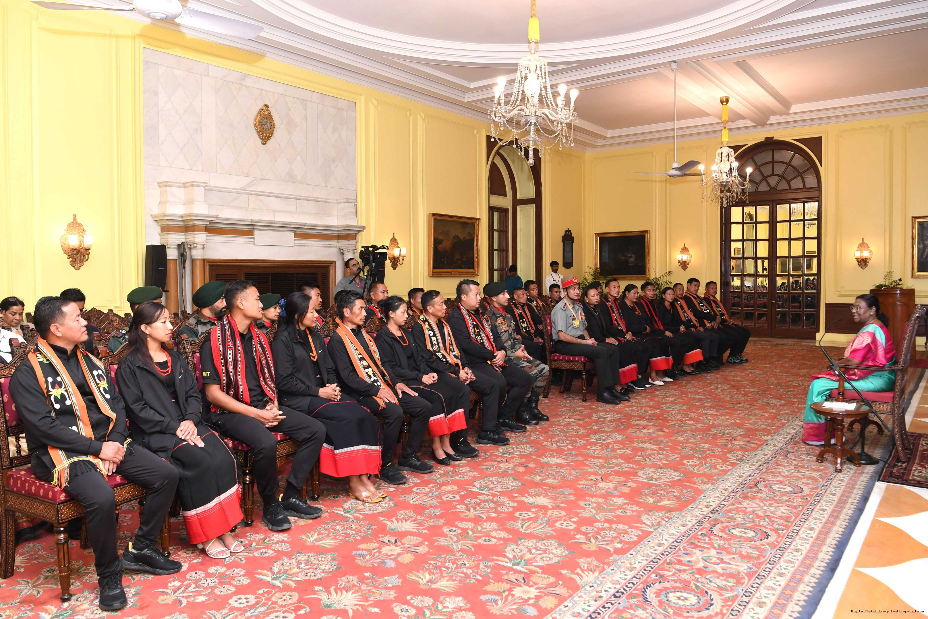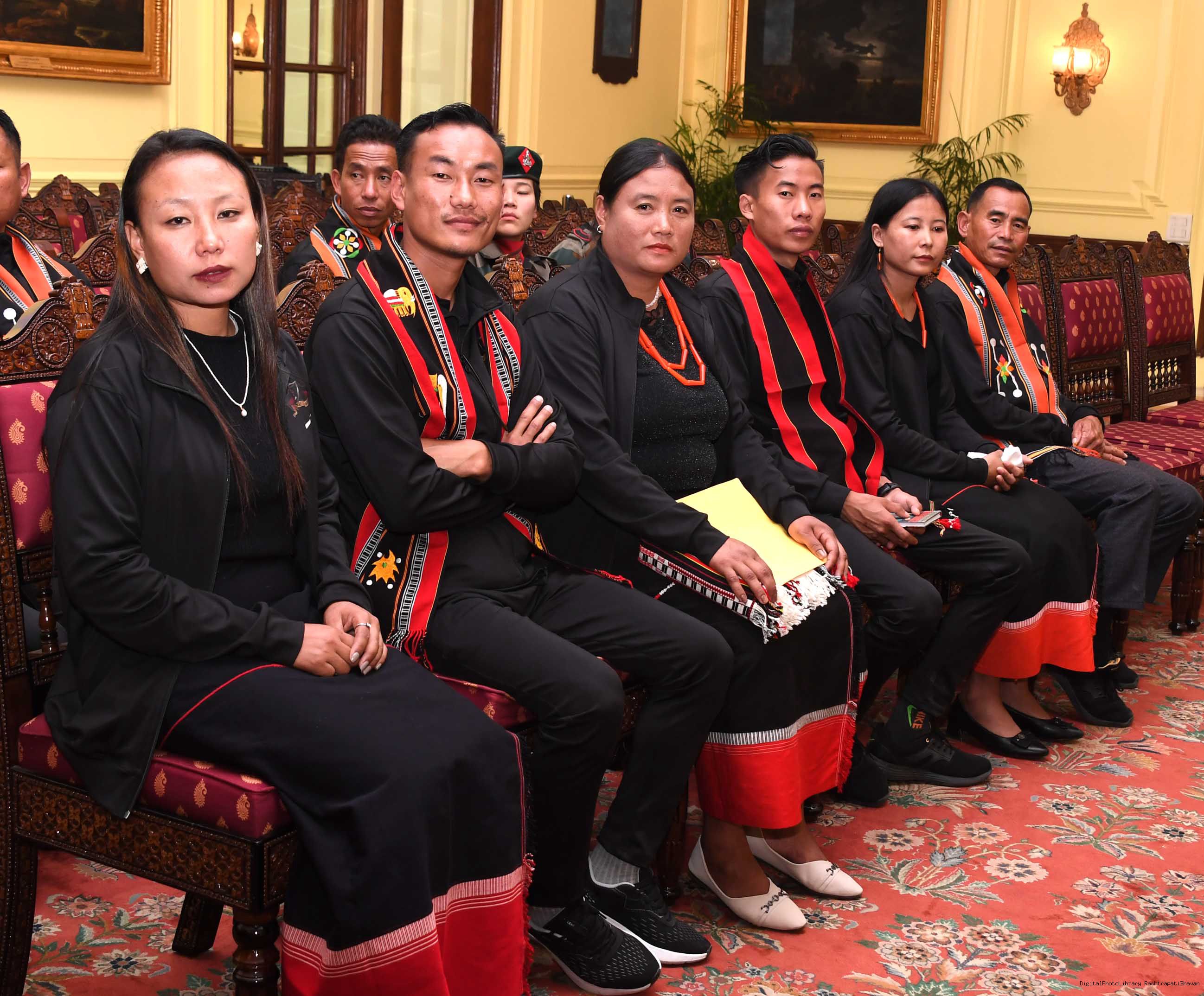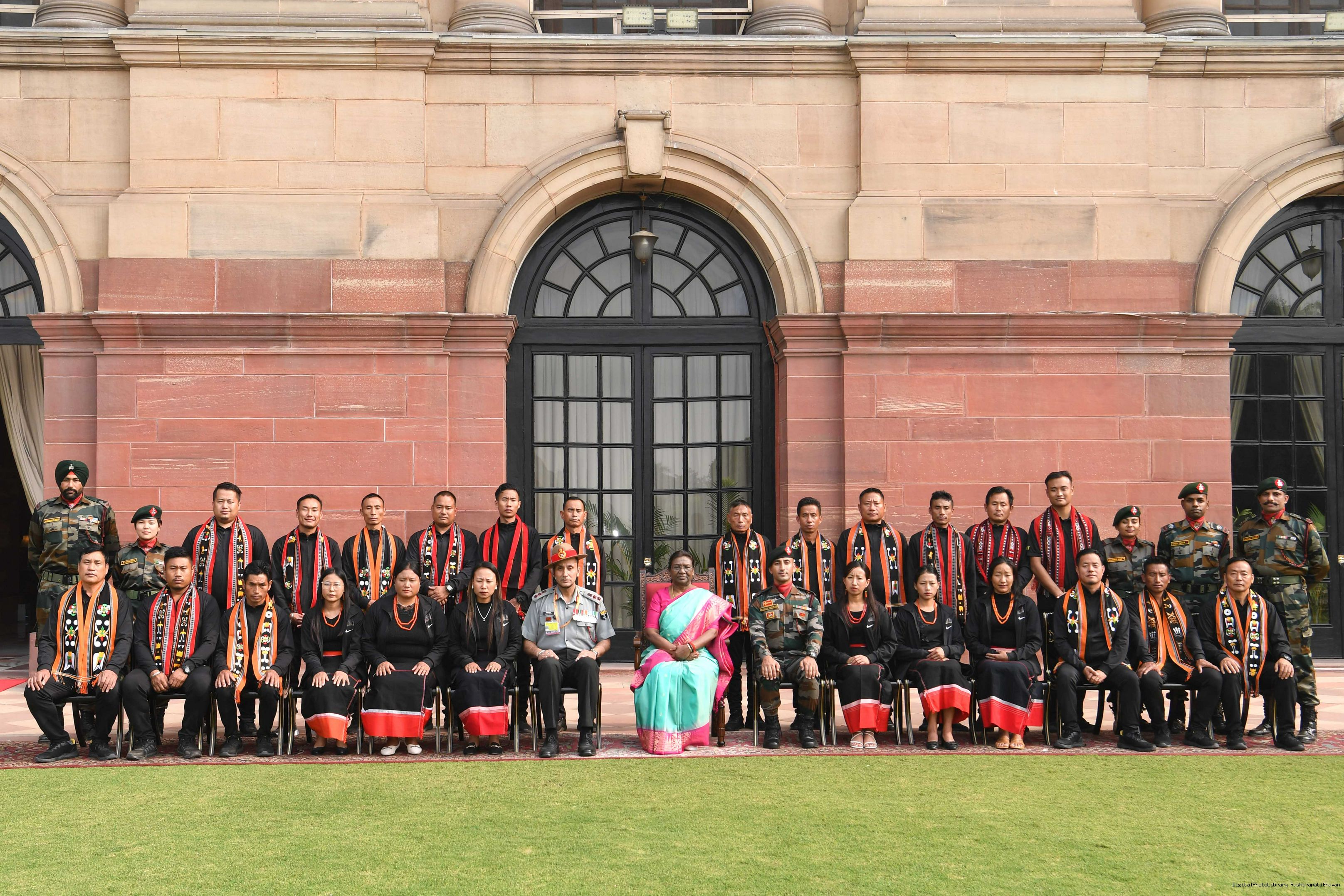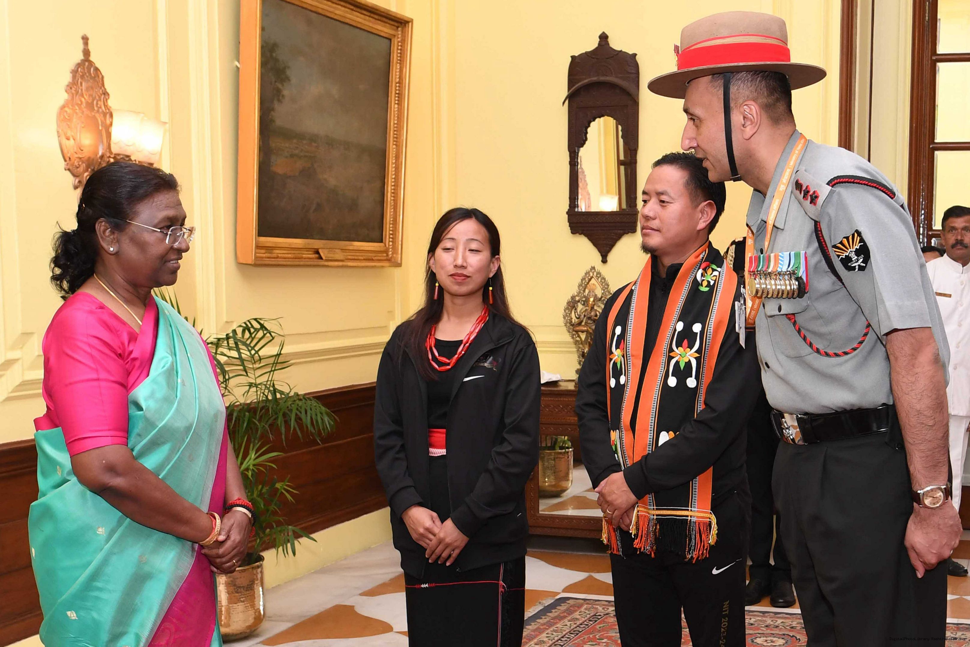 | Caption: | The President of india smt. Droupadi Murmu Meeting with the 24 civilians from Kohima (Nagaland) as a part of National Integration Tour (NIT) being organized by Assam Rifle 24, 2023. |
