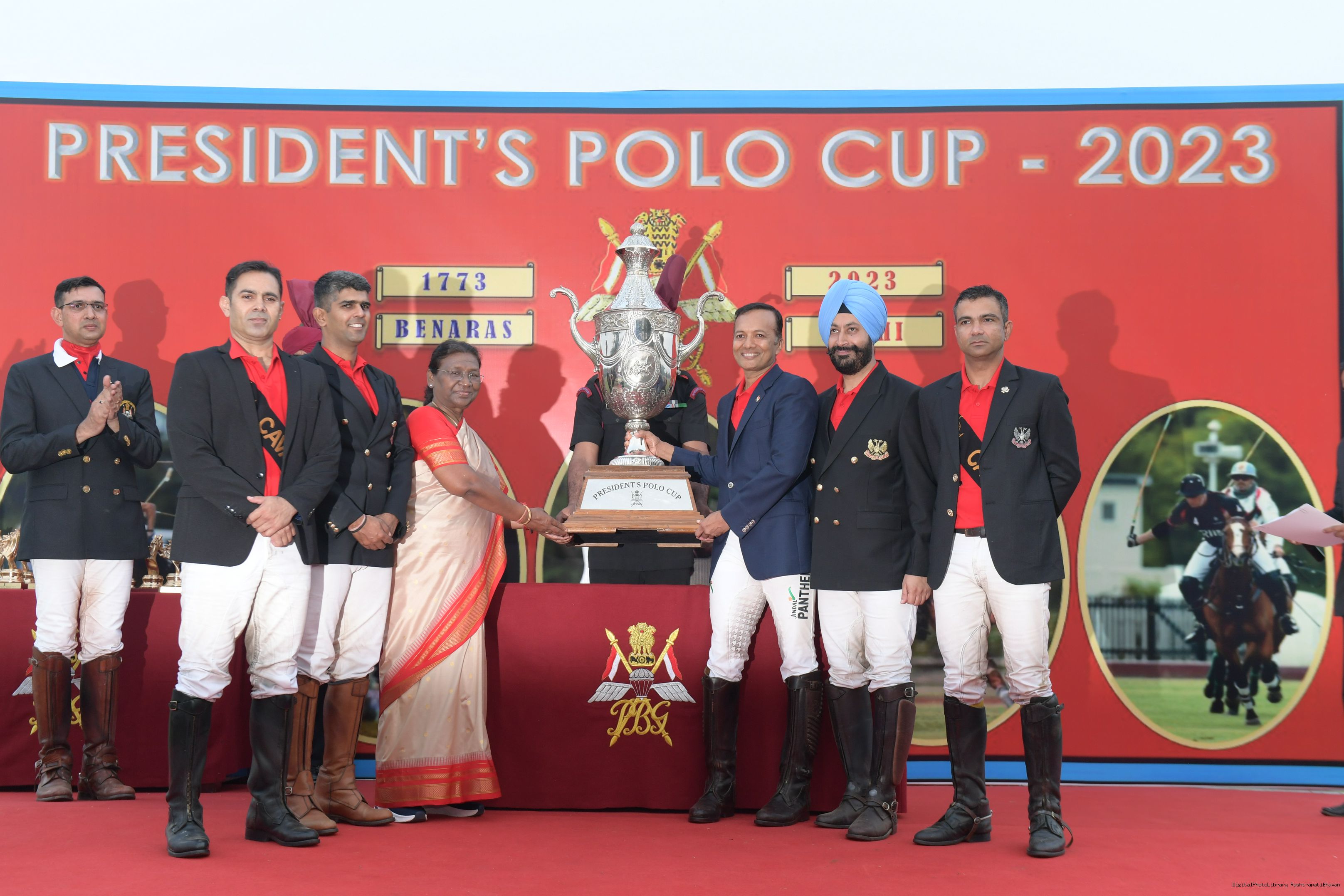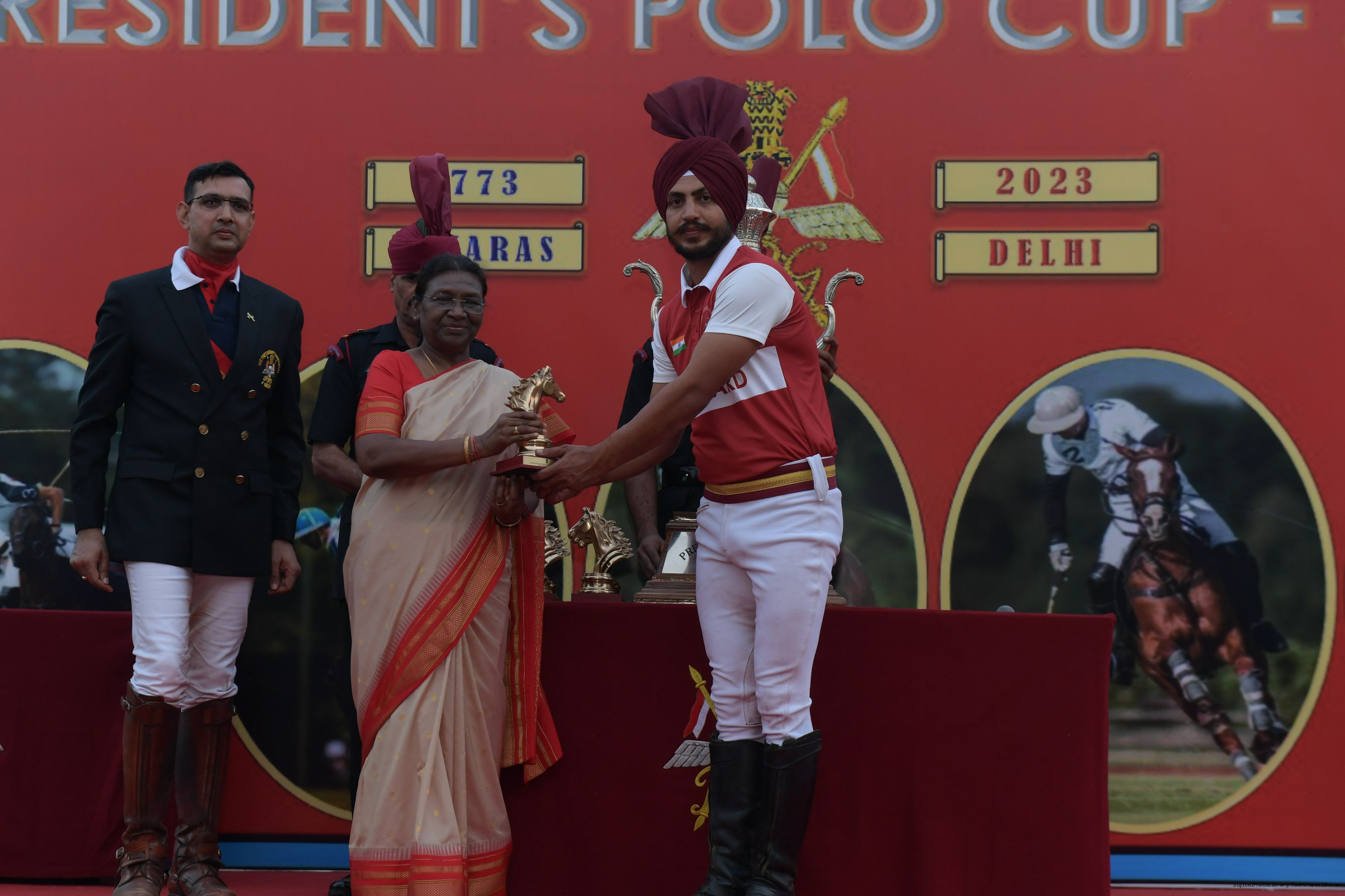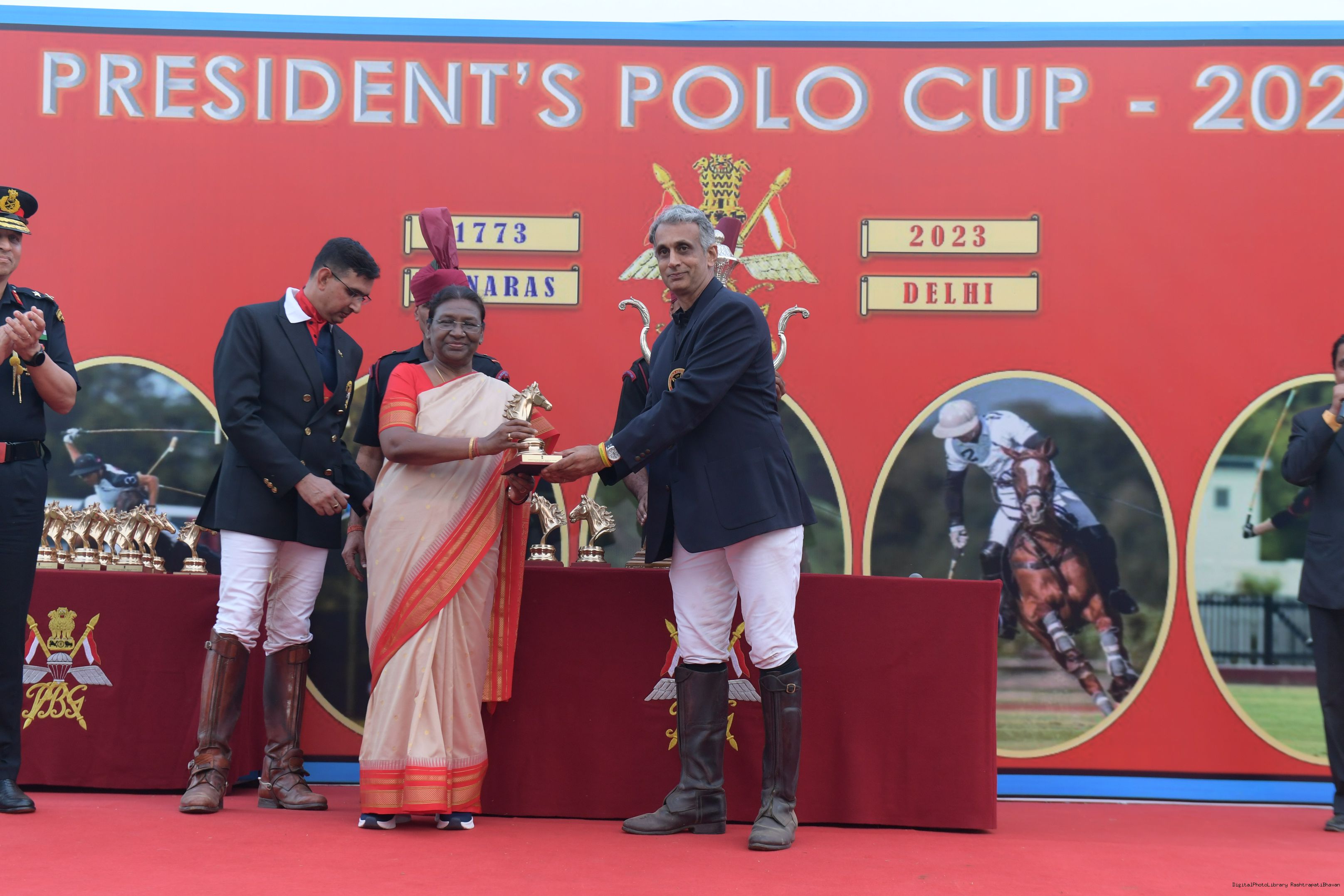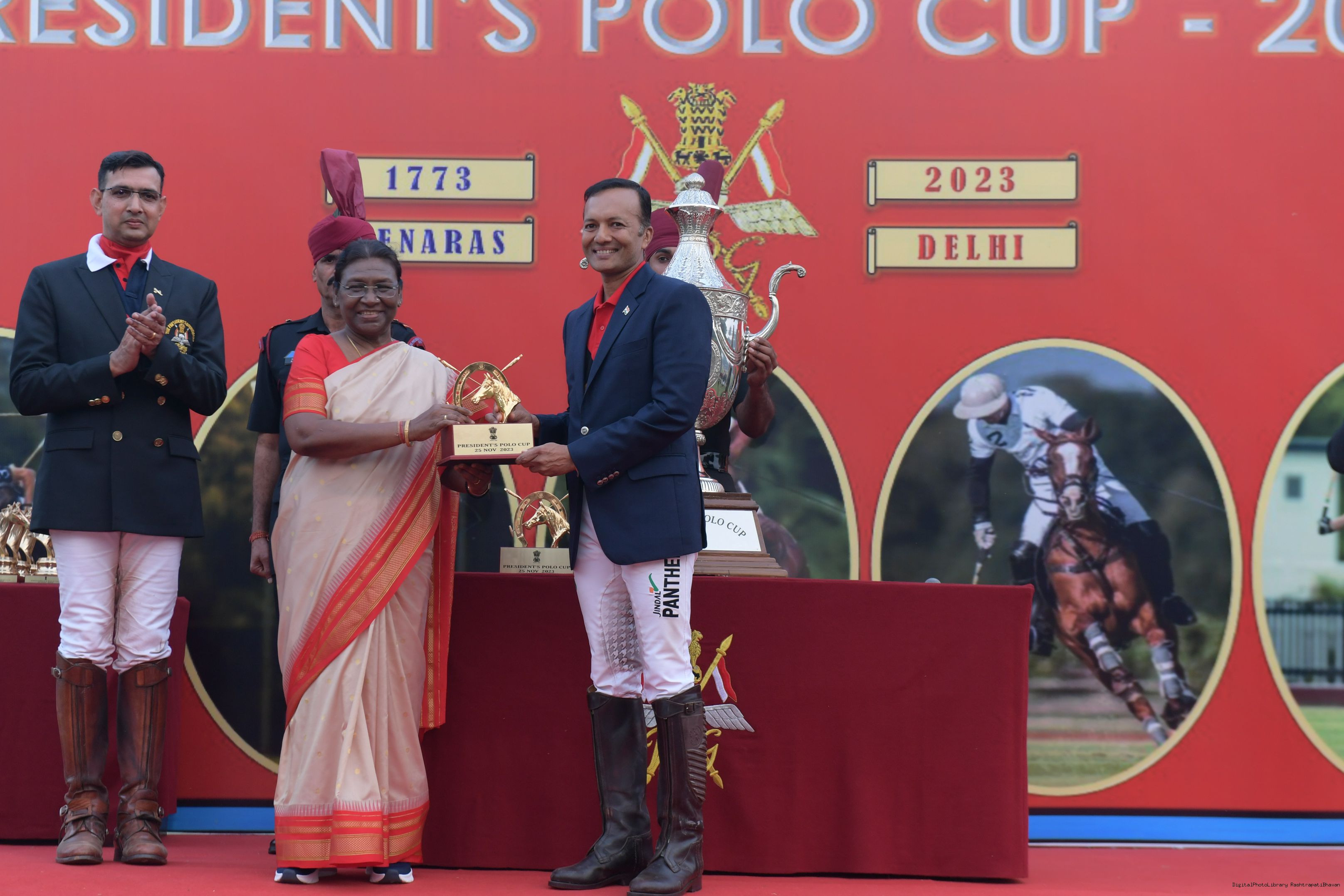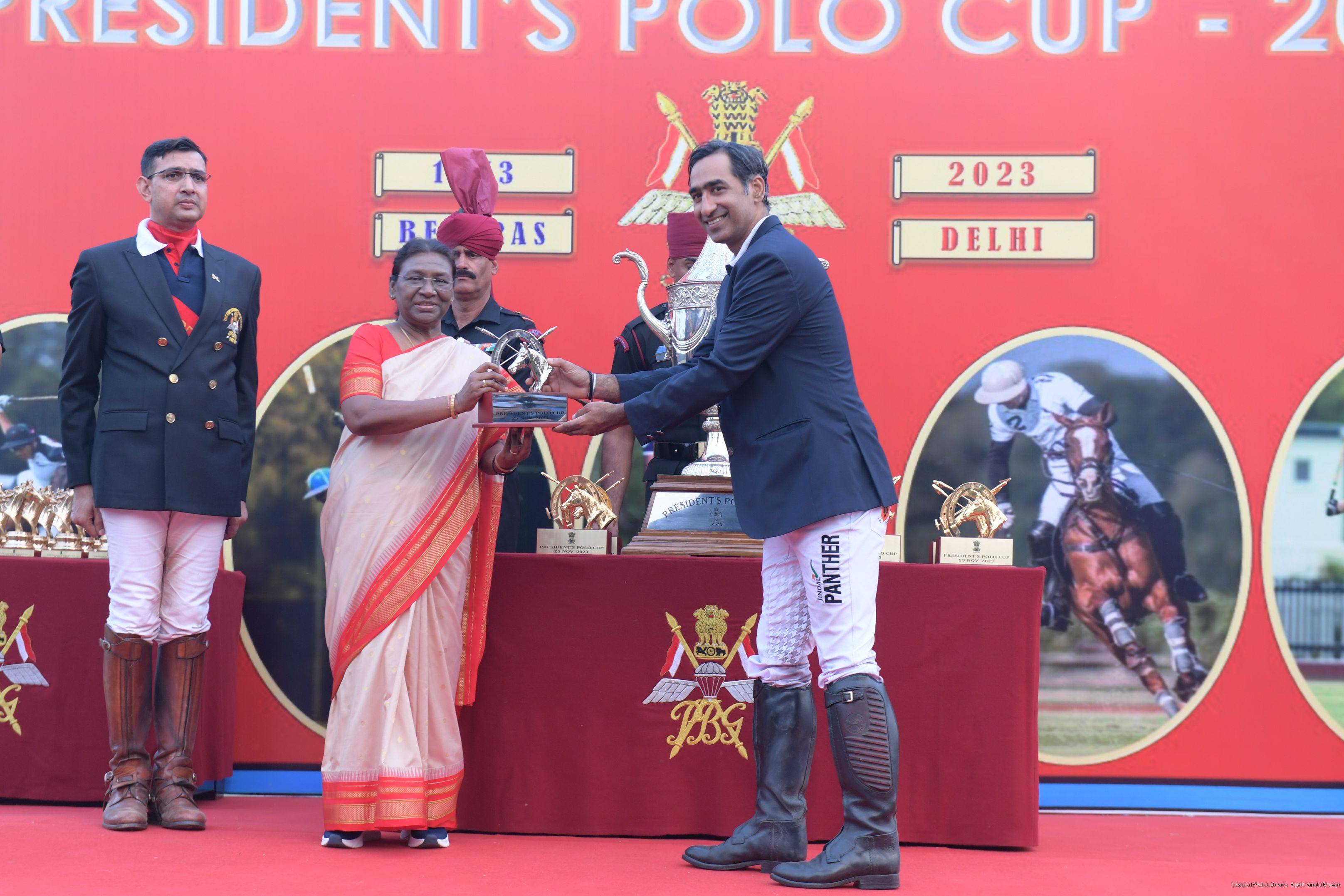 | Caption: | The President of India, Smt. Droupadi Murmu witnessed the President's Polo Cup Exhibition Match at PBG Parade Ground (Polo Field), in New Delhi on November 25, 2023. |