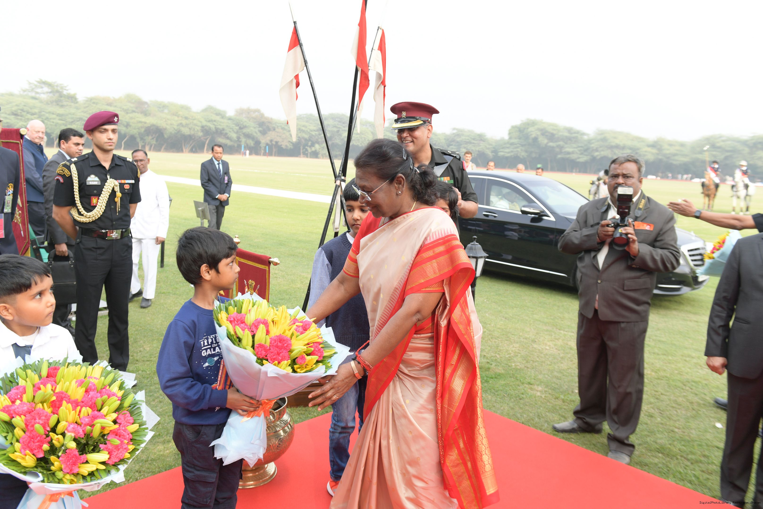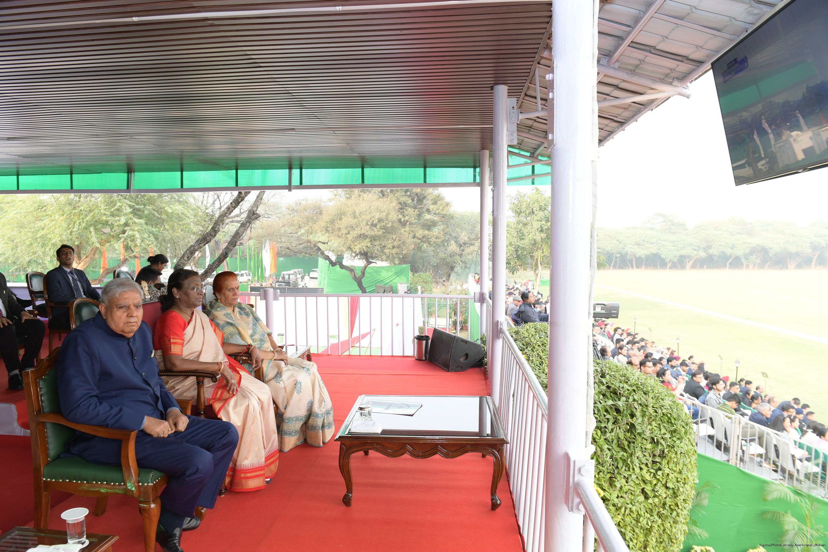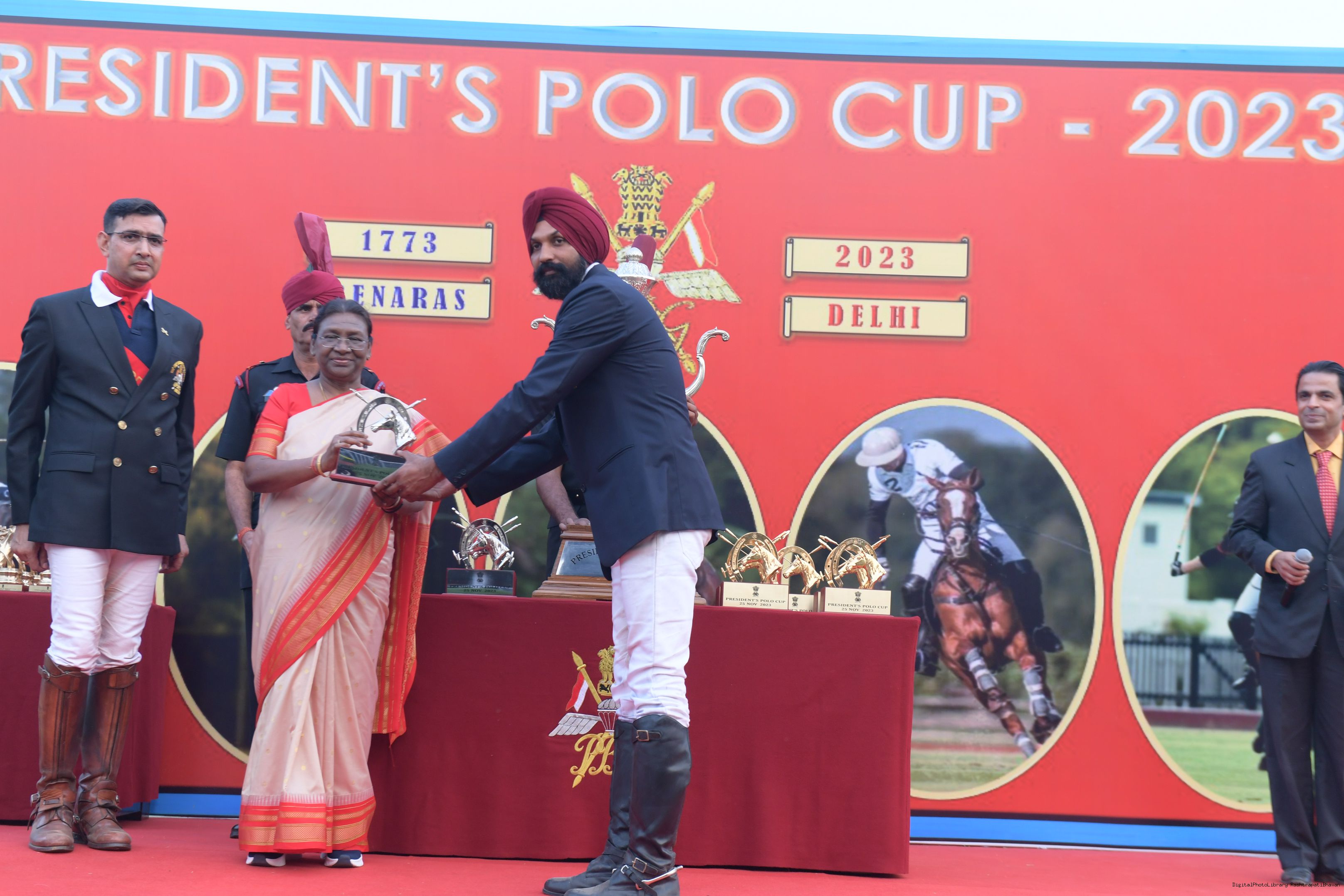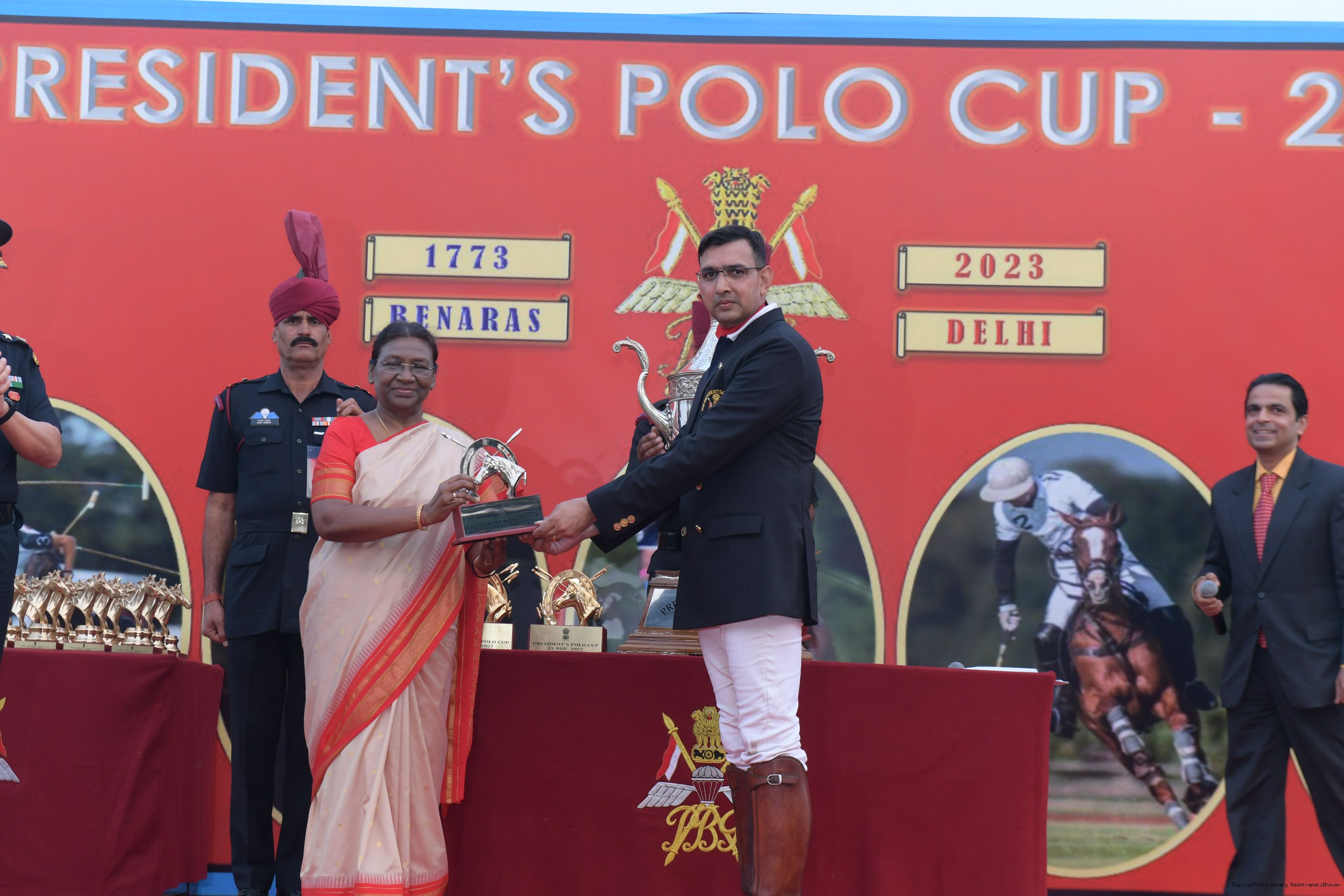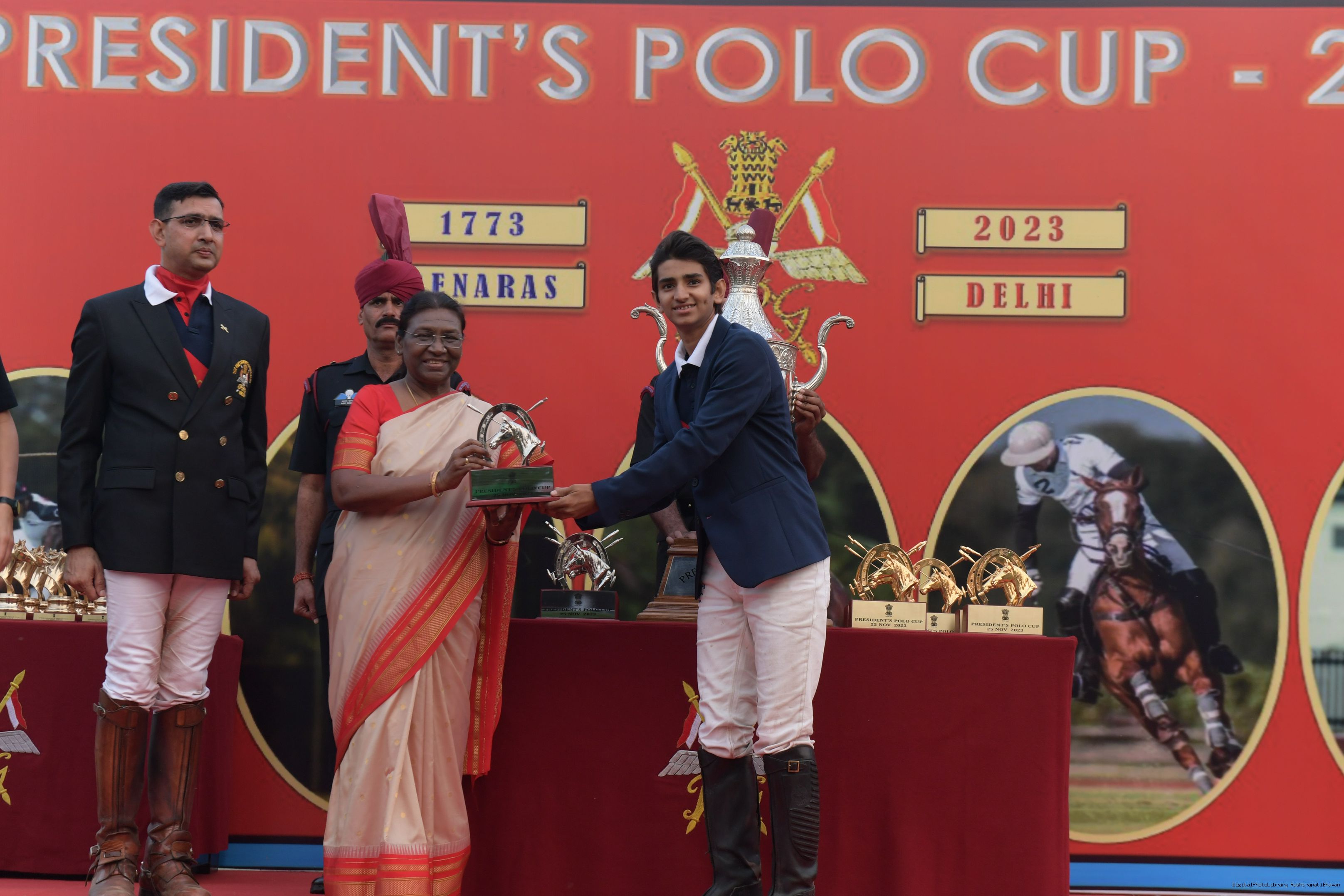 | Caption: | The President of India, Smt. Droupadi Murmu witnessed the President's Polo Cup Exhibition Match at PBG Parade Ground (Polo Field), in New Delhi on November 25, 2023. |