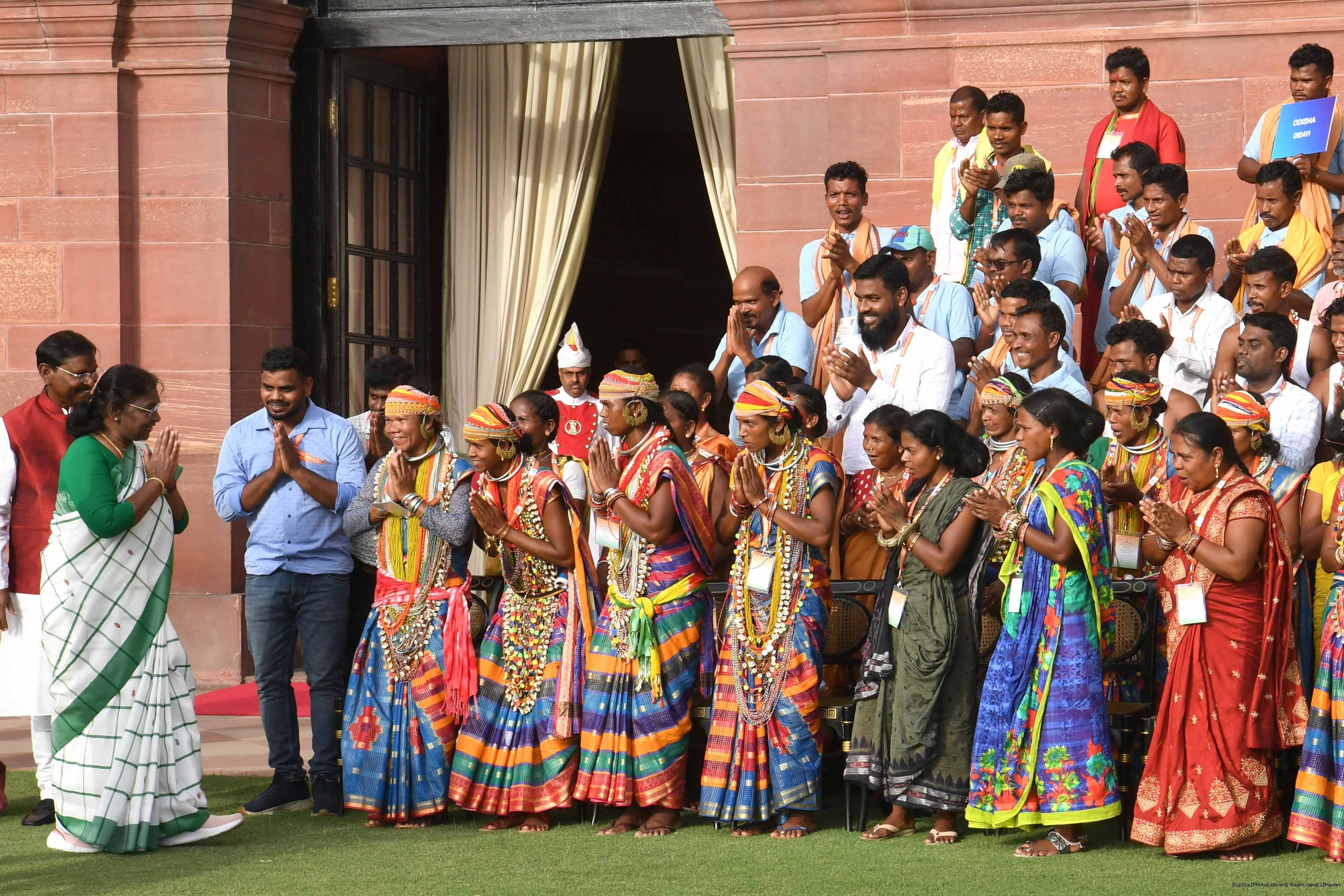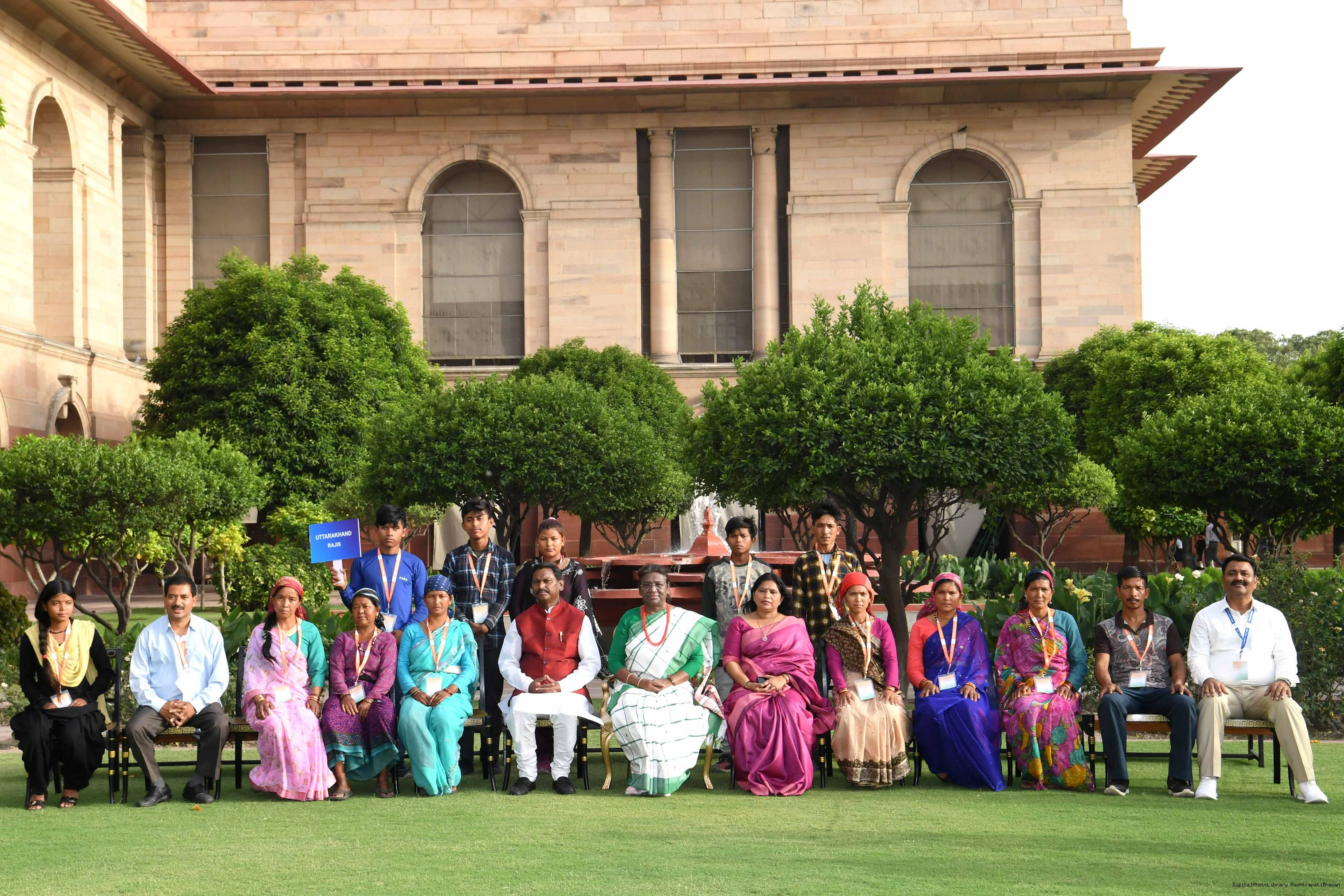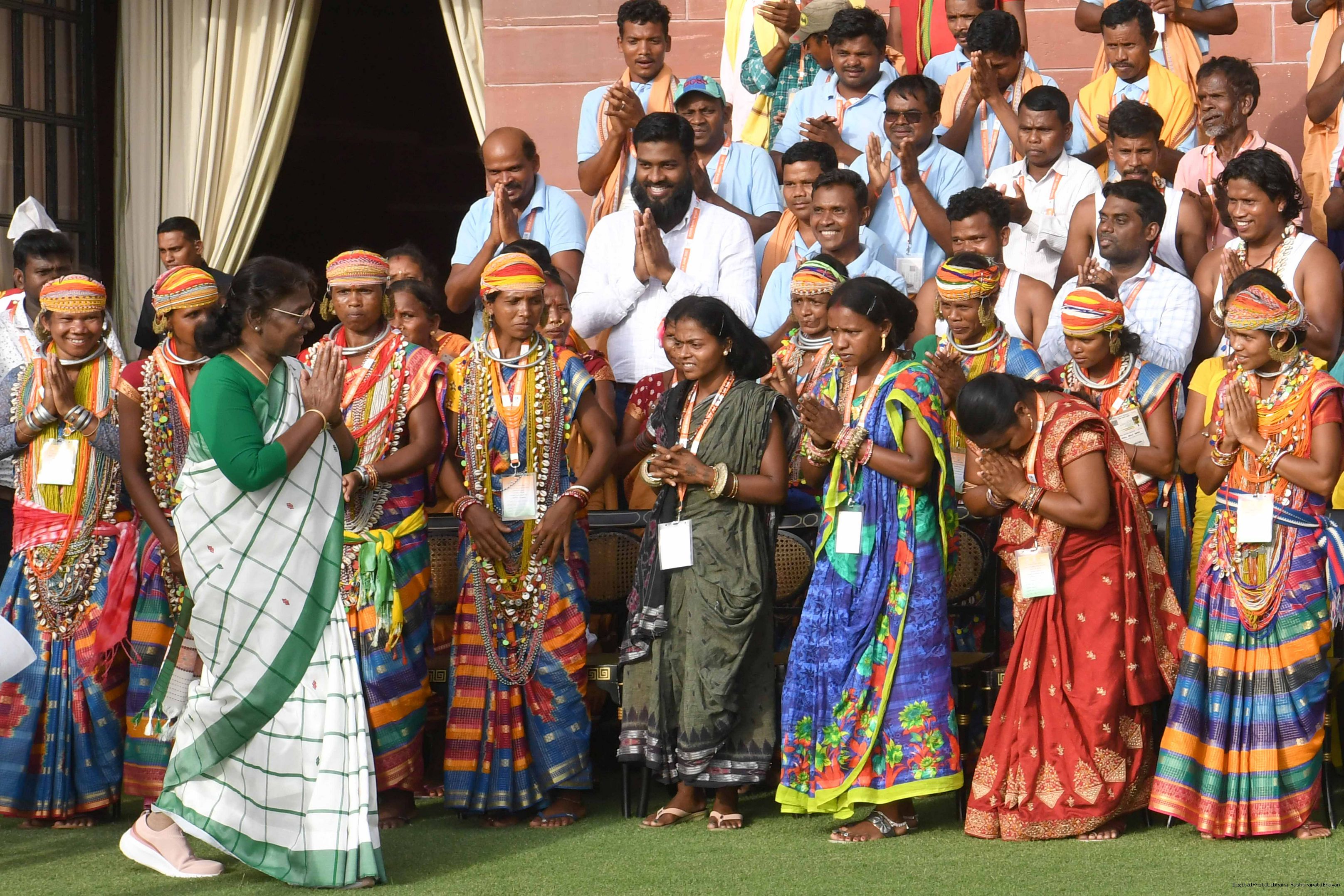 | Caption: | The President of India, Smt Droupadi Murmu interacted with the members of Particularly Vulnerable Tribal Groups (PVTGs) at Rashtrapati Bhavan on June 12, 2023. |