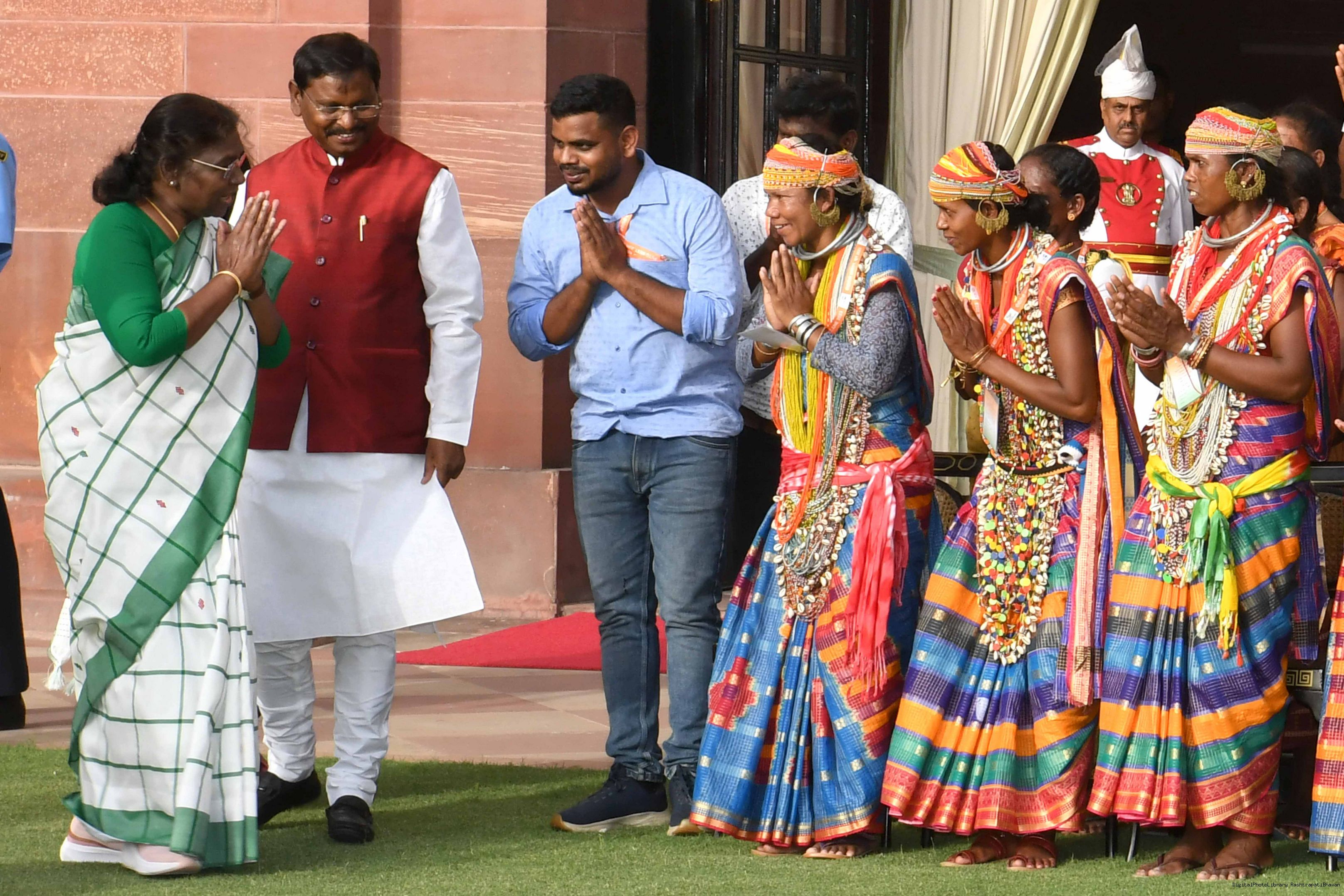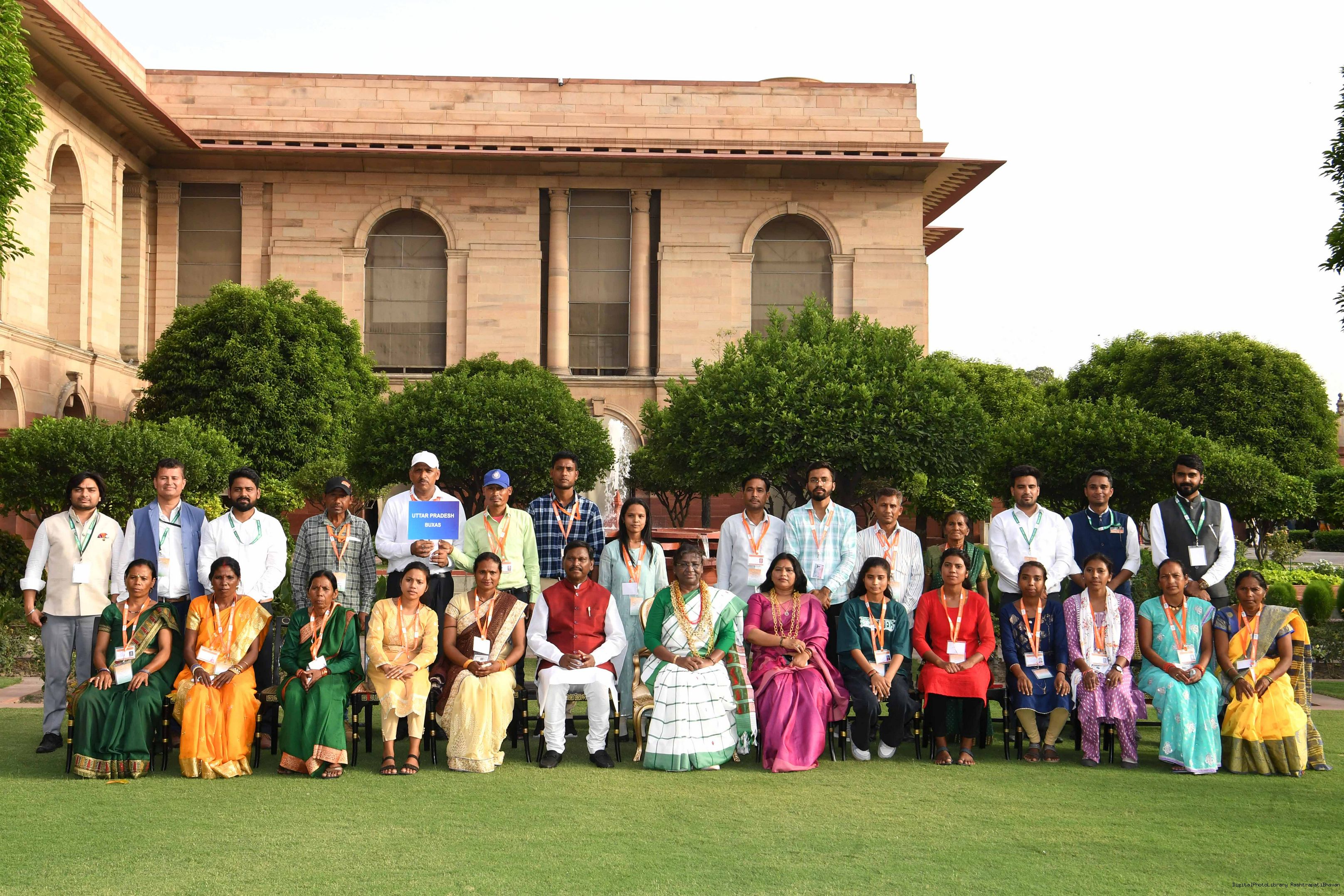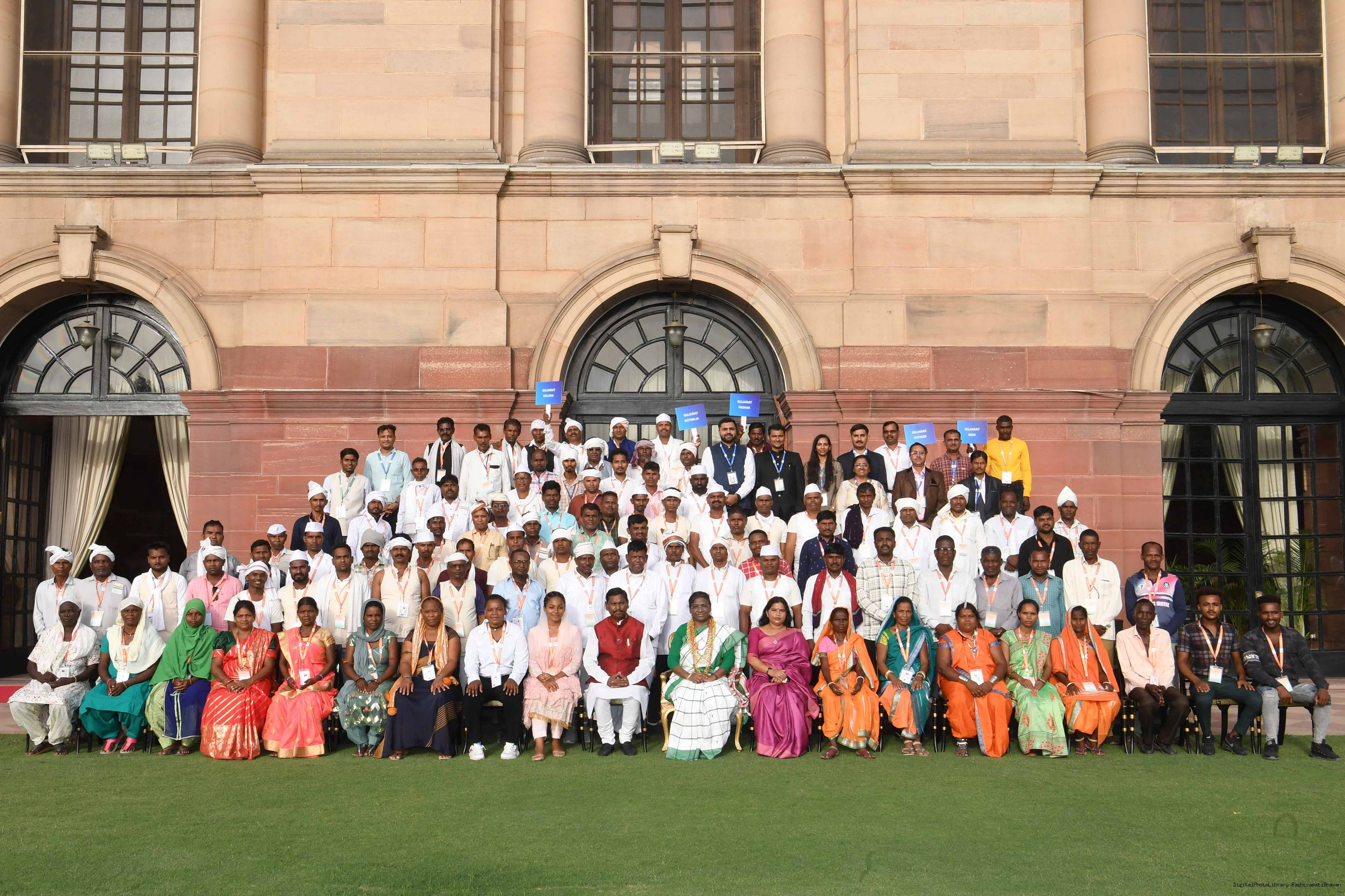 | Caption: | The President of India, Smt Droupadi Murmu interacted with the members of Particularly Vulnerable Tribal Groups (PVTGs) at Rashtrapati Bhavan on June 12, 2023. |