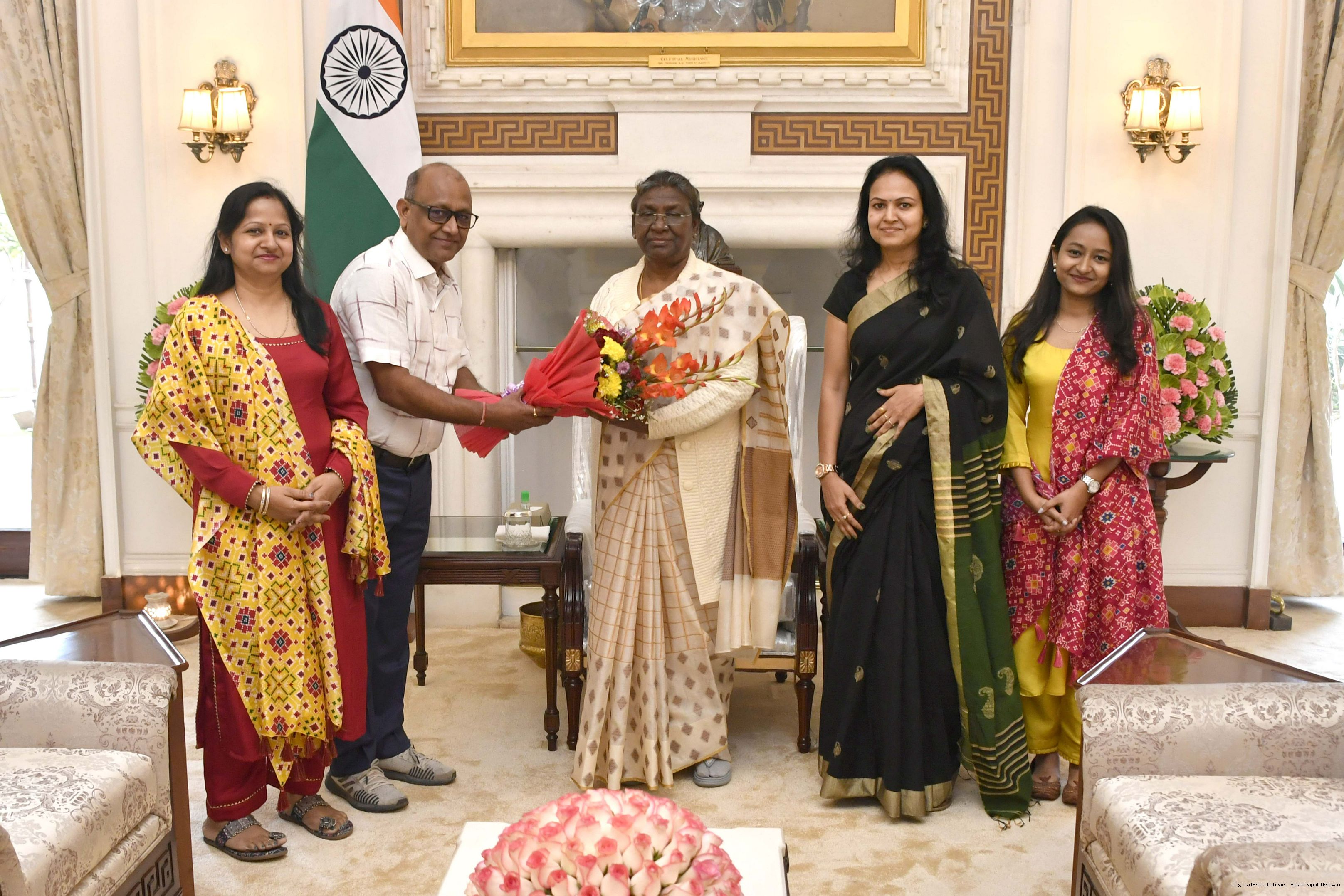 | Caption: | Shri Bibek Agrawal along with his wife Smt. Suman Agarwal, daughter Ms. Tamanna Agarwal and sister-in-law Smt. Sabita Agrawal from Rairangpur meeting with the President of India, Smt. Droupadi Murmu, at Rashtrapati Bhavan on Dec 06, 2022. |
