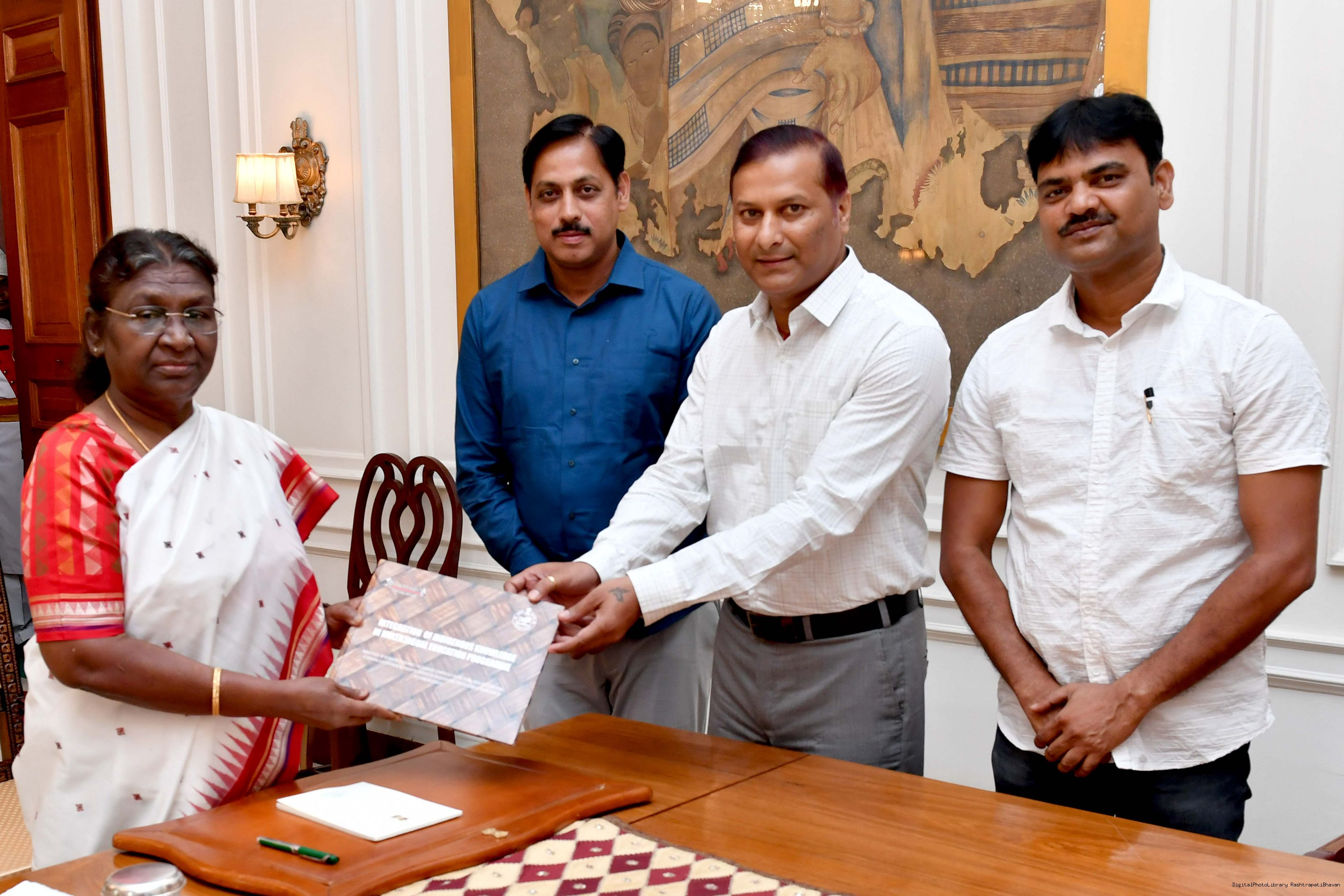 | Caption: | Shri Suratha Kumar Pattanaik from Ichinda, Rairangpur along with Others meeting with the President of India, Smt. Droupadi Murmu at Rashtrapati Bhavan on June 13, 2023. |
