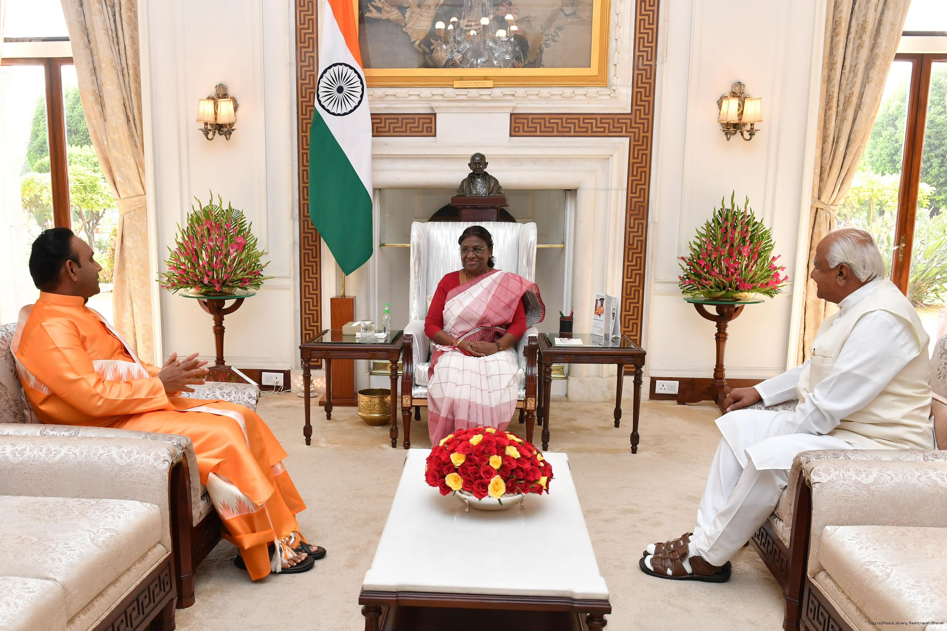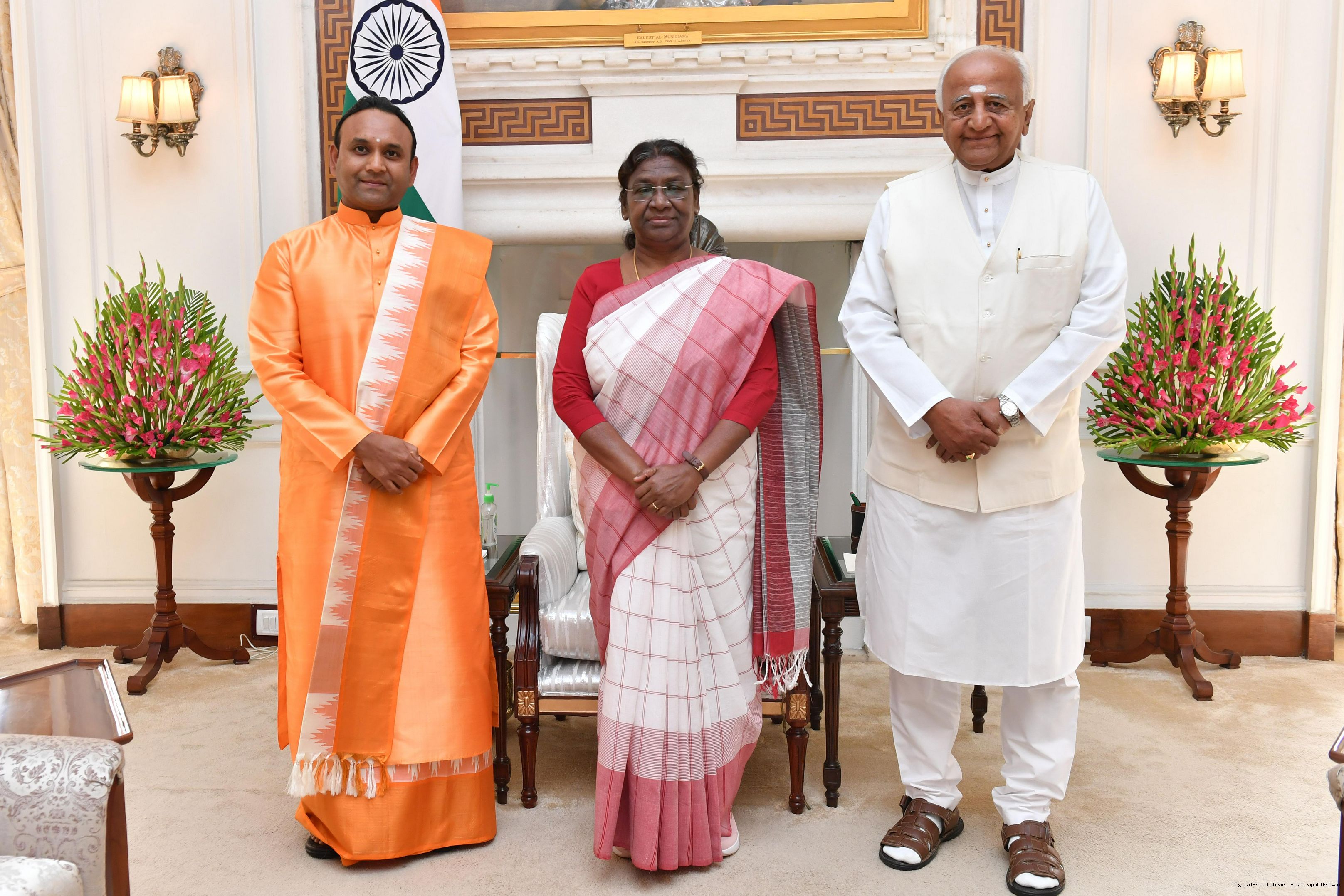 | Caption: | Sadguru Sri Madhusudan Sai, Founder, Sri Sathya Sai University for Human Excellence, Sathya Sai Grama, Muddenahalli along with Other meeting with the President of India, Smt. Droupadi Murmu at Rashtrapati Bhavan on June 13, 2023. |