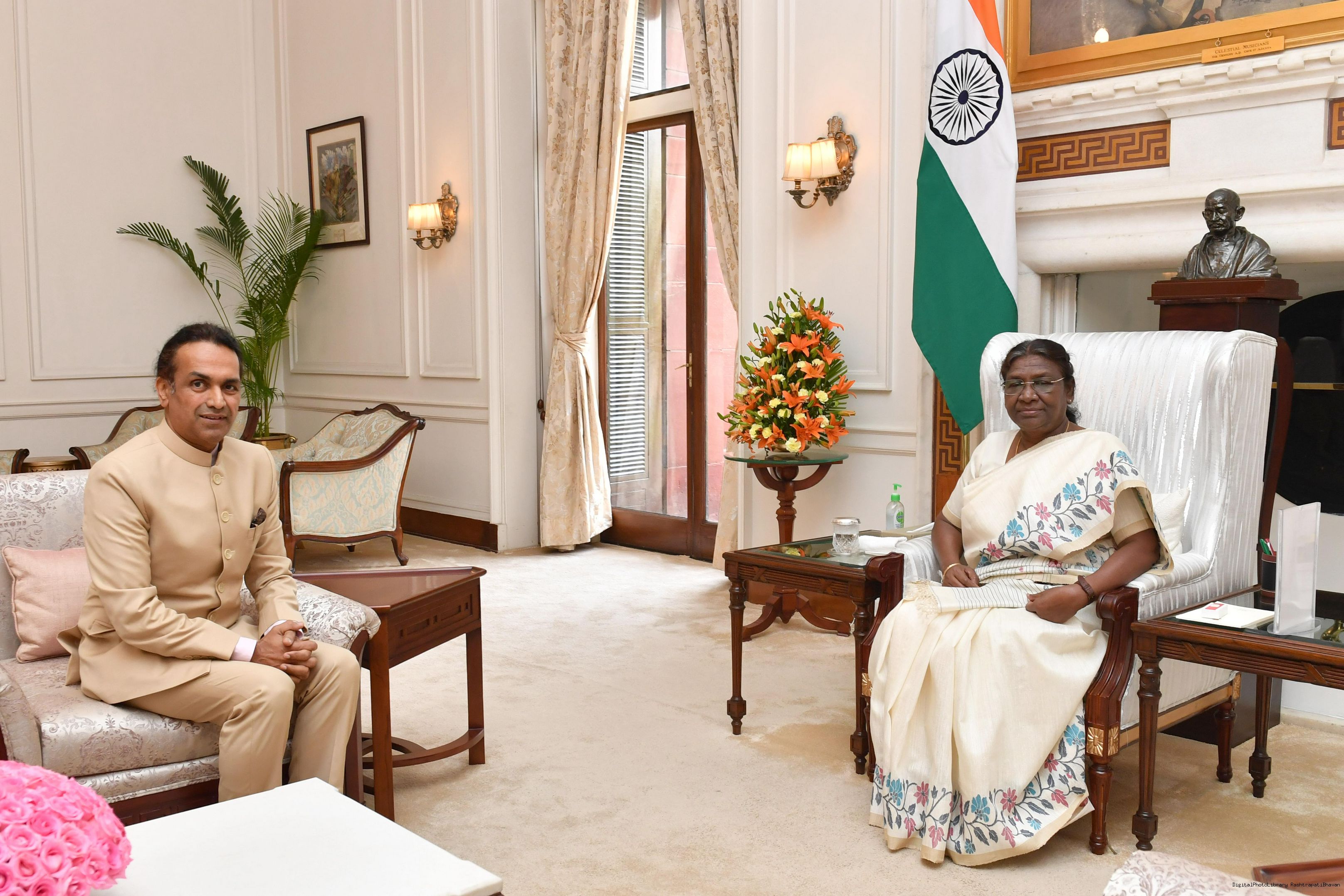 | Caption: | The Ambassador-designate of India to Cabo Verde, Shri Sanjeev Jain meeting with the President of India, Smt. Droupadi Murmu at Rashtrapati Bhavan in New Delhi on June 15, 2023. |