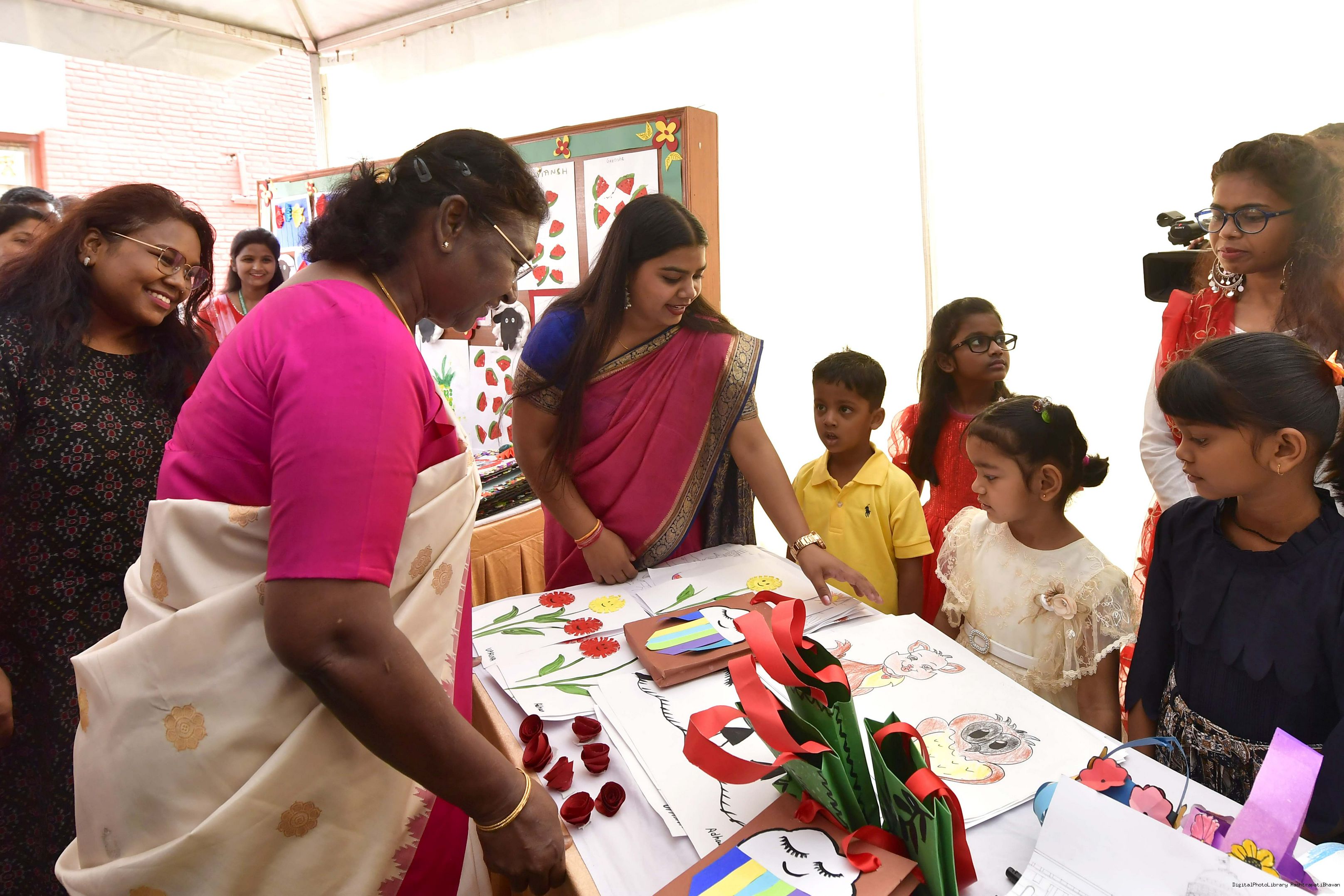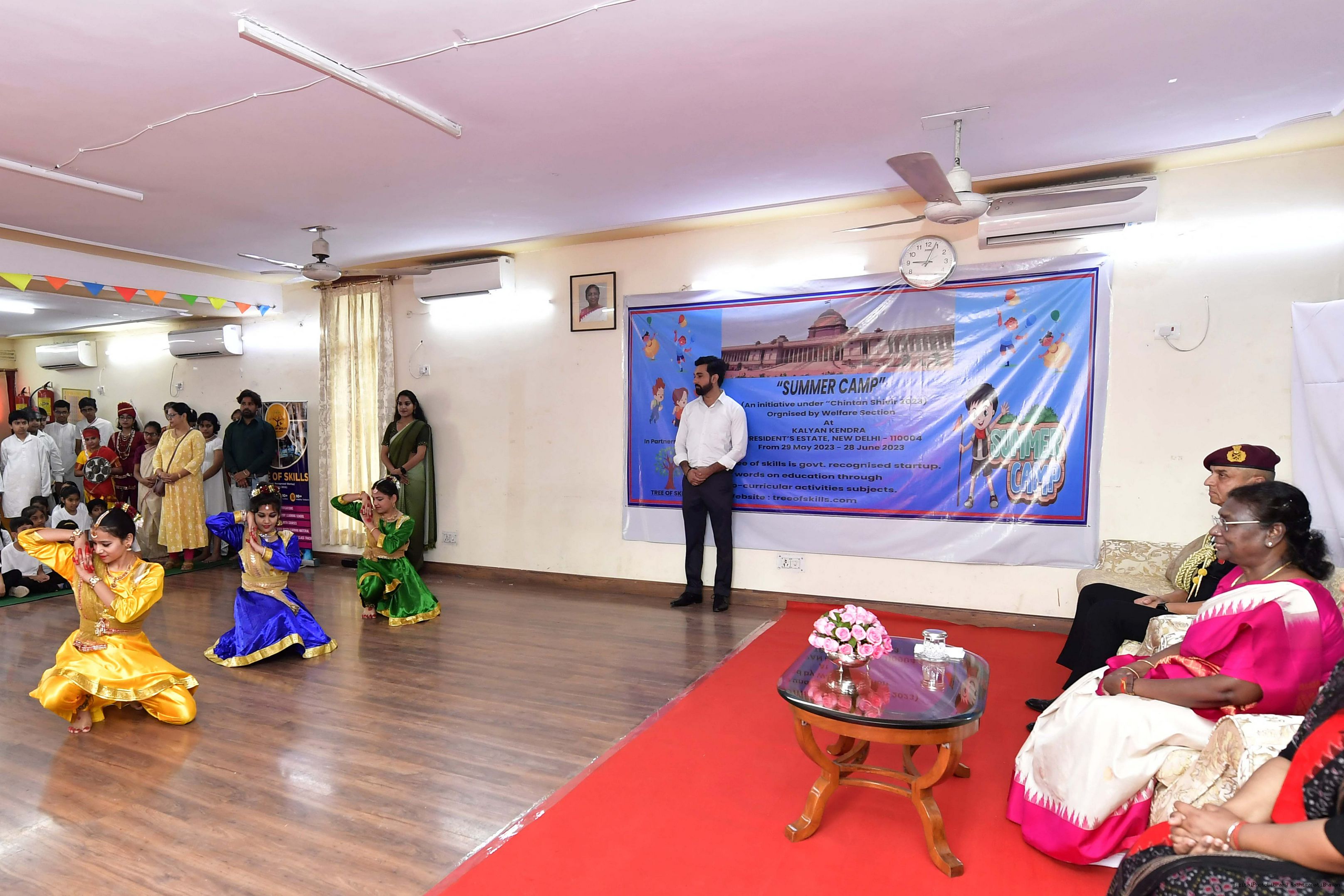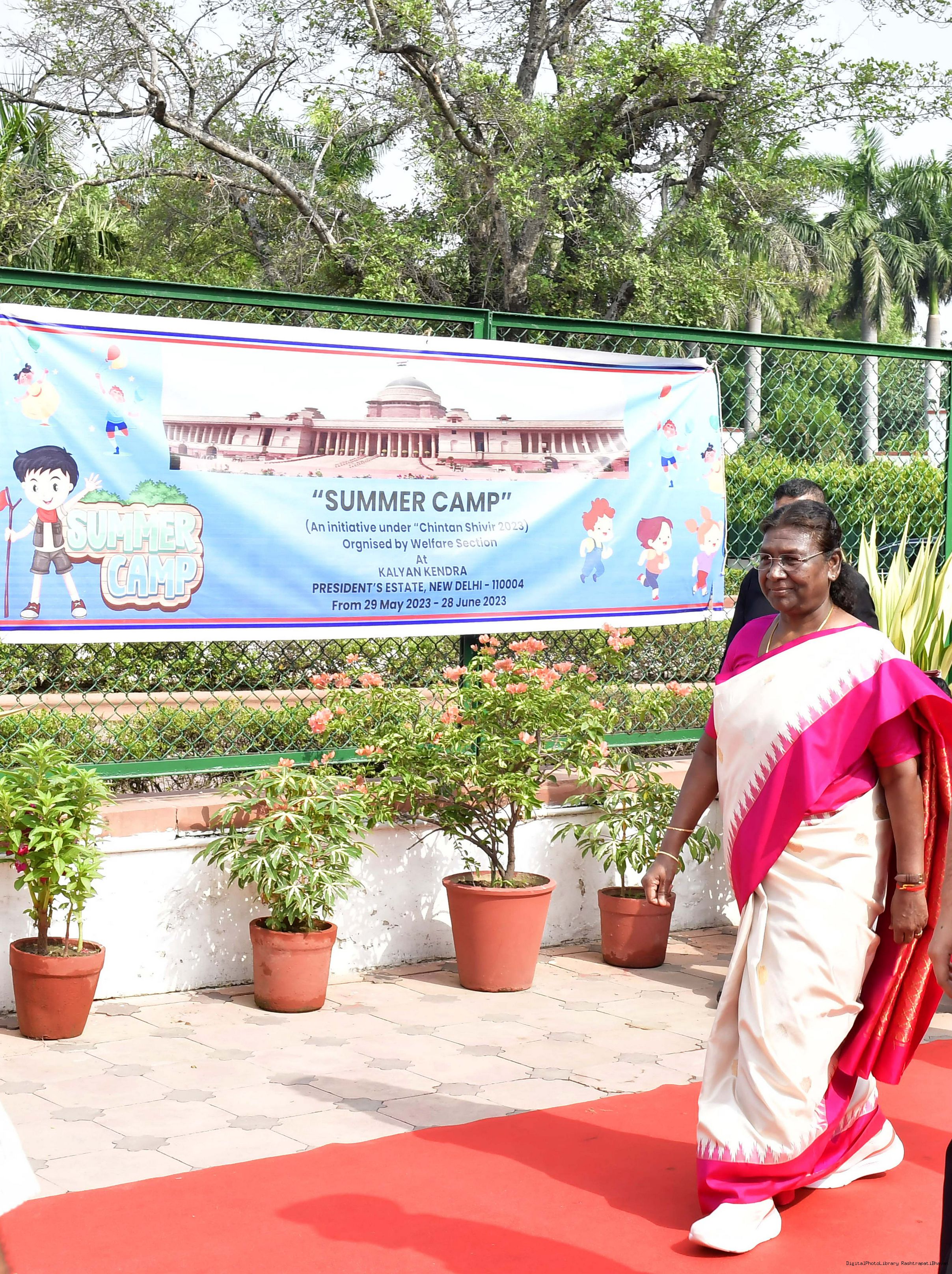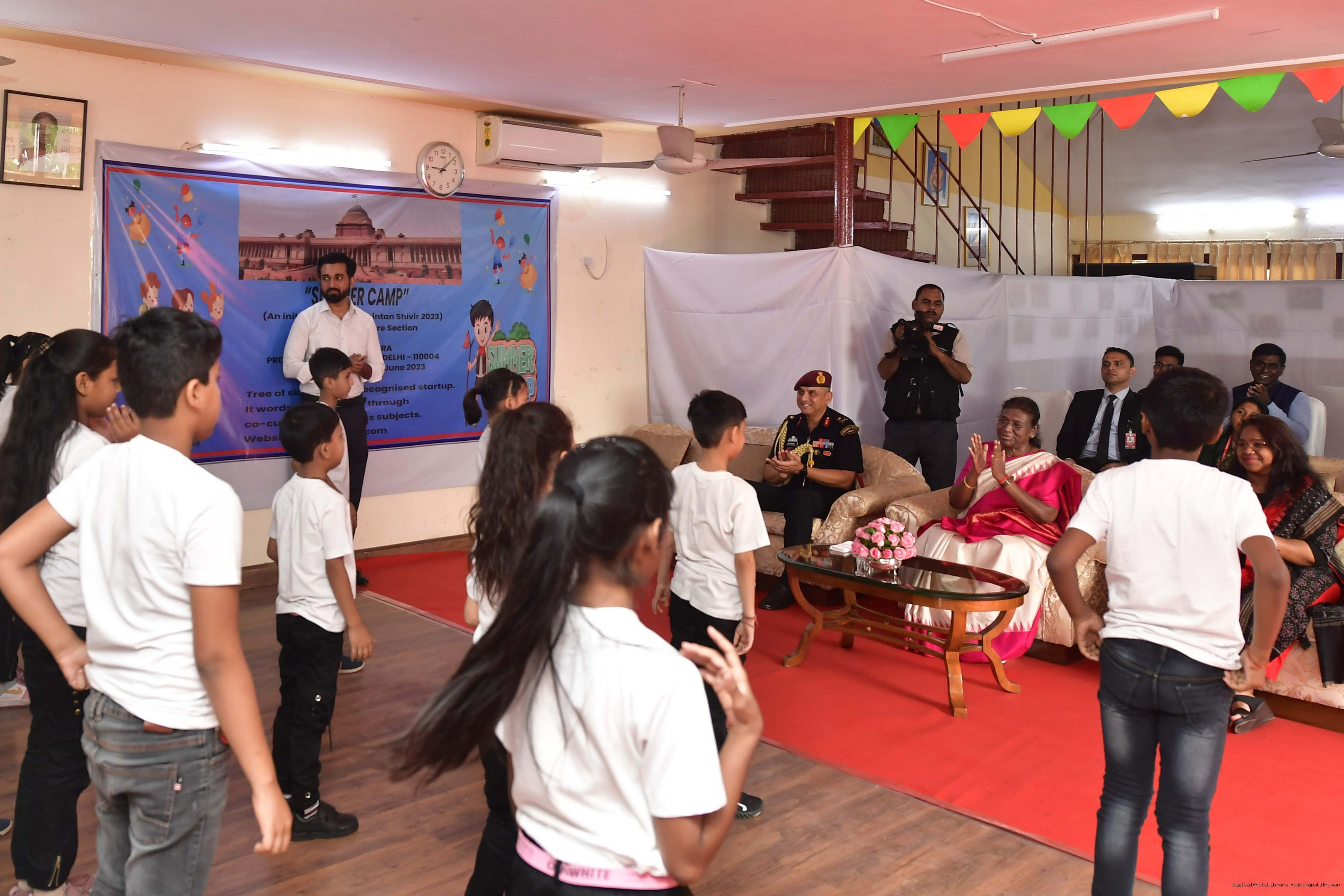 | Caption: | The President of India Smt. Droupadi Murmu visited to Summer Camp at Kalyan Kendra at Rashtrapati Bhavan on June 20, 2023. |