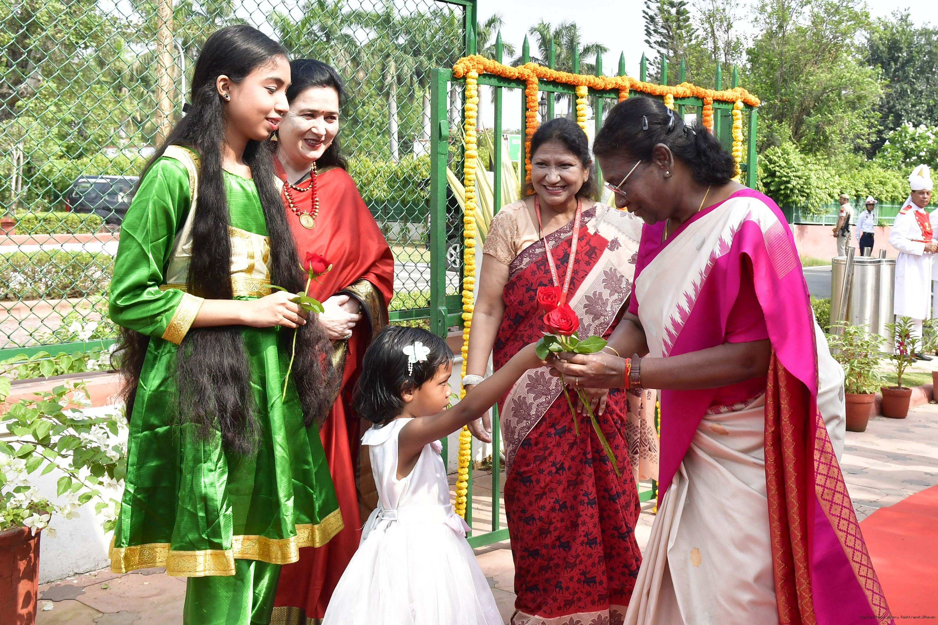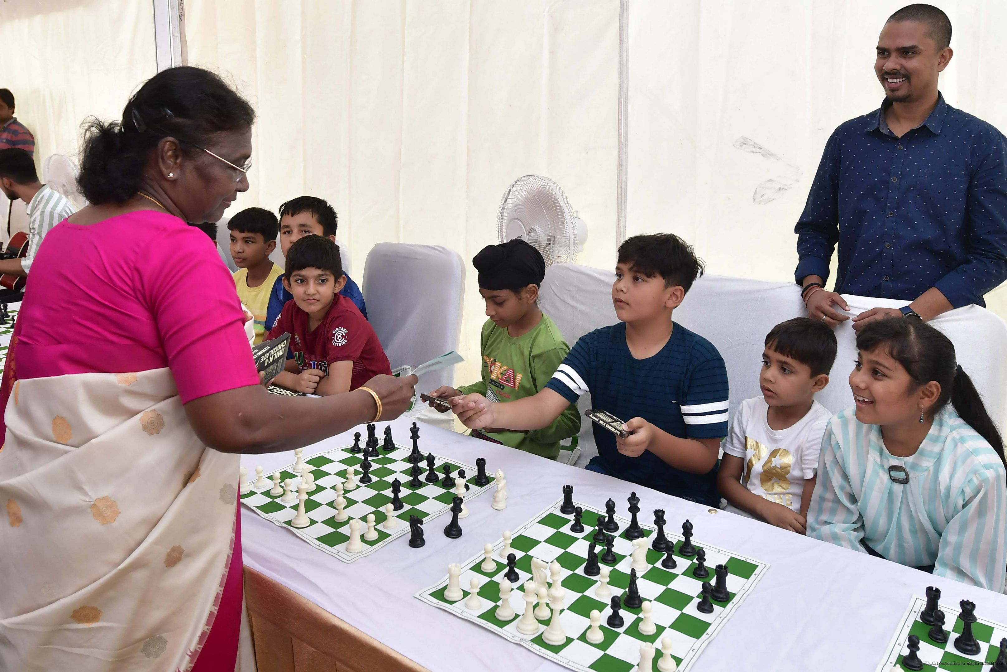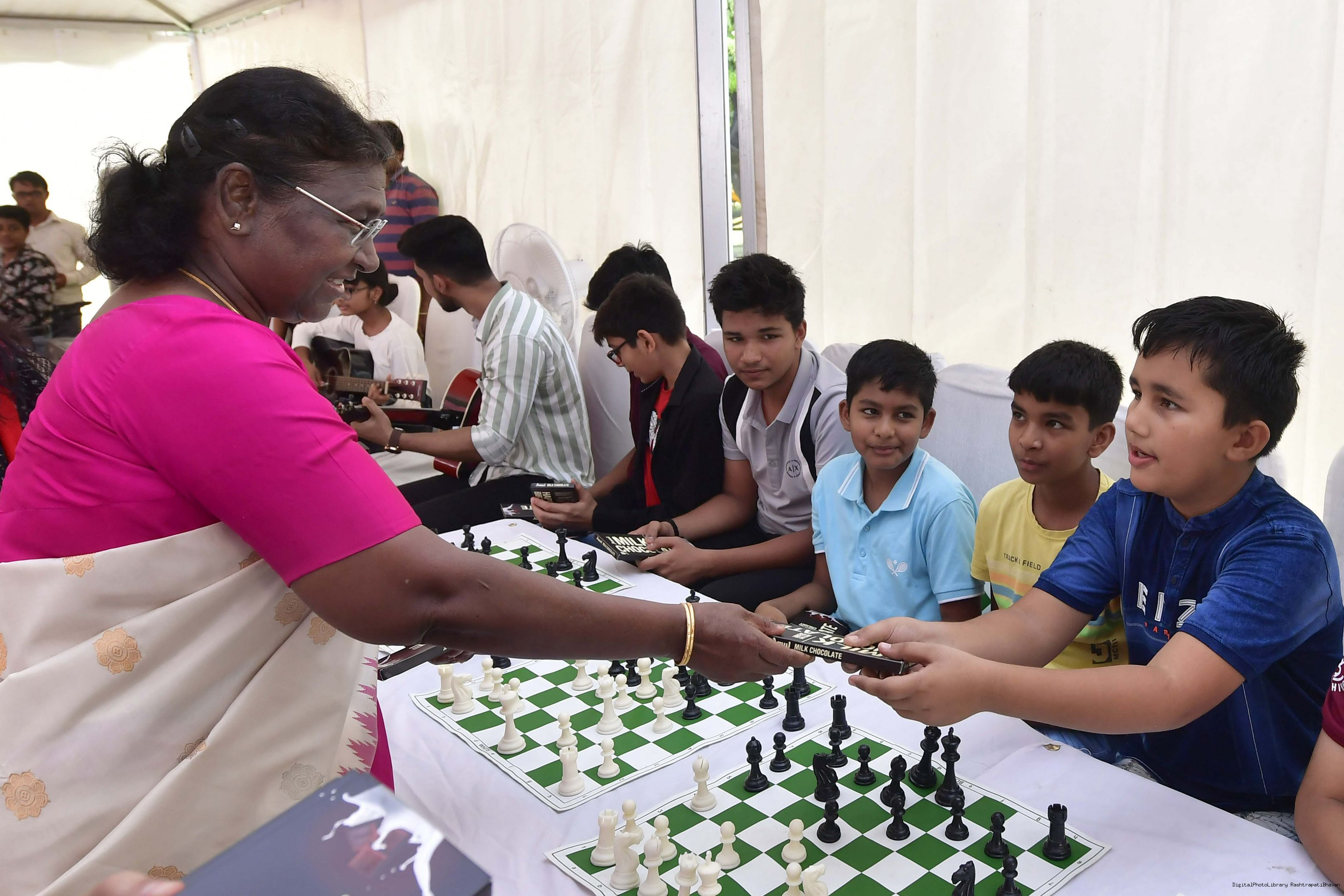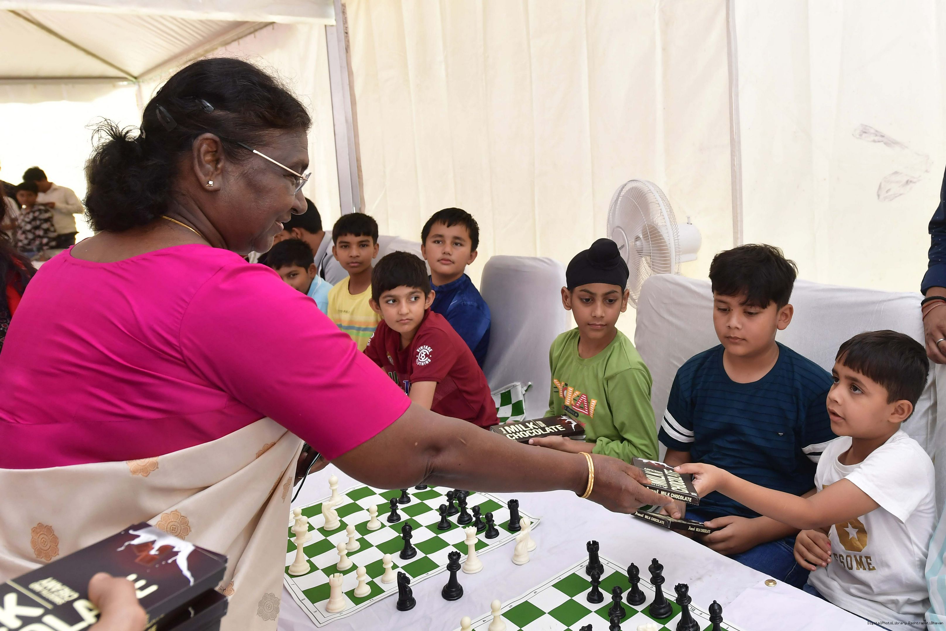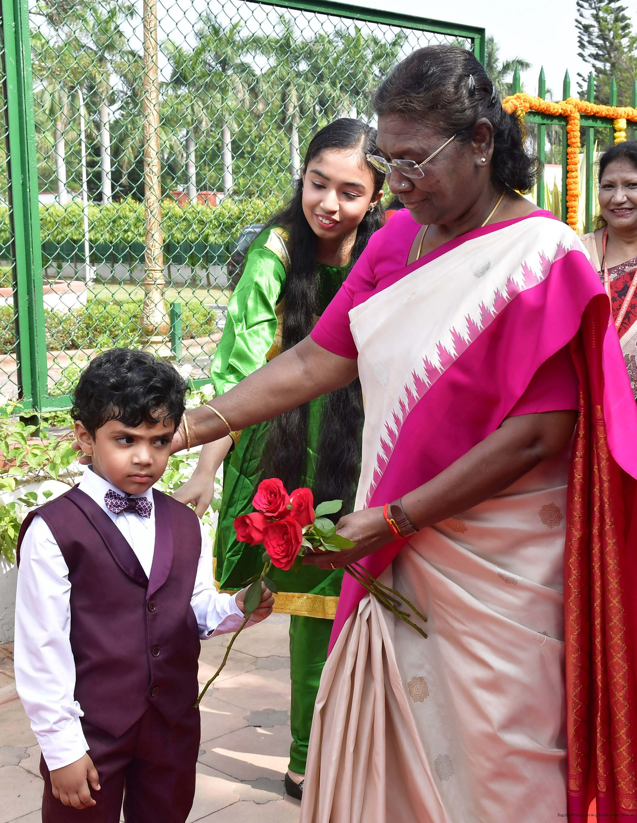 | Caption: | The President of India Smt. Droupadi Murmu visited to Summer Camp at Kalyan Kendra at Rashtrapati Bhavan on June 20, 2023. |