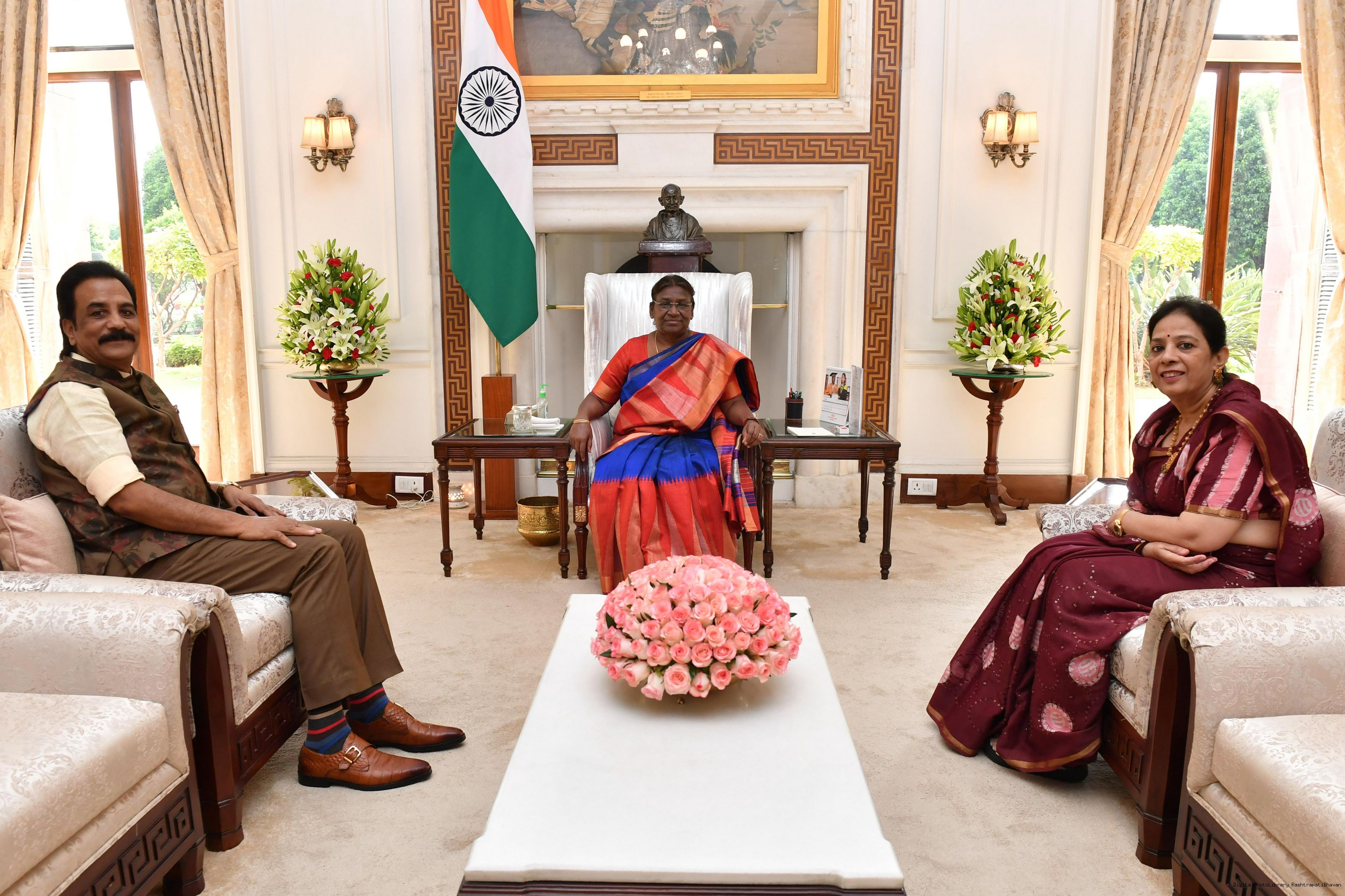 | Caption: | Shri Kishor Jain along with his wife Smt. Asha Jain meeting with the President of India, Smt. Droupadi Murmu at Rashtrapati Bhavan on June 20, 2023. |