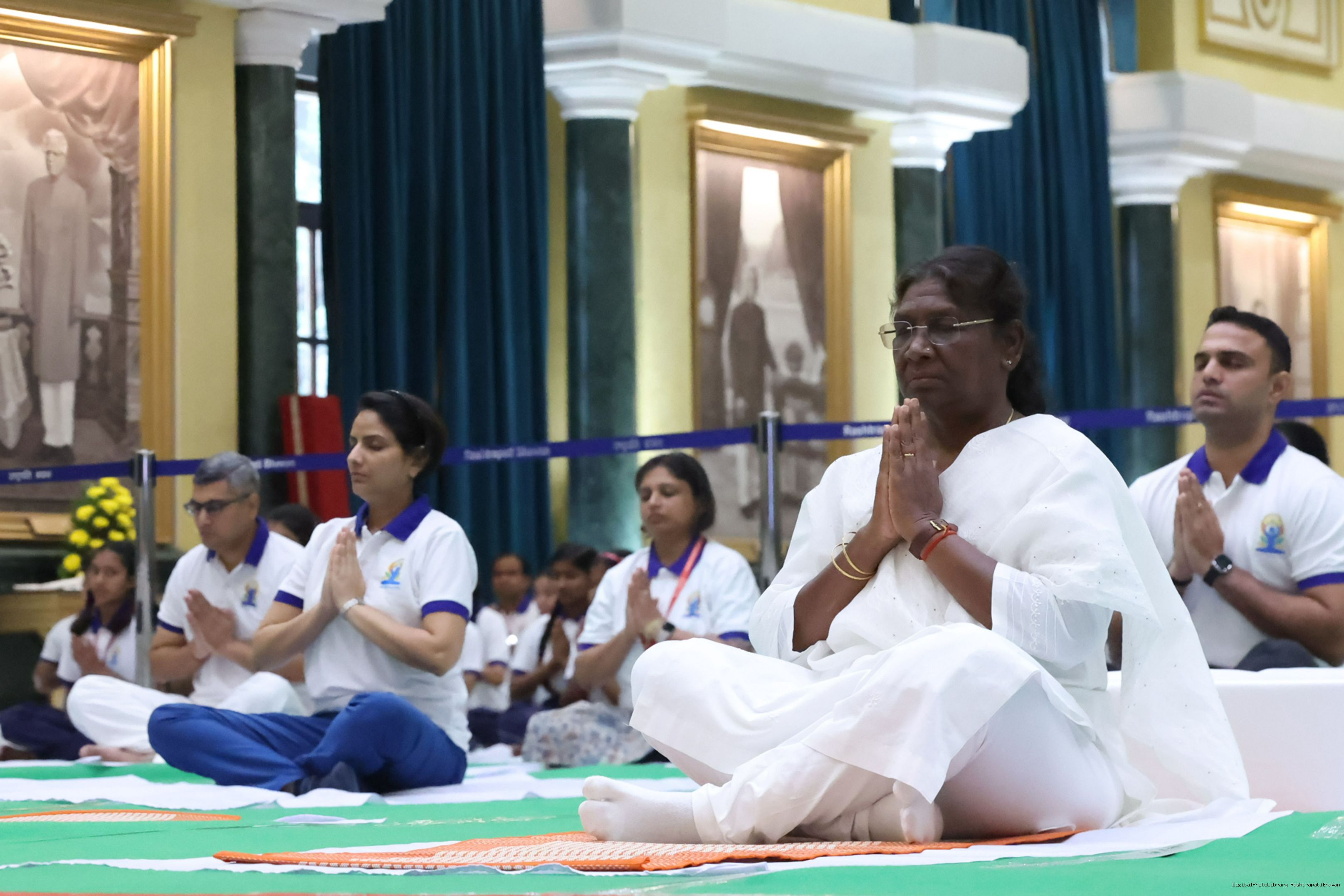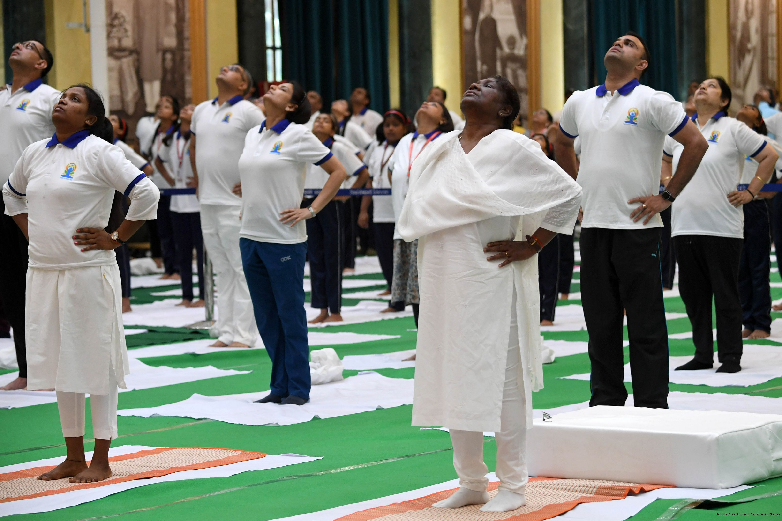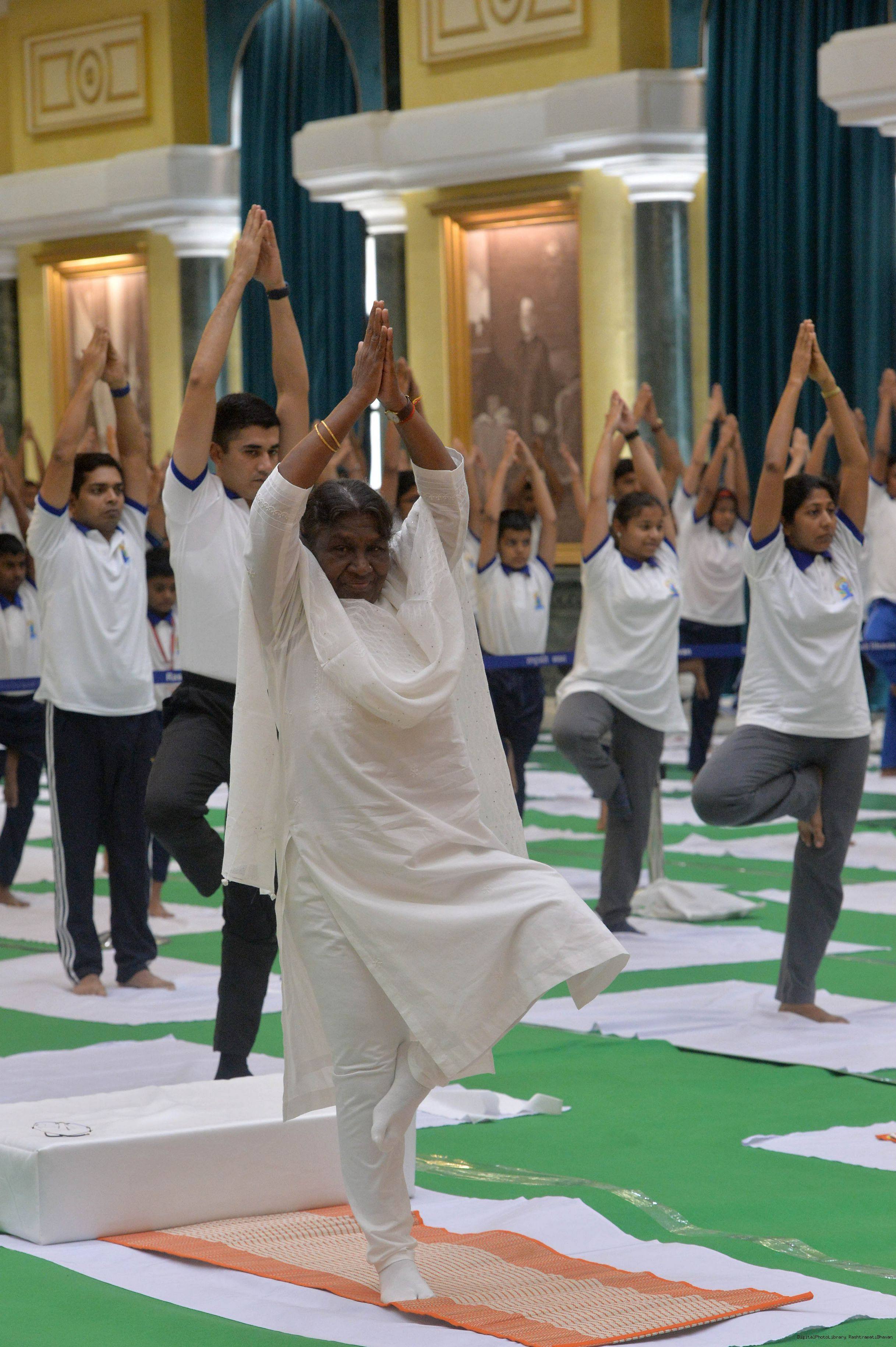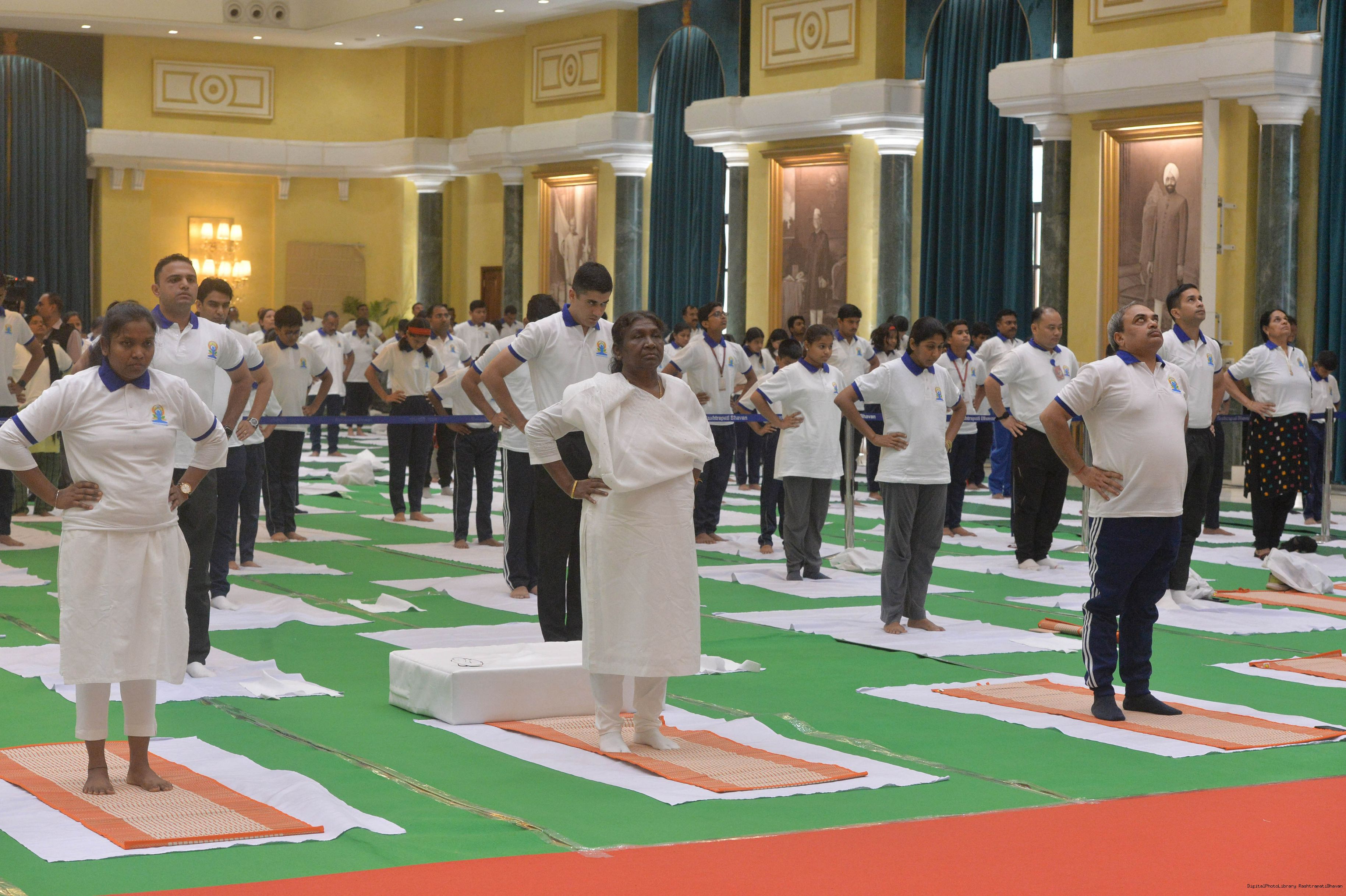 | Caption: | The President of India, Smt. Droupadi Murmu Inauguration of commemoration of the 9th International Day of Yoga at Rashtrapati Bhavan on June 21, 2023. |