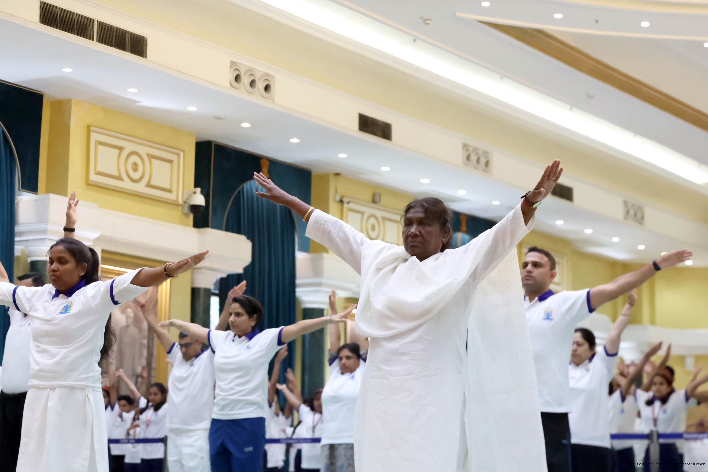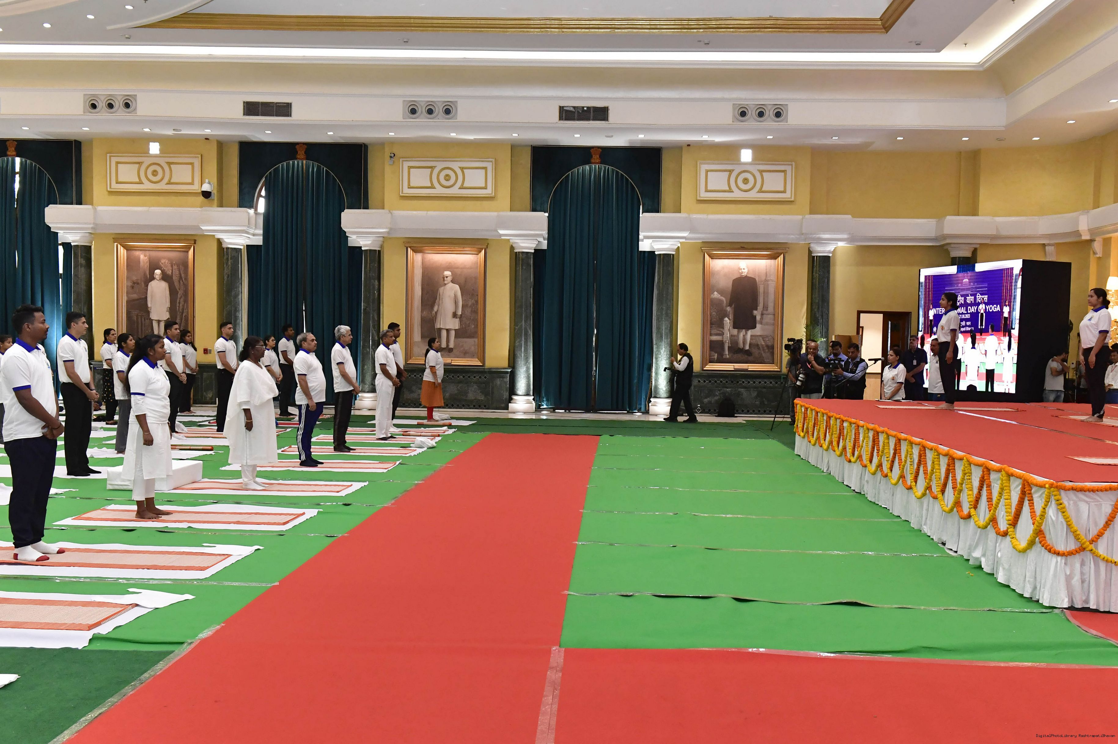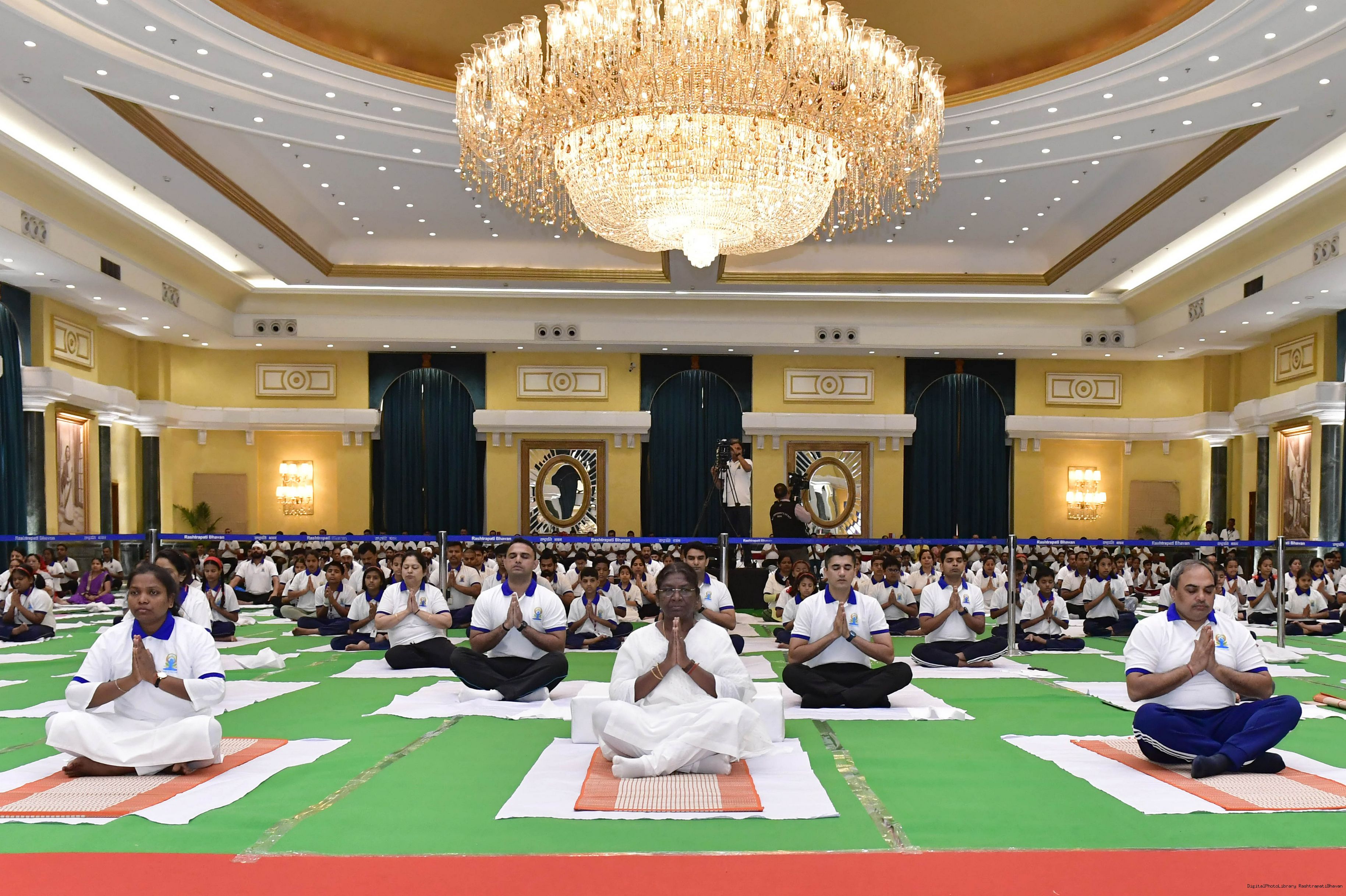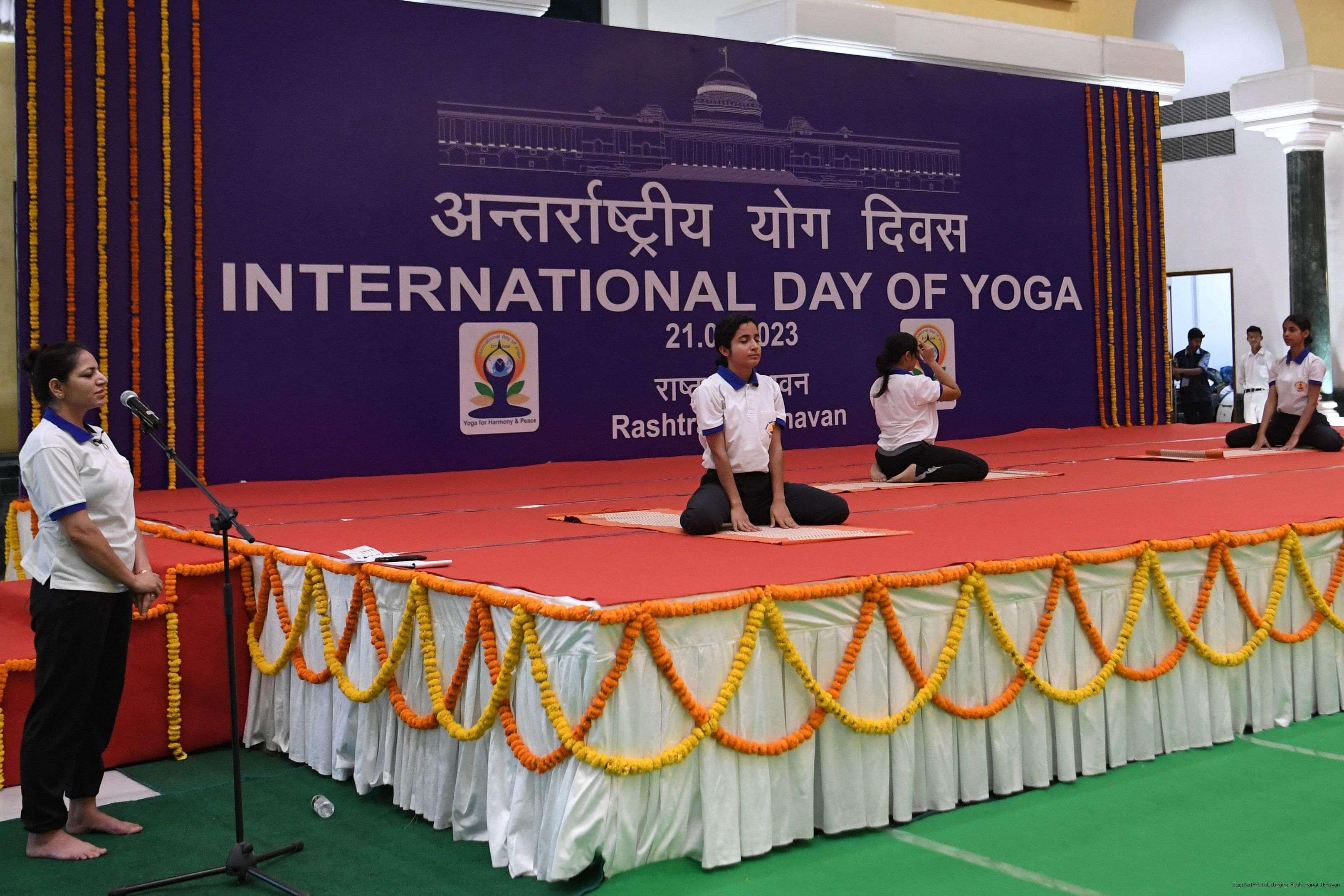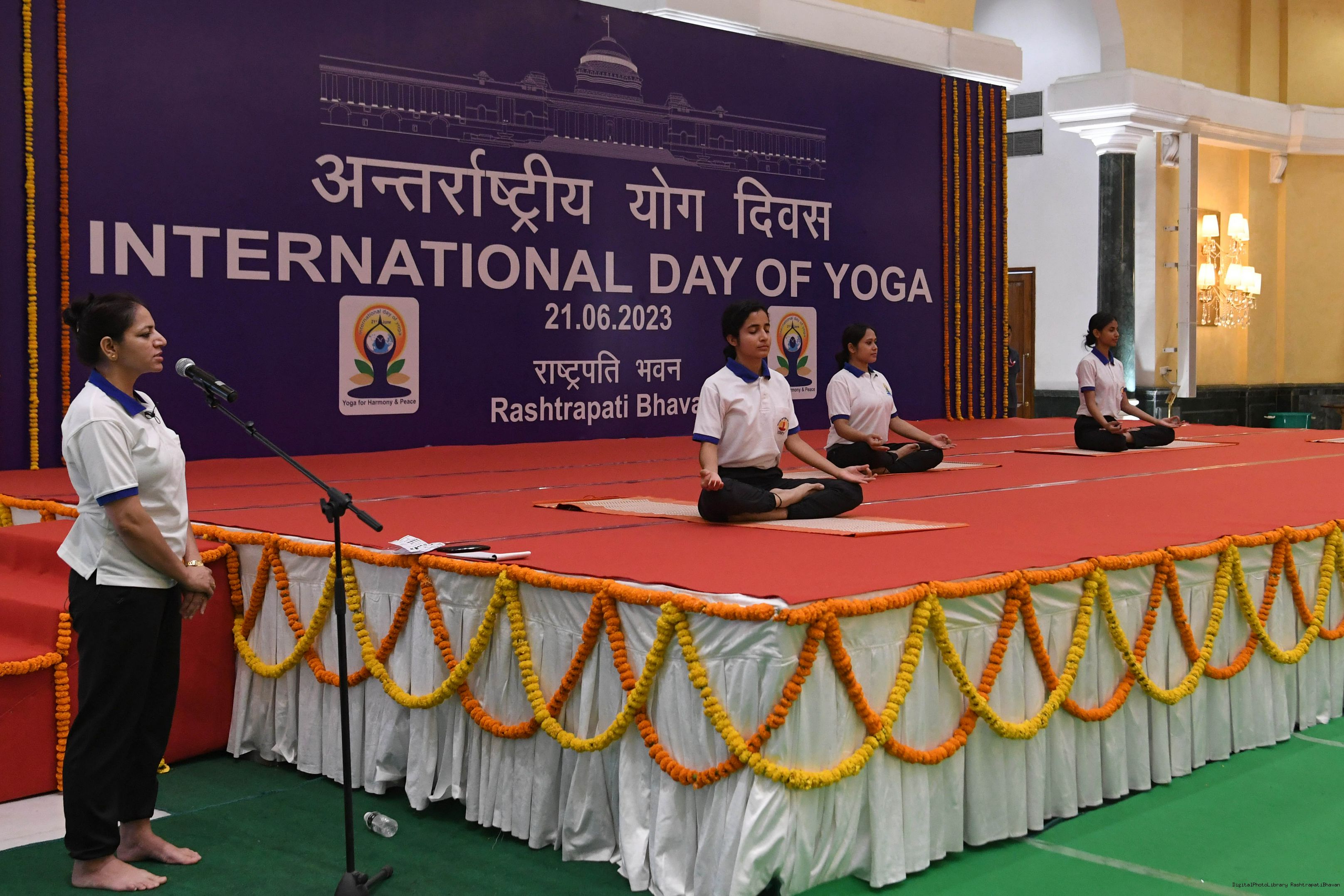 | Caption: | The President of India, Smt. Droupadi Murmu Inauguration of commemoration of the 9th International Day of Yoga at Rashtrapati Bhavan on June 21, 2023. |