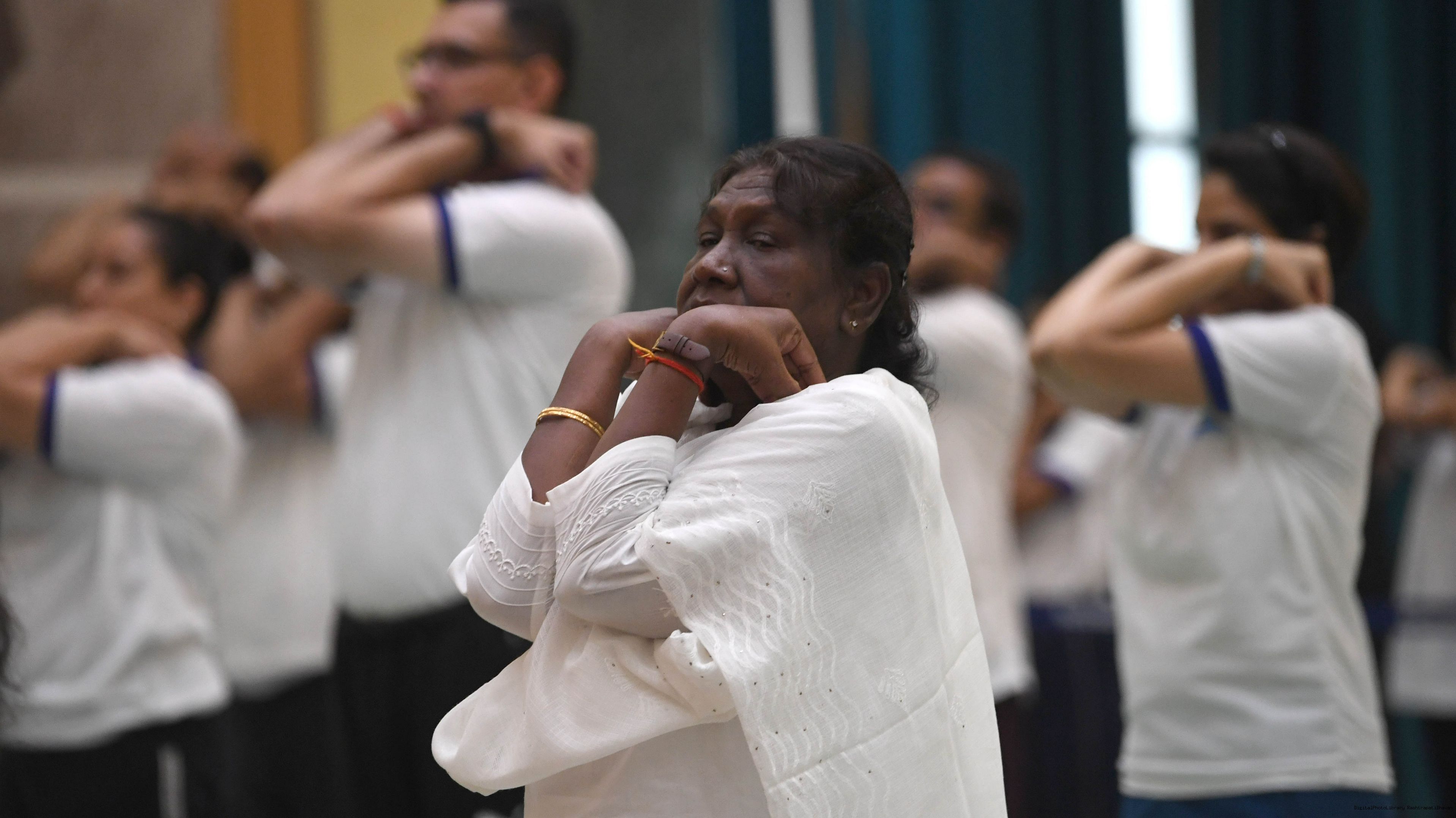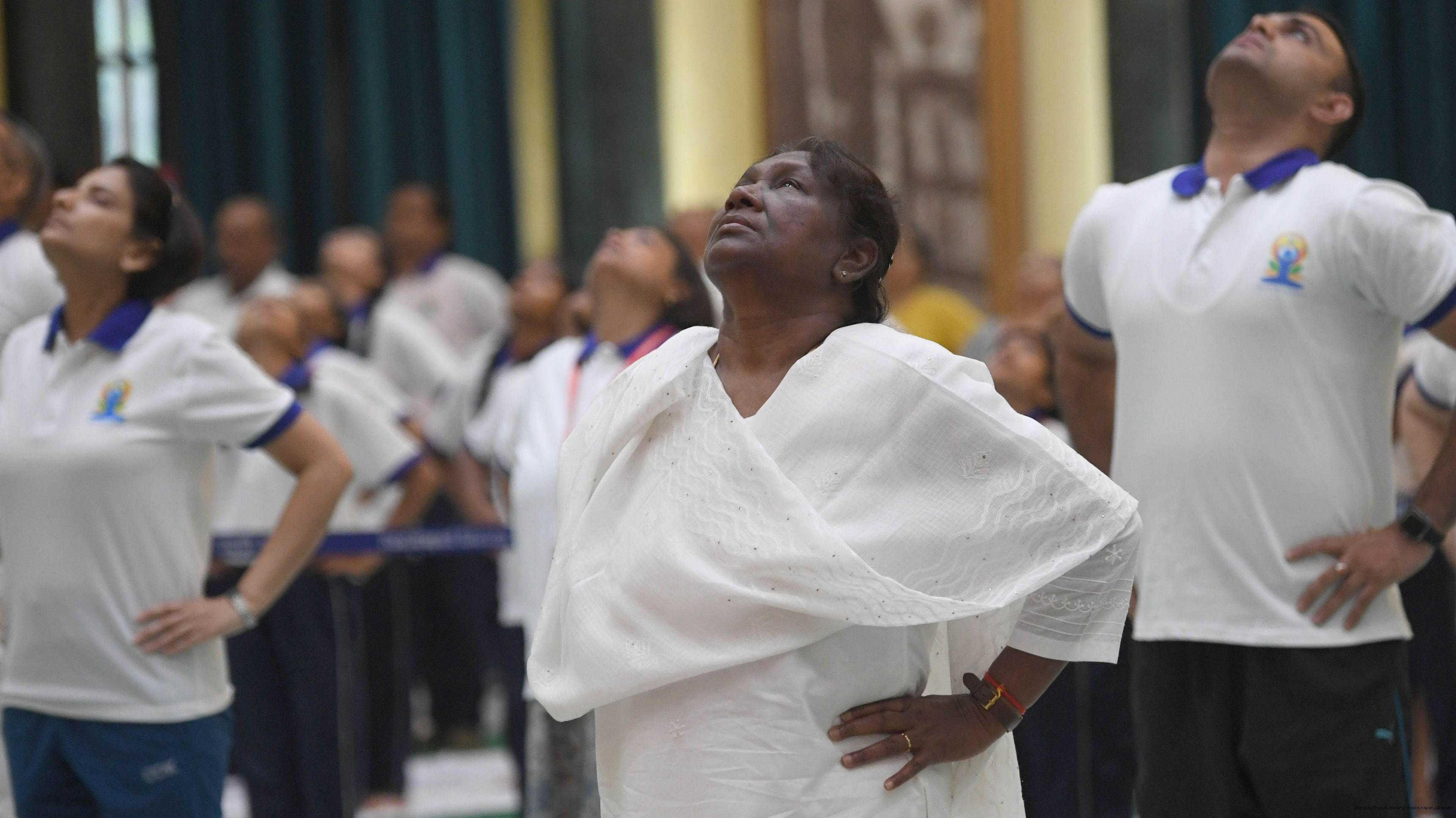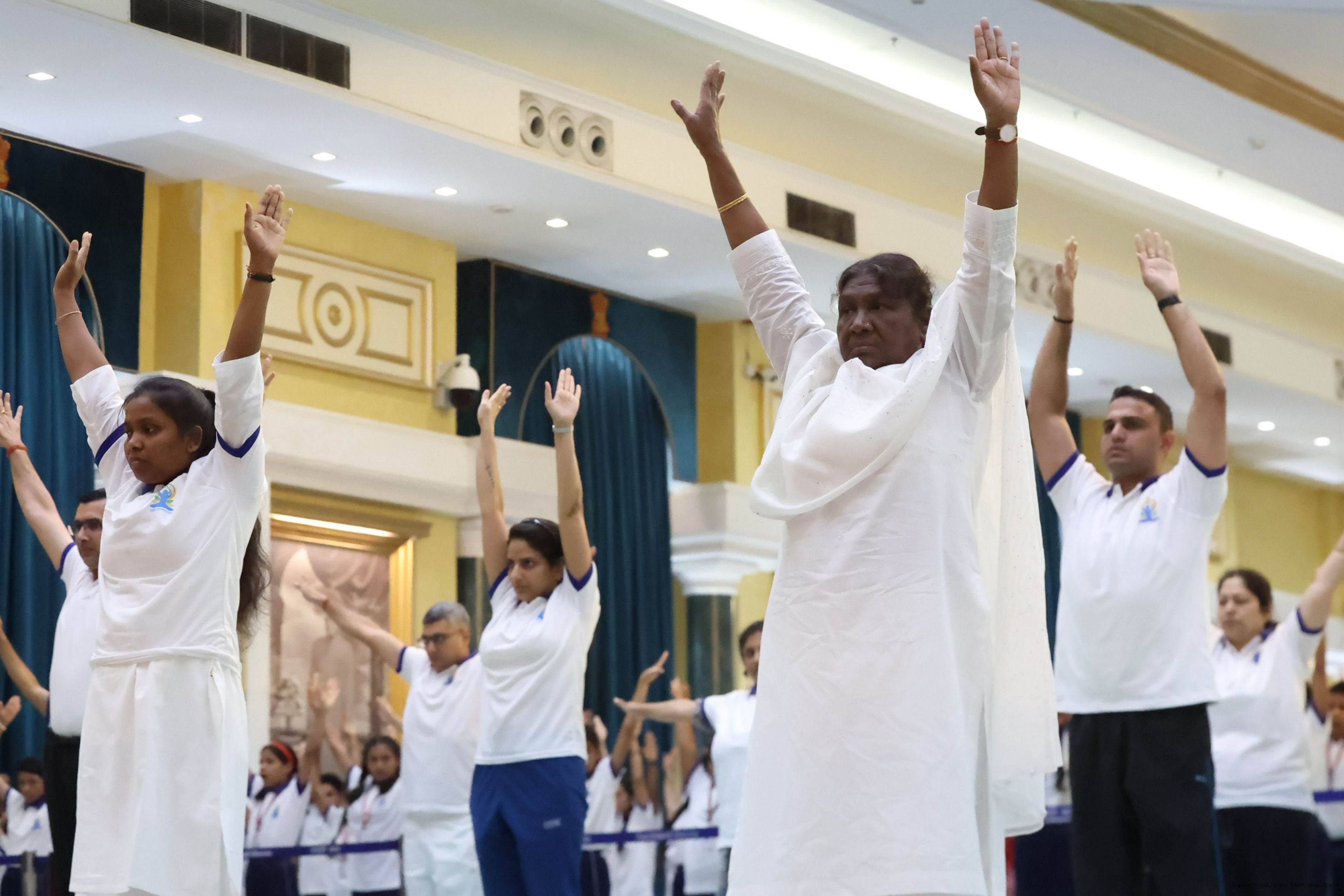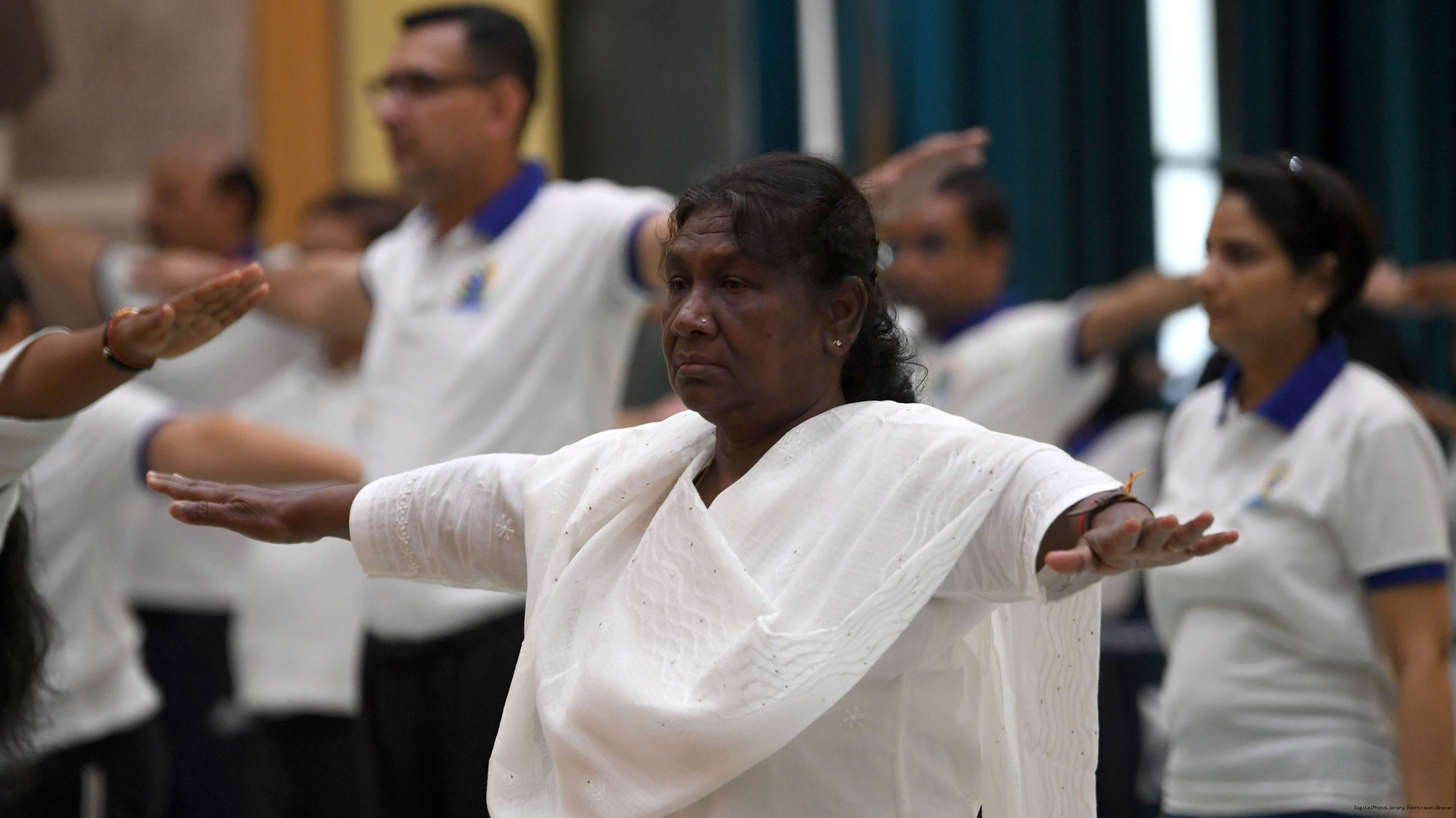 | Caption: | The President of India, Smt. Droupadi Murmu Inauguration of commemoration of the 9th International Day of Yoga at Rashtrapati Bhavan on June 21, 2023. |