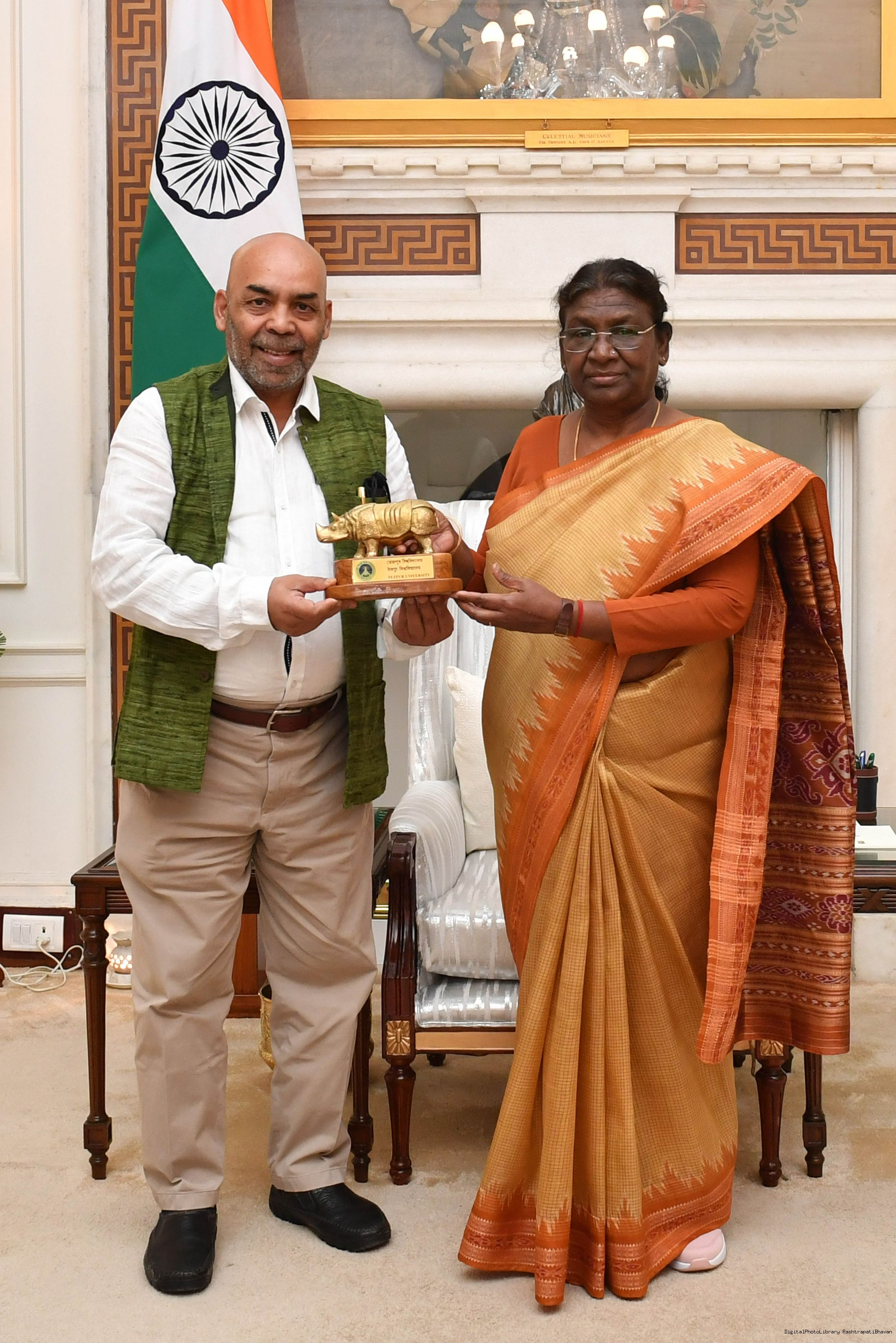 | Caption: | Prof. Shambhu Nath Singh, Vice Chancellor, Tezpur University meeting with the President of India, Smt. Droupadi Murmu at Rashtrapati Bhavan on June 21, 2023. |