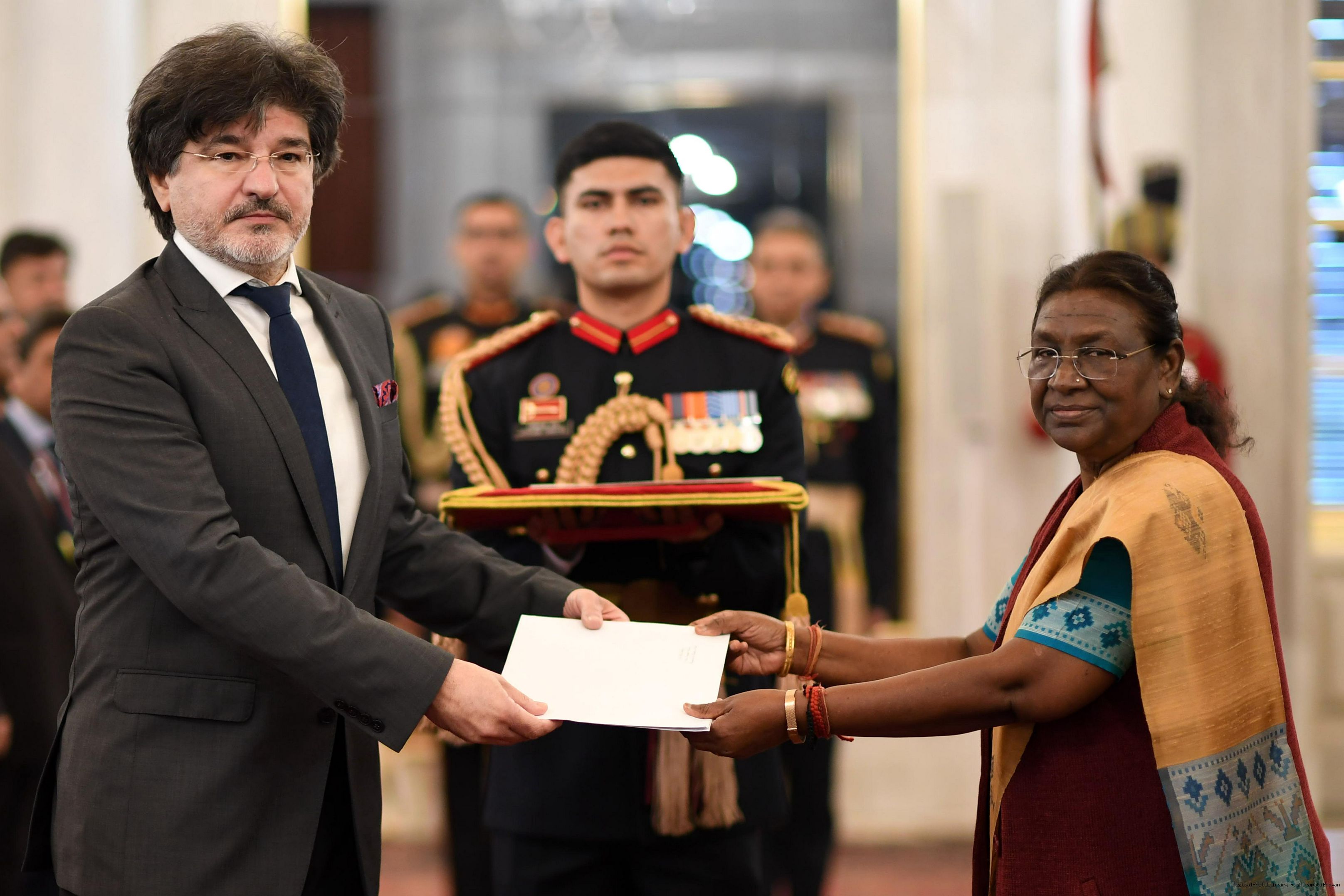 | Caption: | The Ambassador-designate of Bosnia and Herzegovina, H.E. Mr Haris Hrle presenting his credentials to the President of India, Smt Droupadi Murmu at Rashtrapati Bhavan on November 28, 2023. |