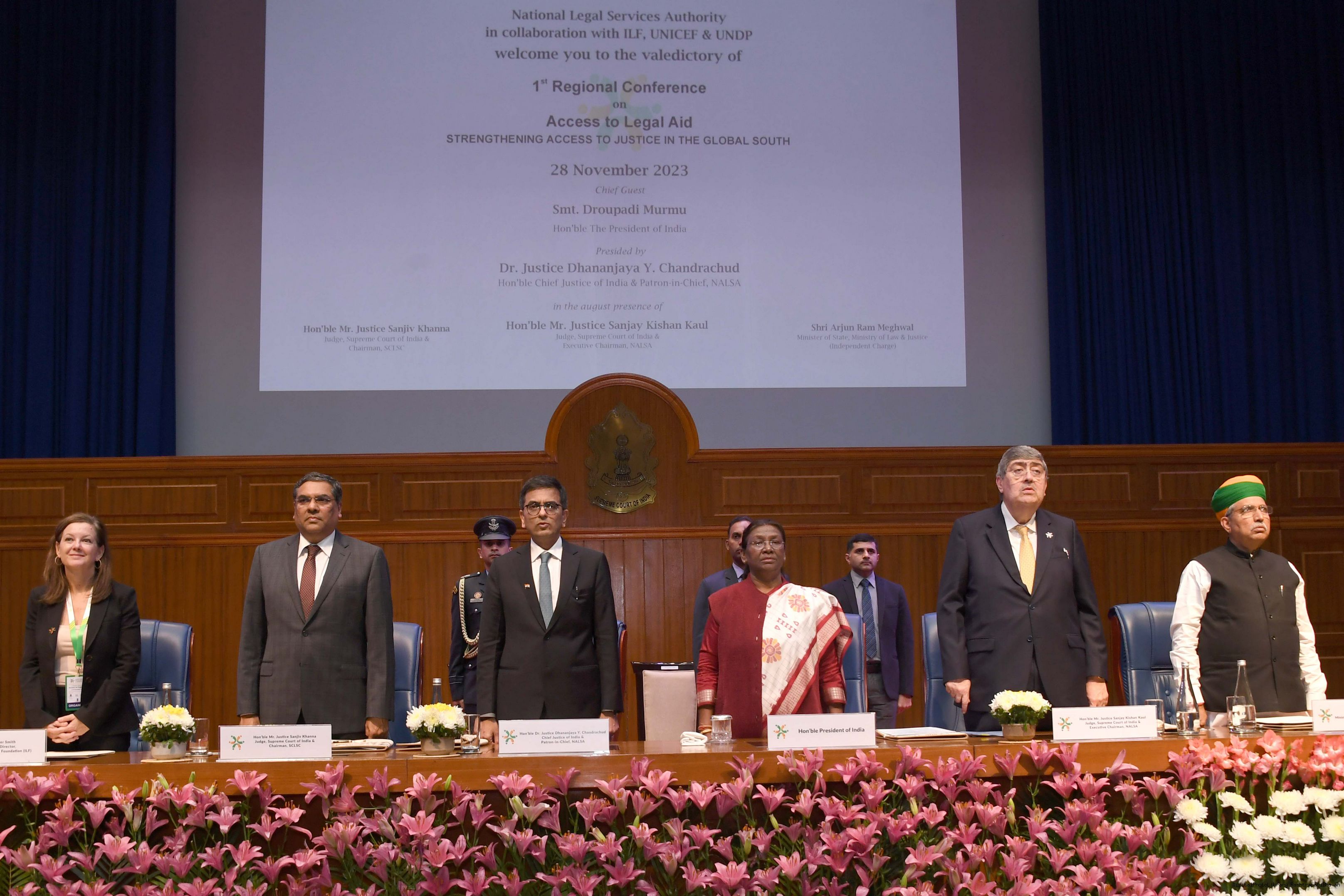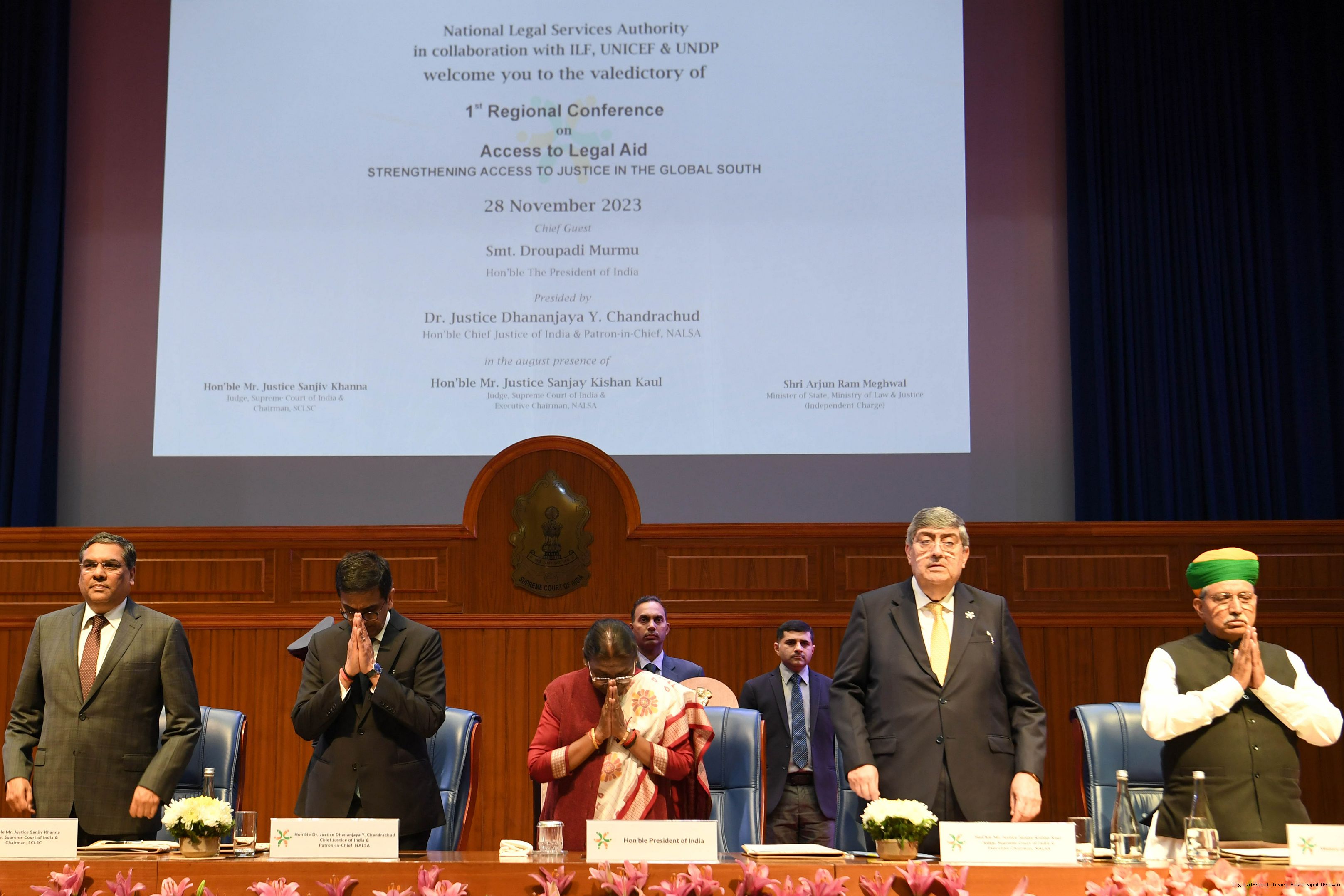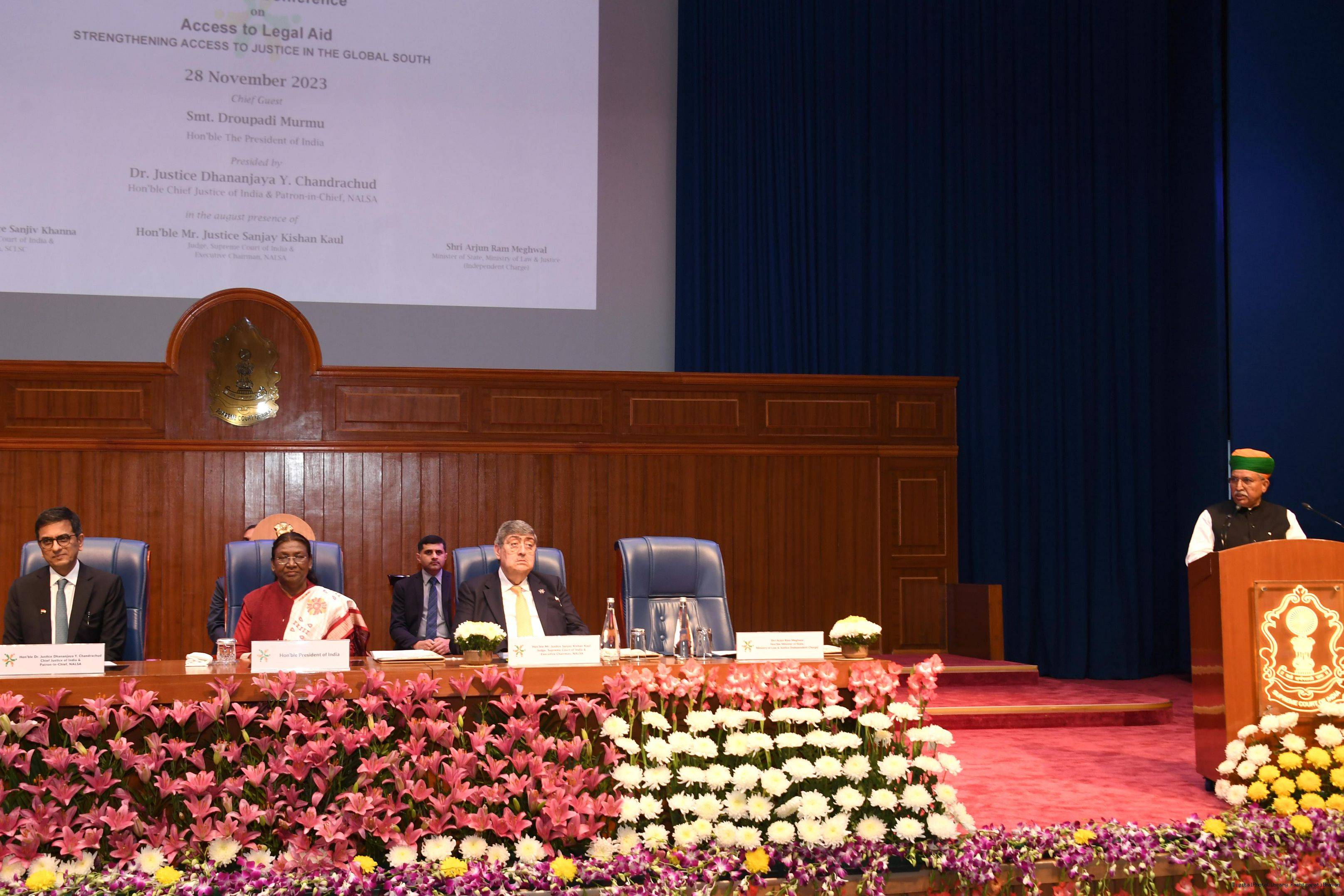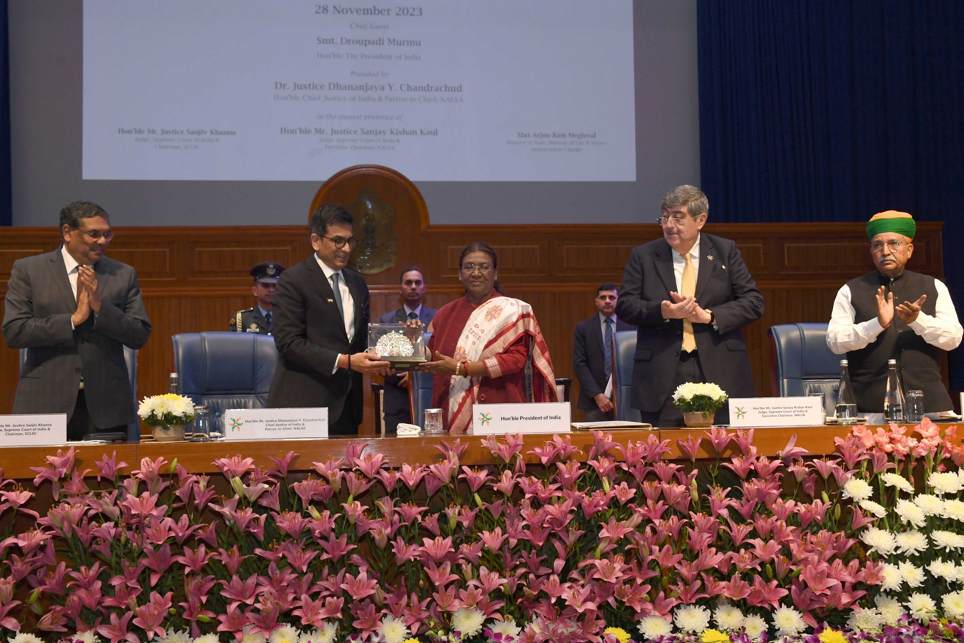 | Caption: | The President of India, Smt Droupadi Murmu graced the valedictory session of the 1st Regional Conference on ‘Access to Legal Aid: Strengthening Access to Justice in the Global South’ in New Delhi on November 28, 2023. |