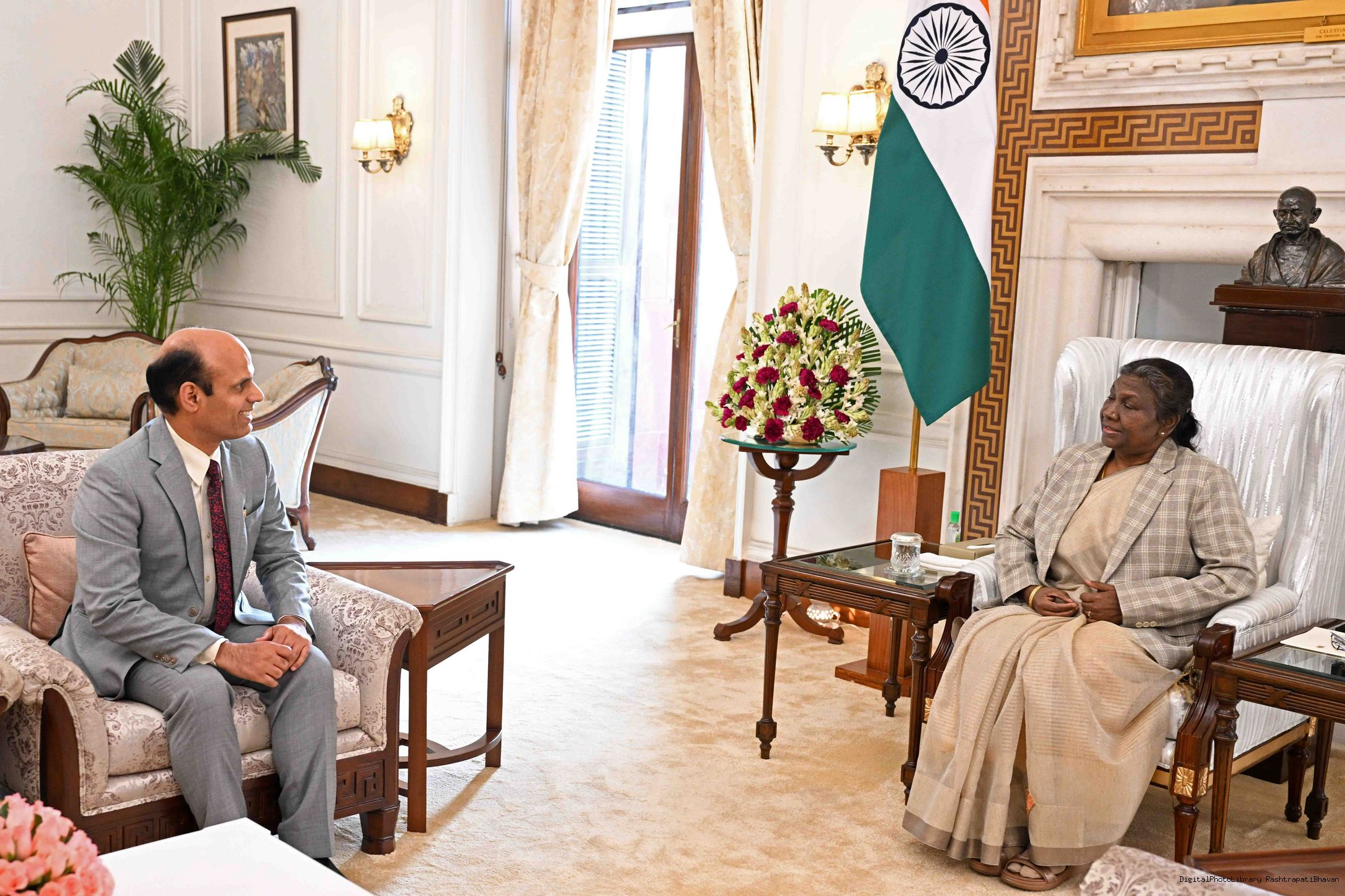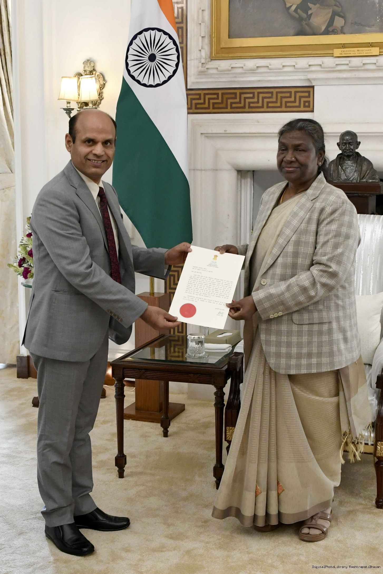| Caption: | Dr. Rajesh Ranjan, High Commissioner-designate to Abidjan, Cote d'lvoire meeting with the President of India, Smt. Droupadi Murmu, at Rashtrapati Bhavan on Dec 21, 2022. |