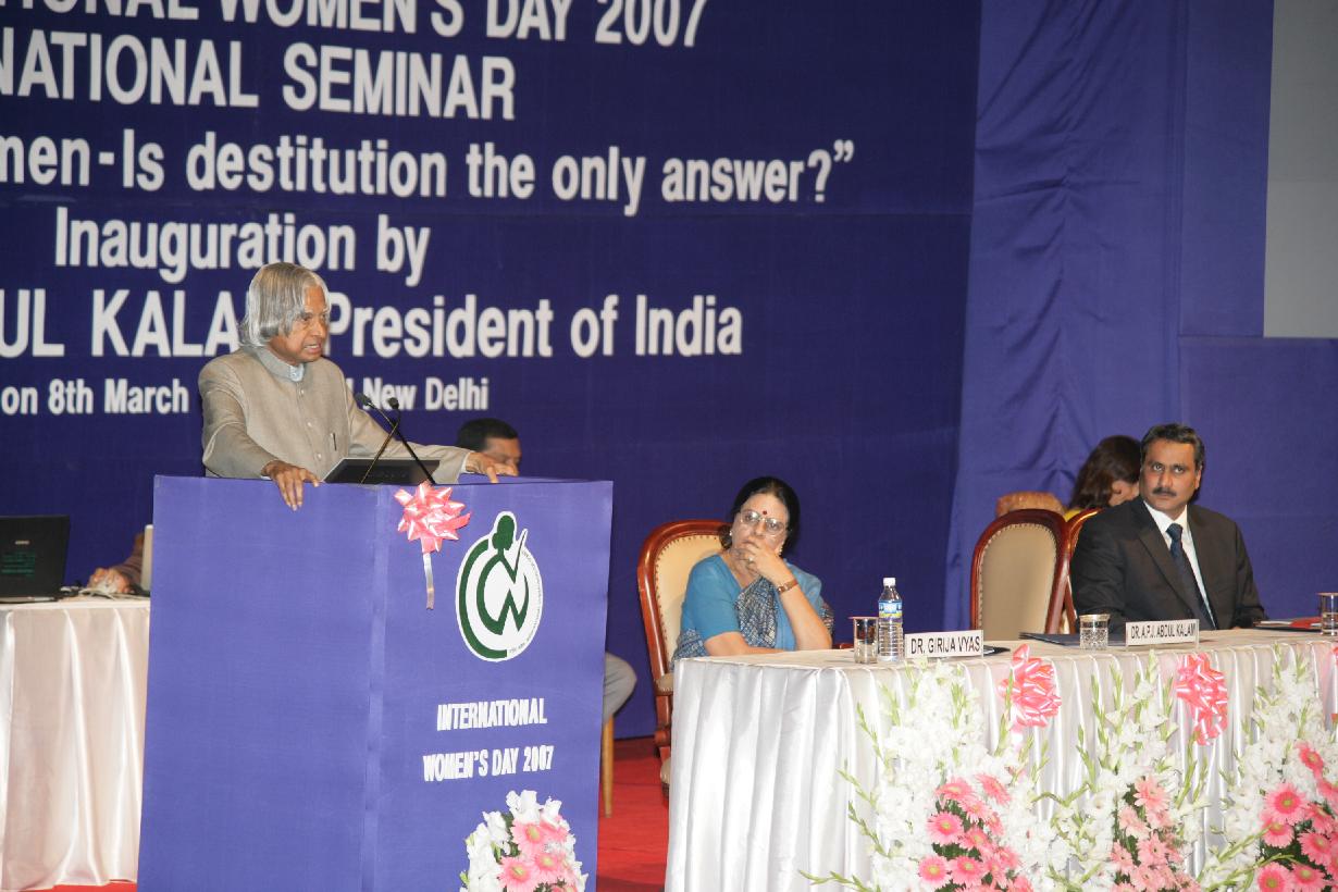 | Caption: | The President of India, Dr A P J Abdul Kalam inaugurating the National Seminar on "Mentally ill Women - is Destitution the only answer?" being organized by the National Commission for Women on the occasion of International Women's Day at FICCI Auditorium, Tansen Marg in New Delhi on March 08, 2007 |