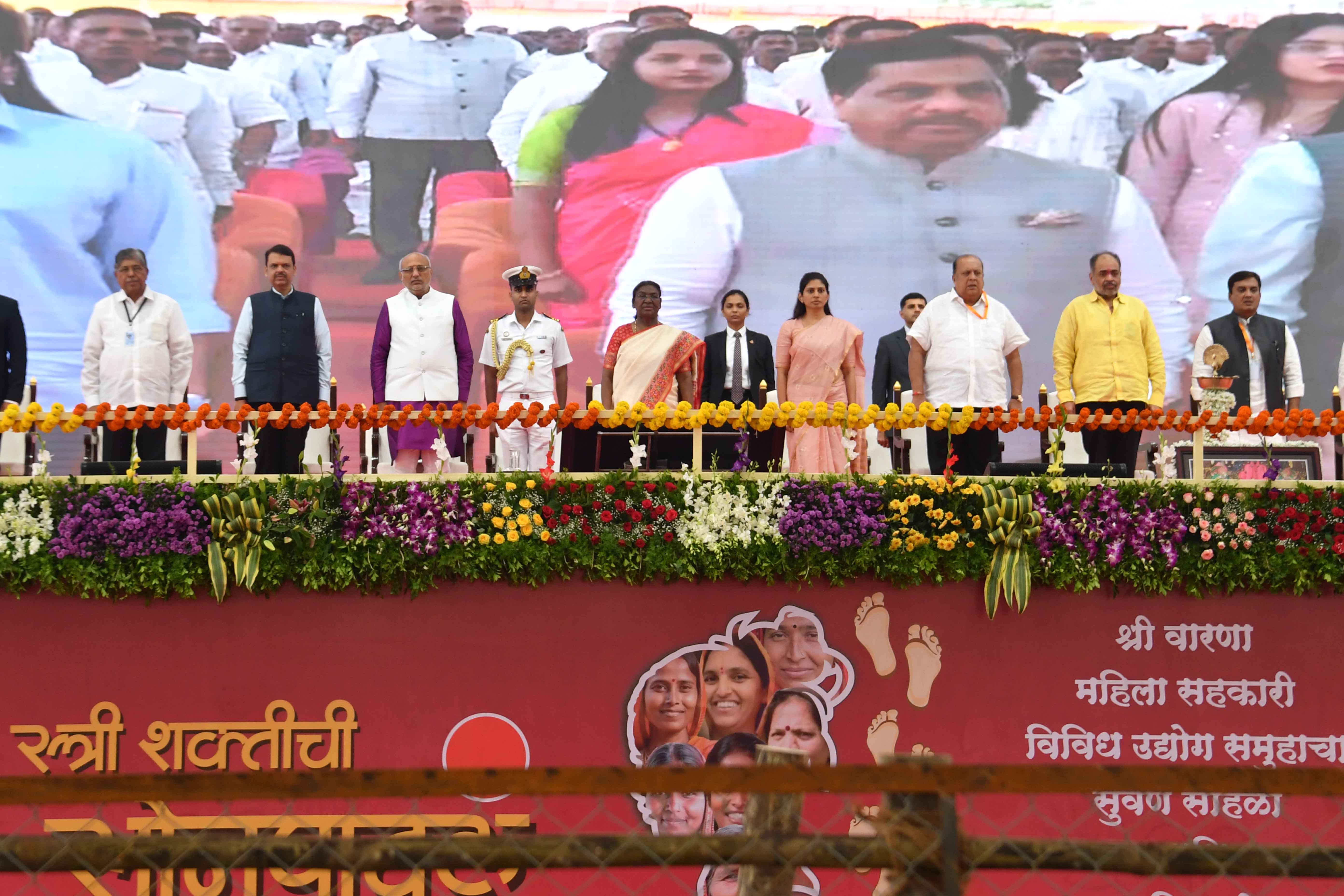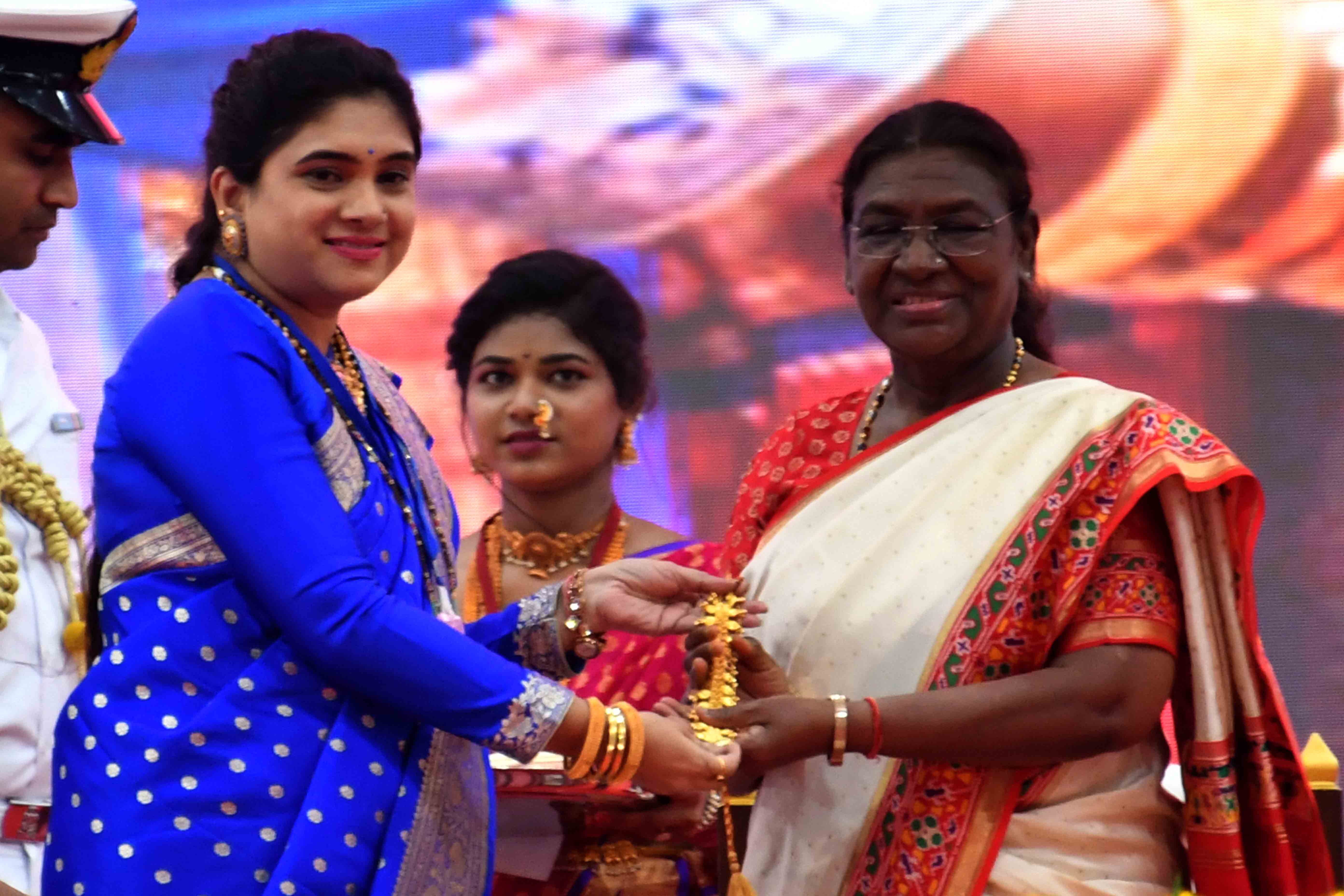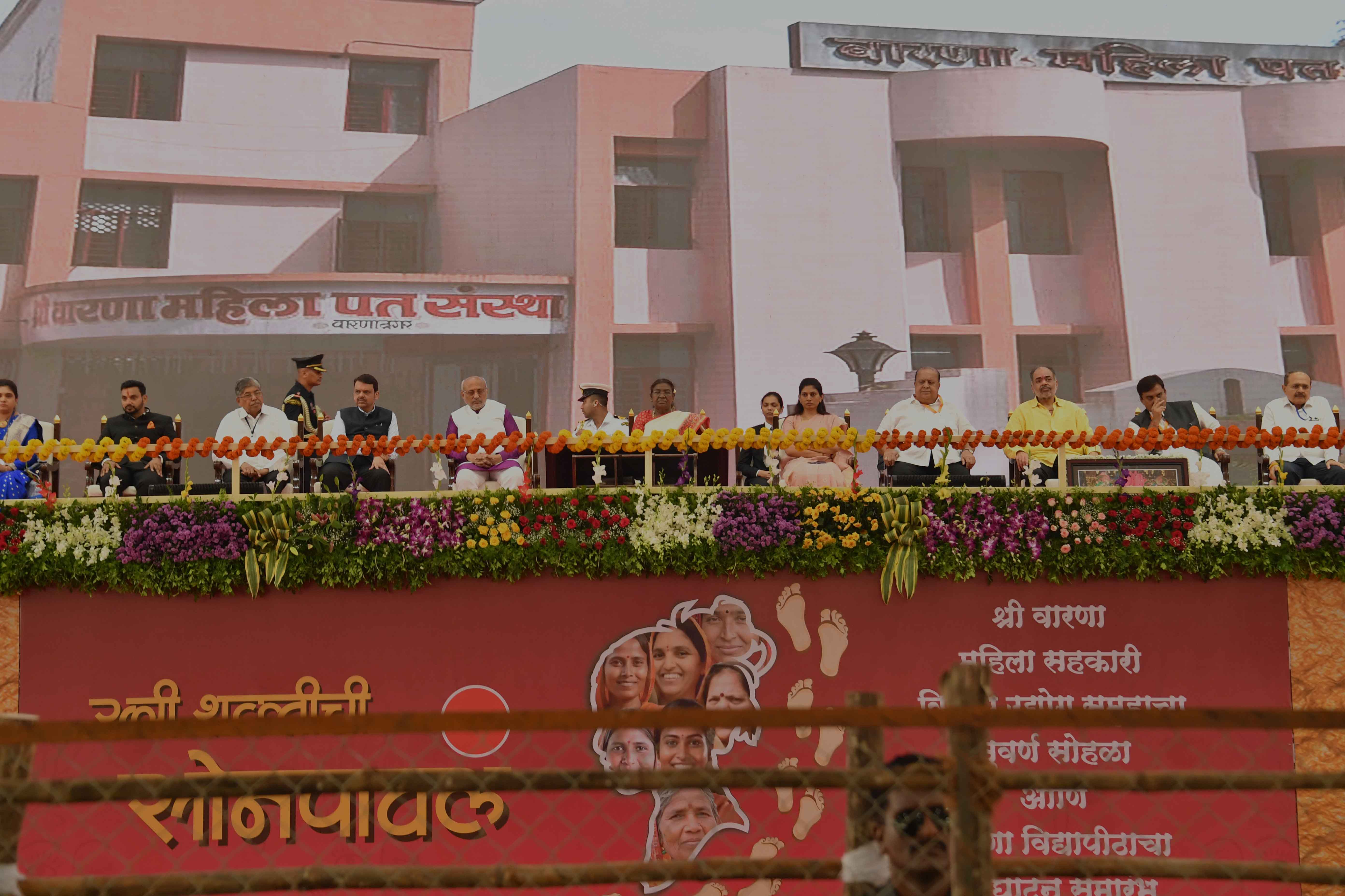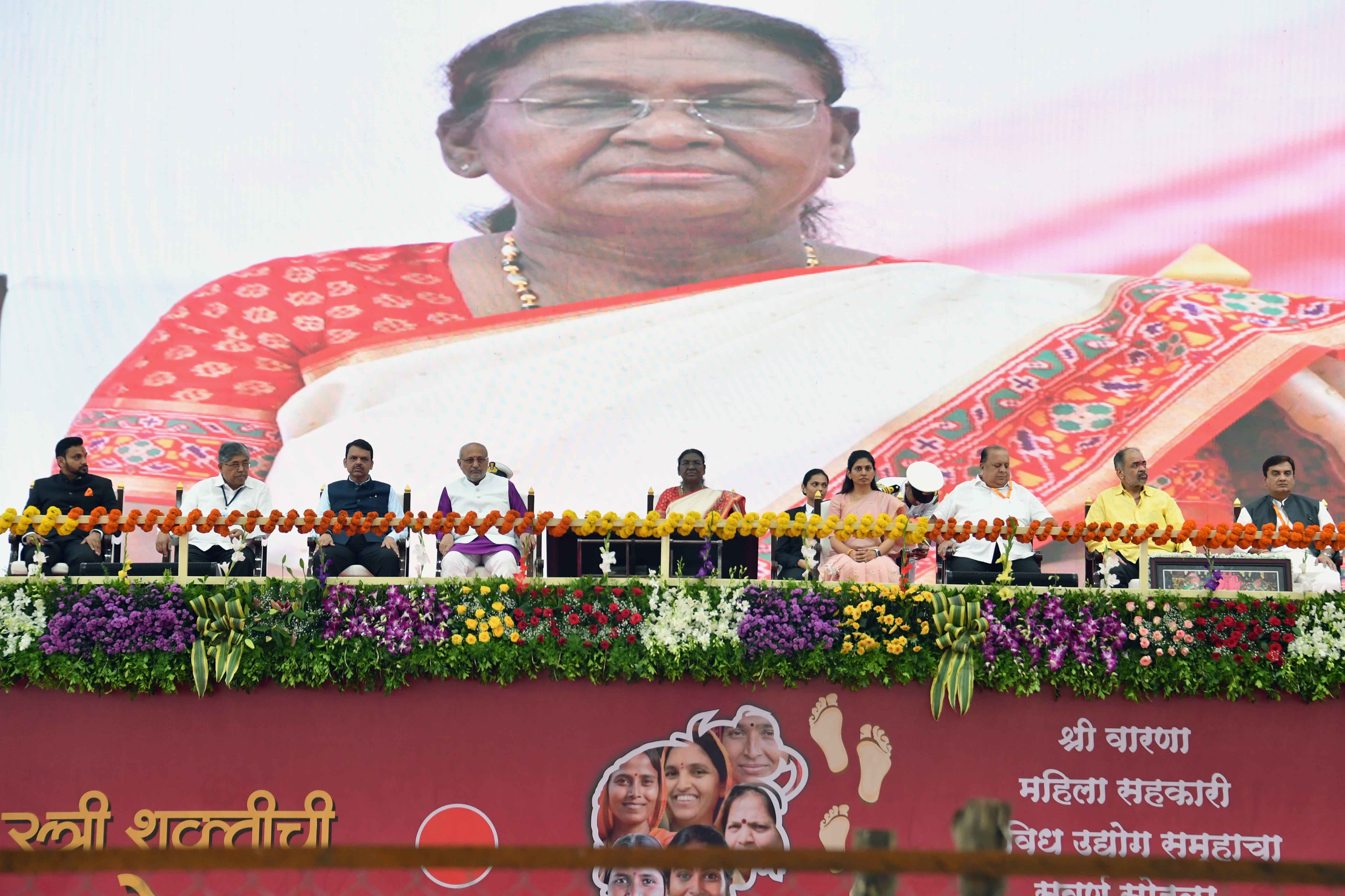 | Caption: | The President of India, Smt. Droupadi Murmu graced the golden jubilee celebration of the Shri Warana Women Cooperative Group at Warananagar, Kolhapur, Maharashtra on September 2, 2024. |