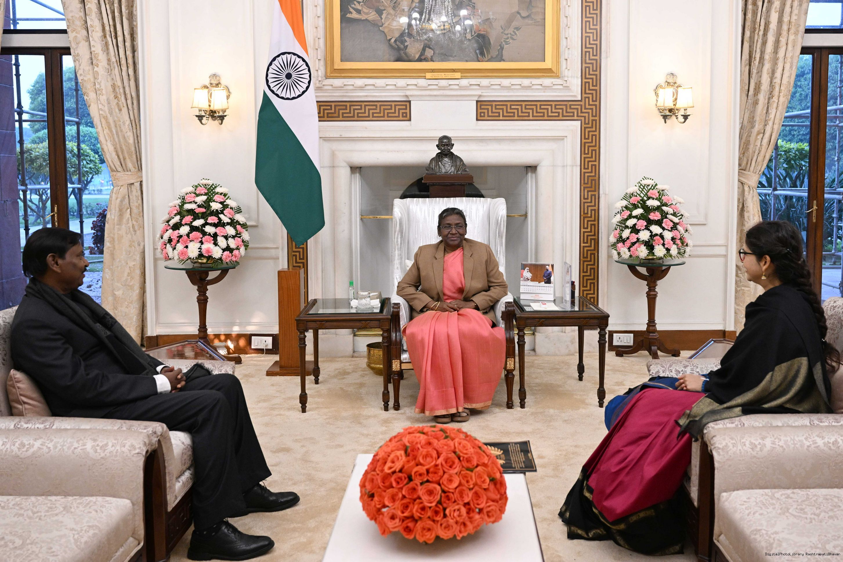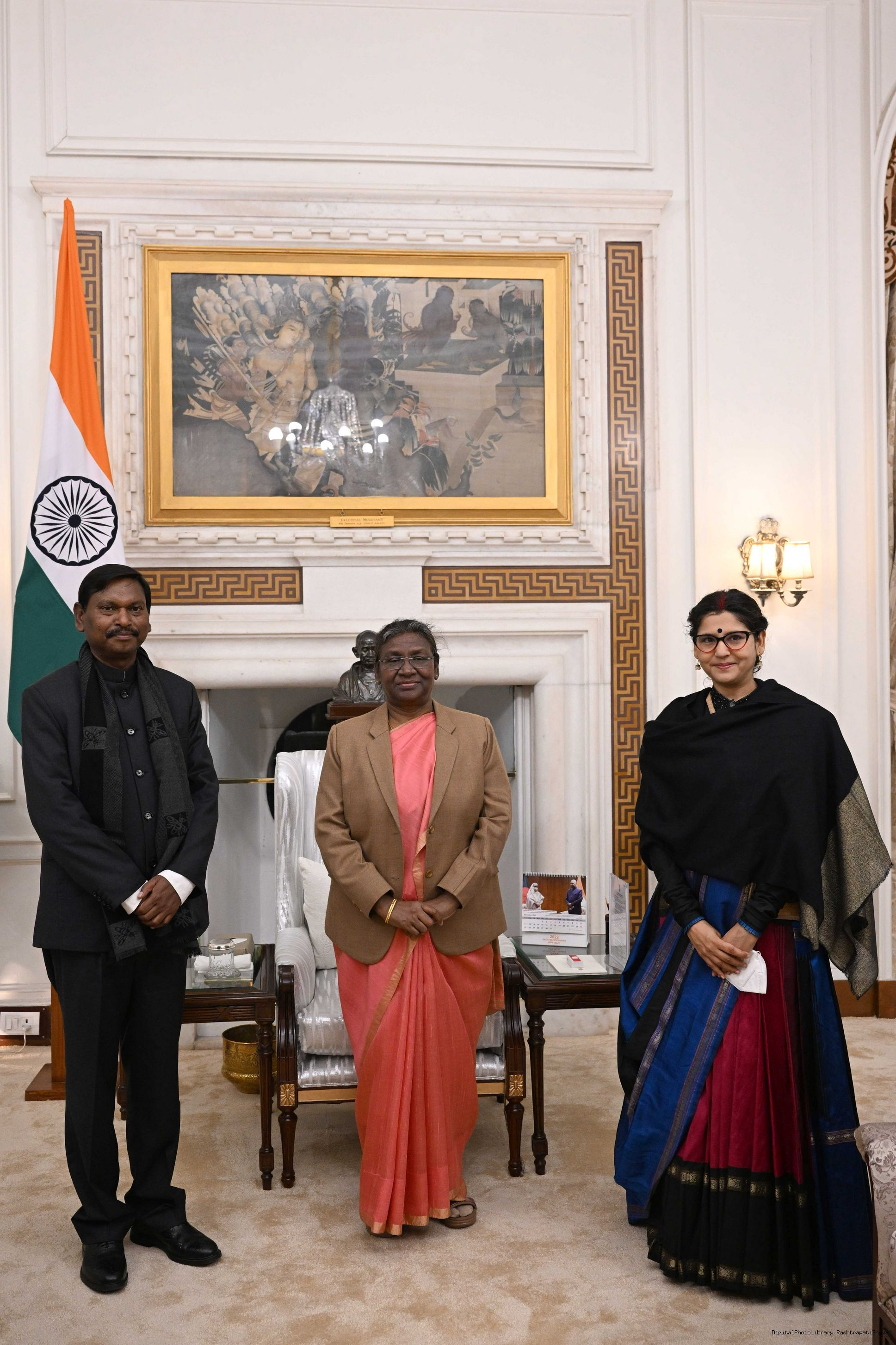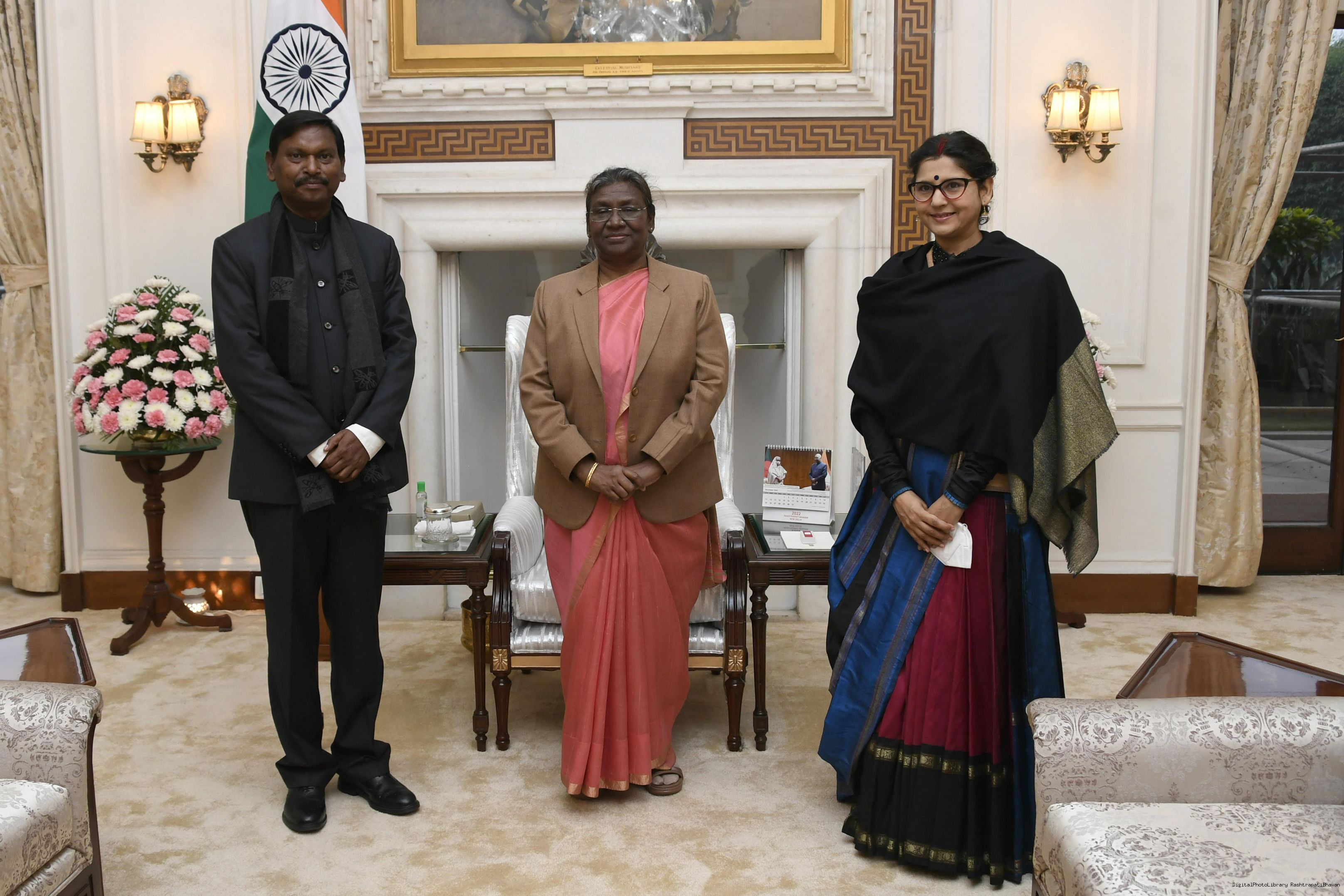 | Caption: | Shri Arjun Munda, Minister of Tribal Affairs meeting with the President of India, Smt. Droupadi Murmu, at Rashtrapati Bhavan on Dec 23, 2022. |