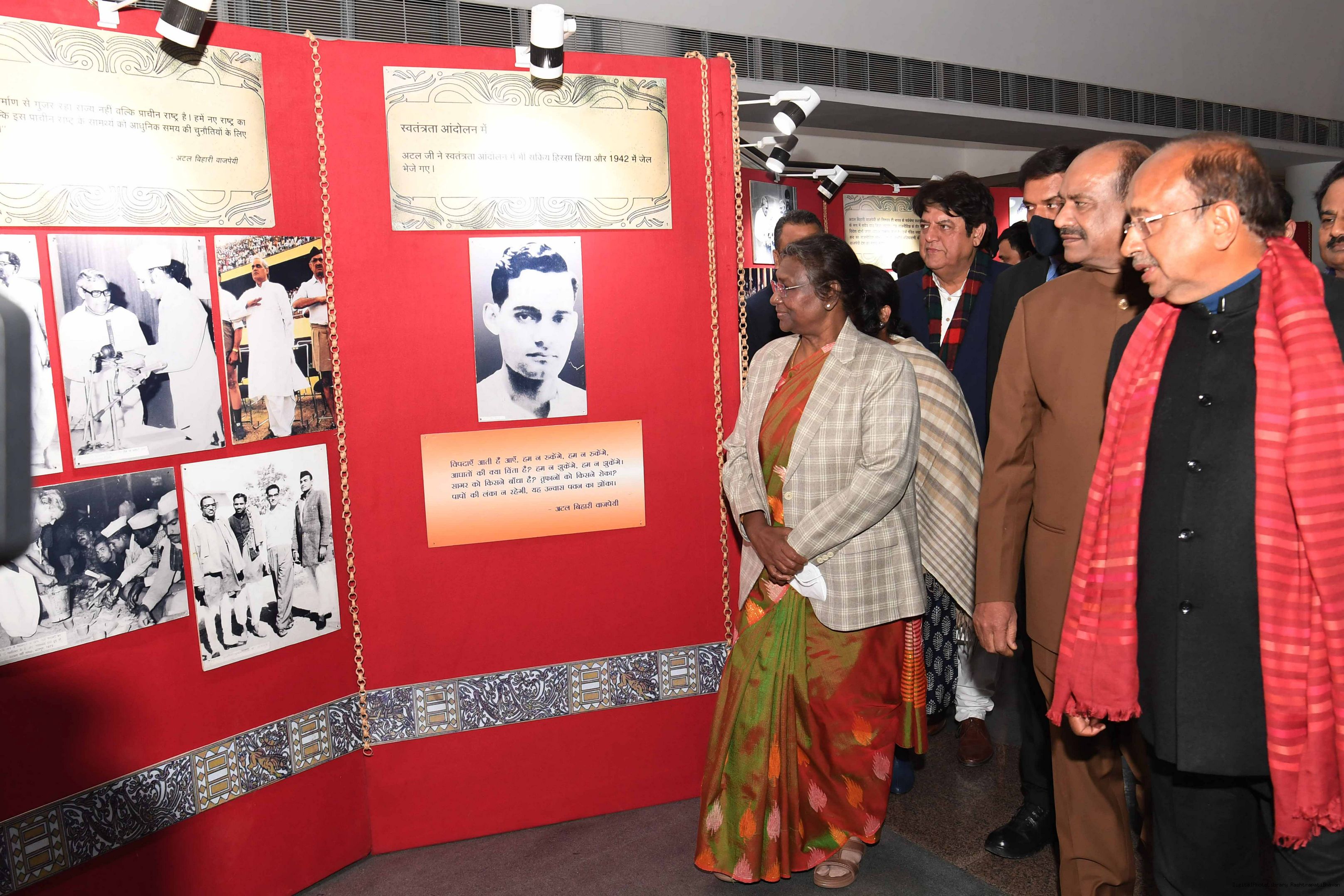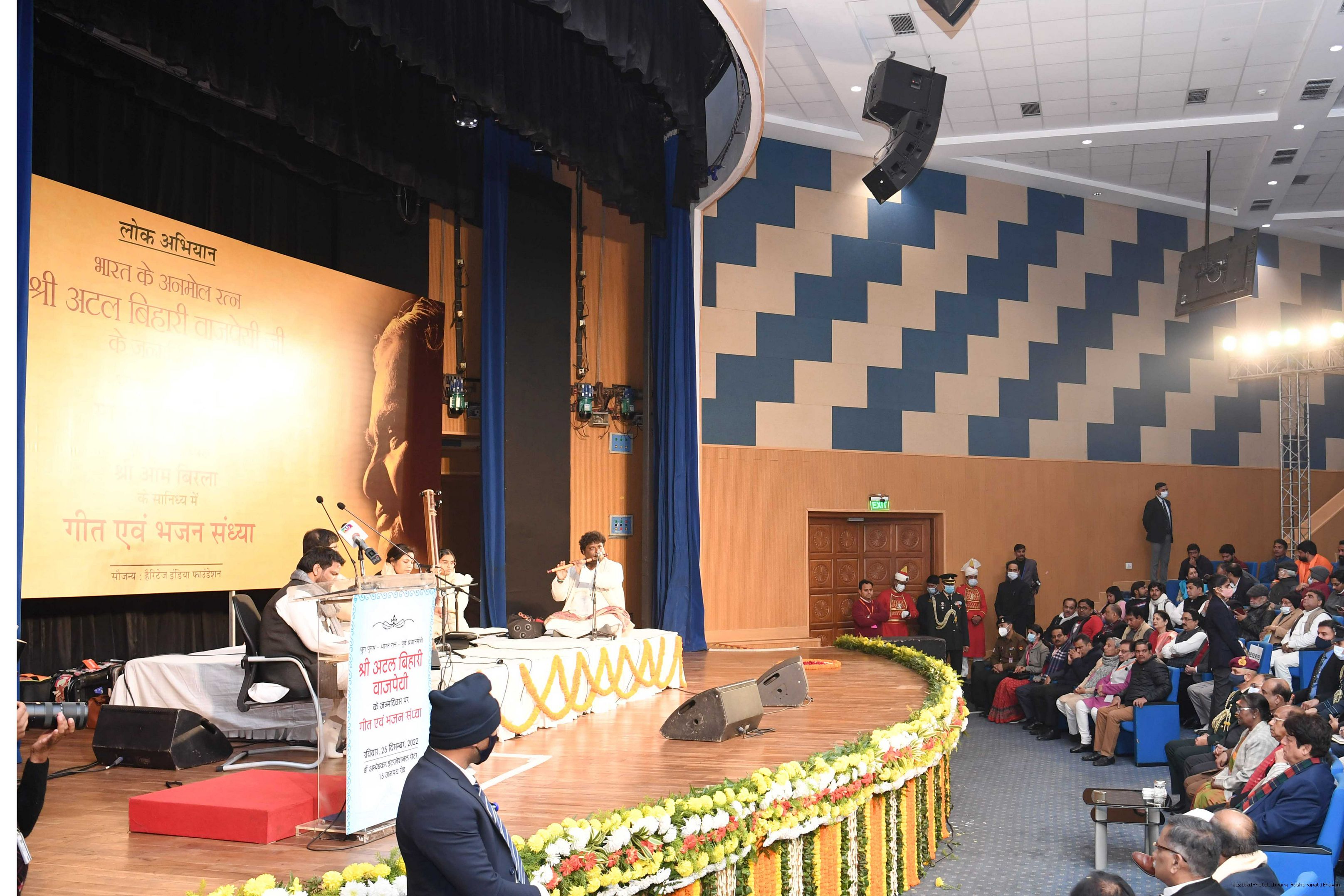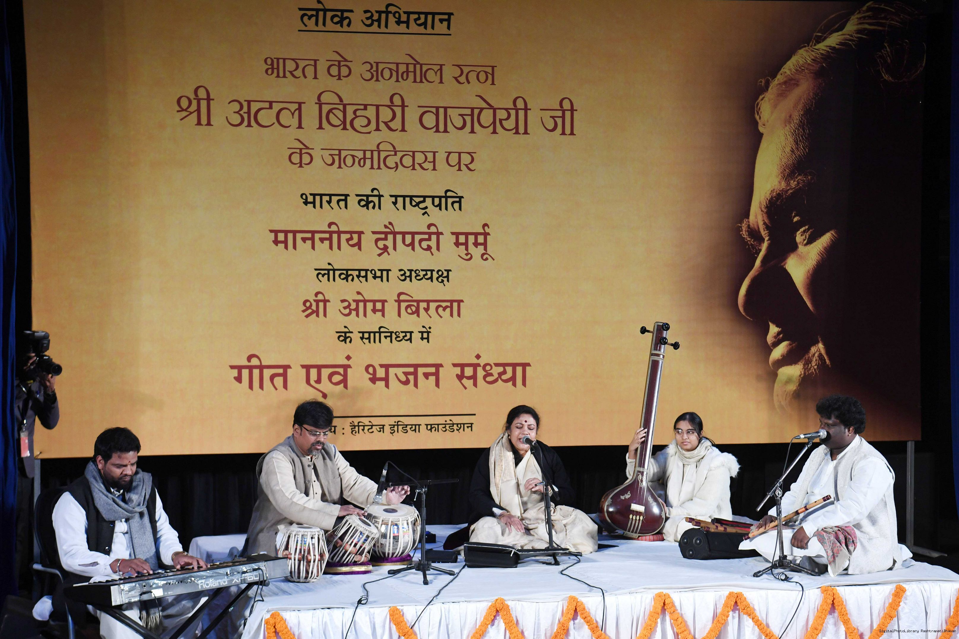 | Caption: | The President of India, Smt. Droupadi Murmu inaugurated a photo exhibition and attended Bhajan Sandhya on the birth anniversary of Shri Atal Bihari Vajpayee, former Prime Minister of India, at Dr. Ambedkar International Centre, in New Delhi on December 25, 2022. |