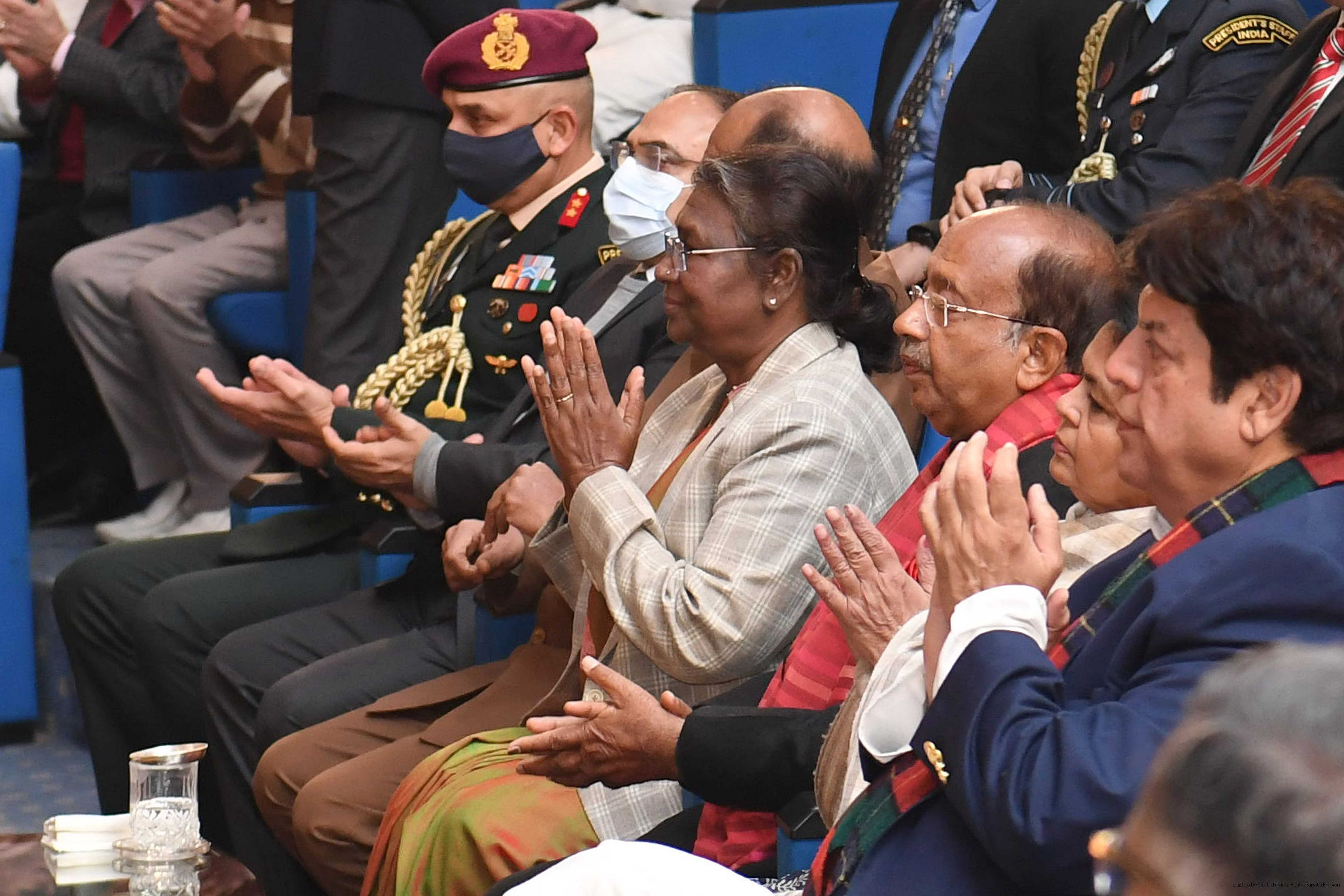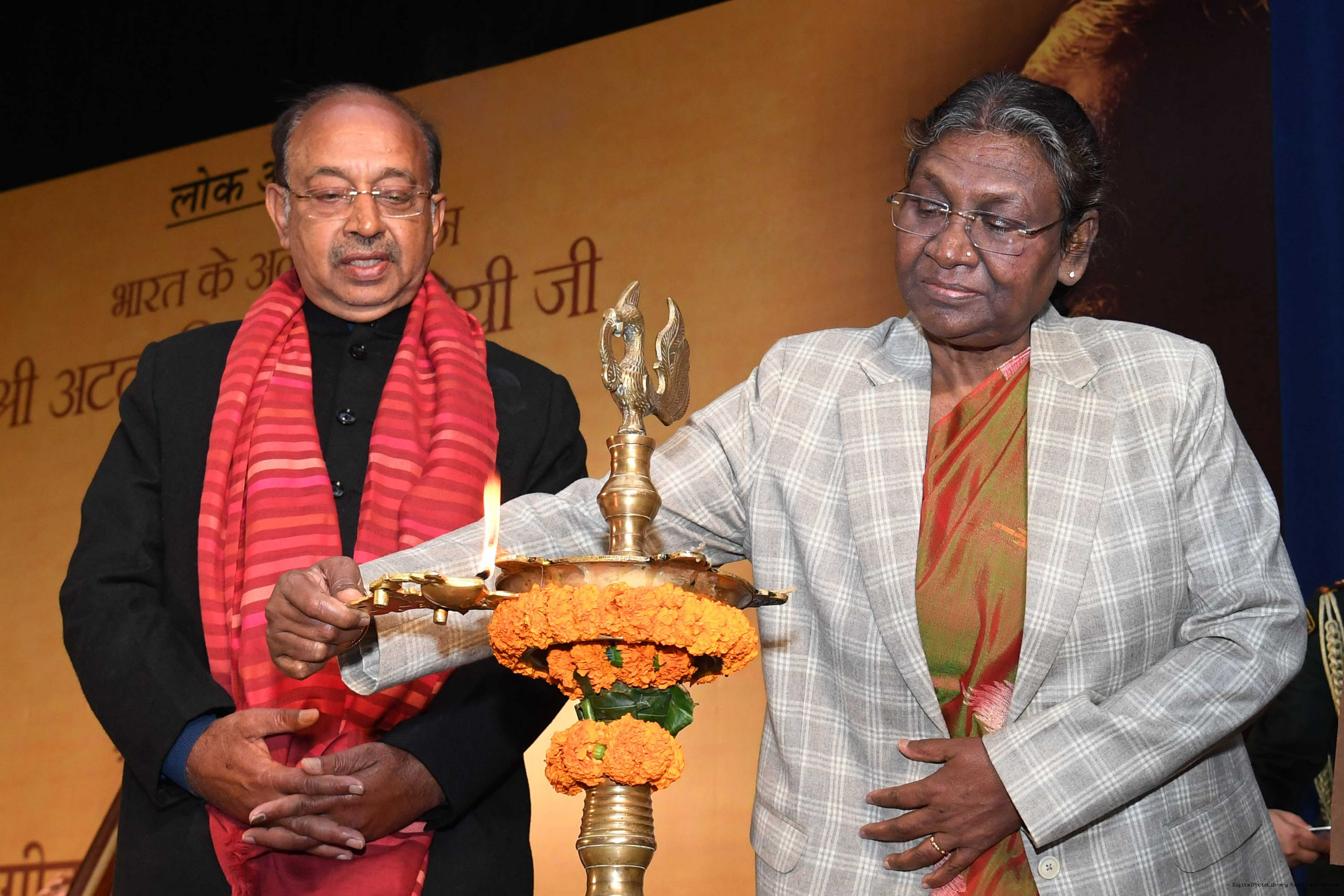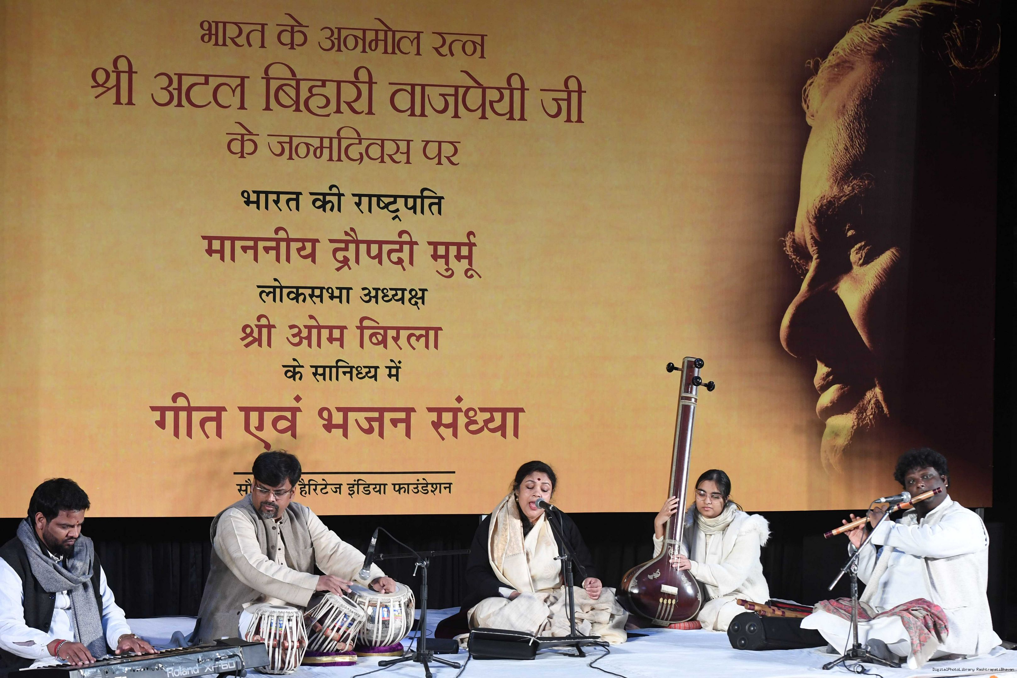 | Caption: | The President of India, Smt. Droupadi Murmu inaugurated a photo exhibition and attended Bhajan Sandhya on the birth anniversary of Shri Atal Bihari Vajpayee, former Prime Minister of India, at Dr. Ambedkar International Centre, in New Delhi on December 25, 2022. |