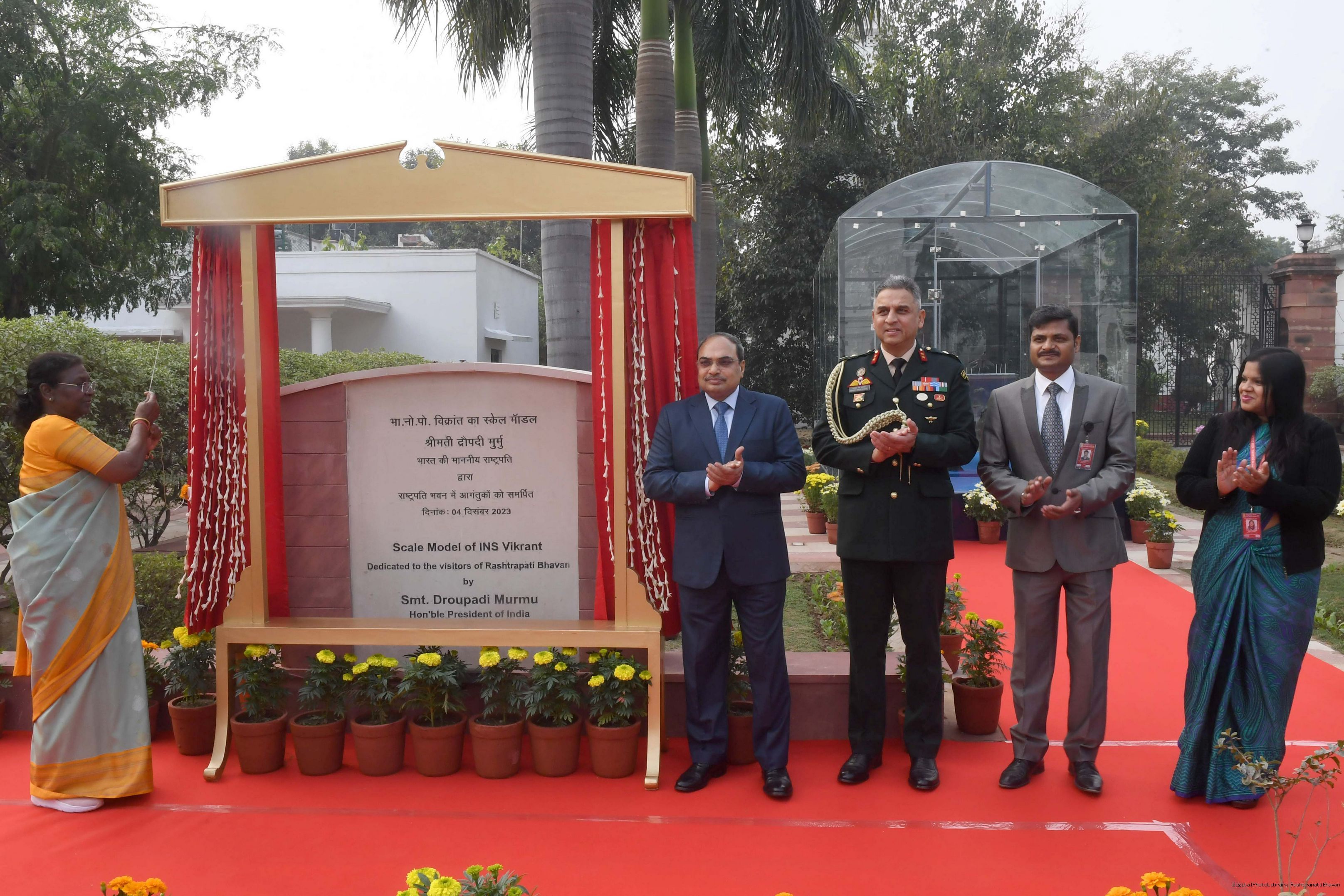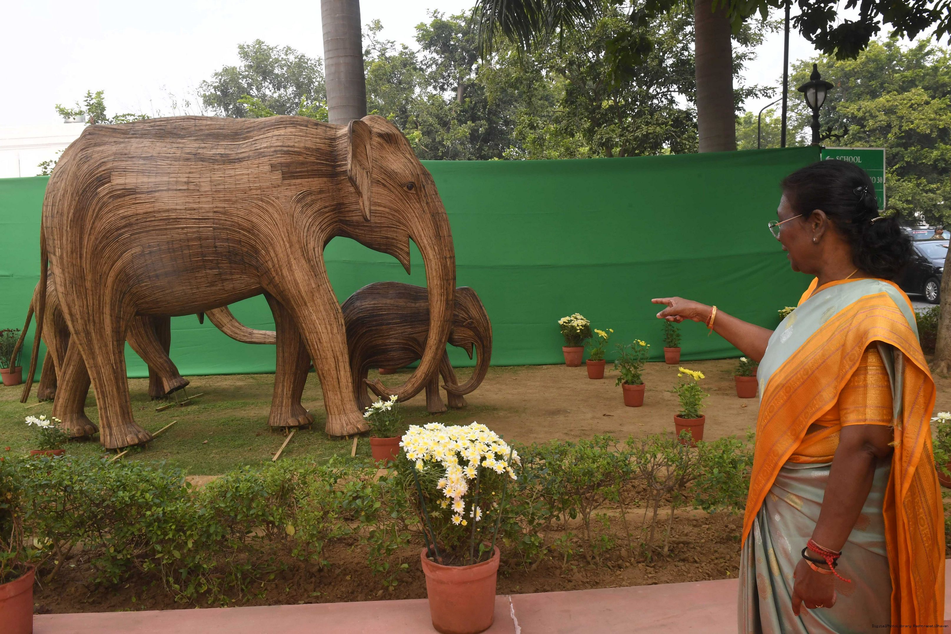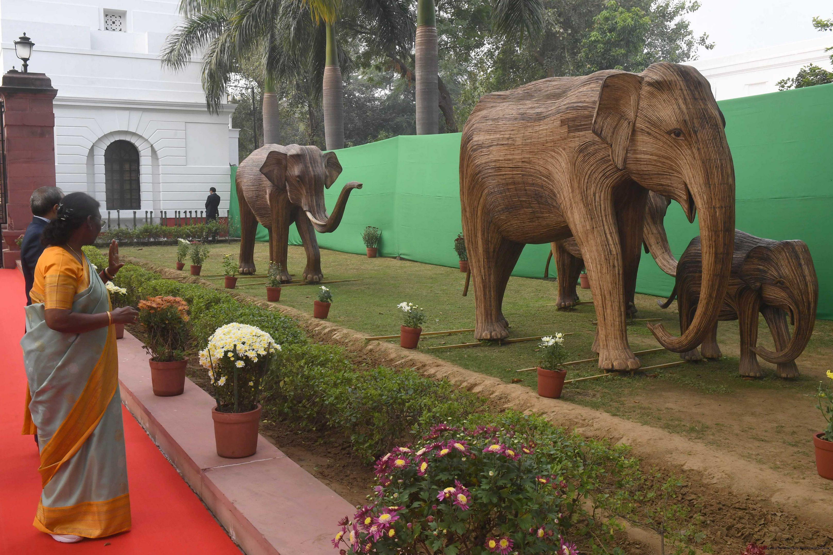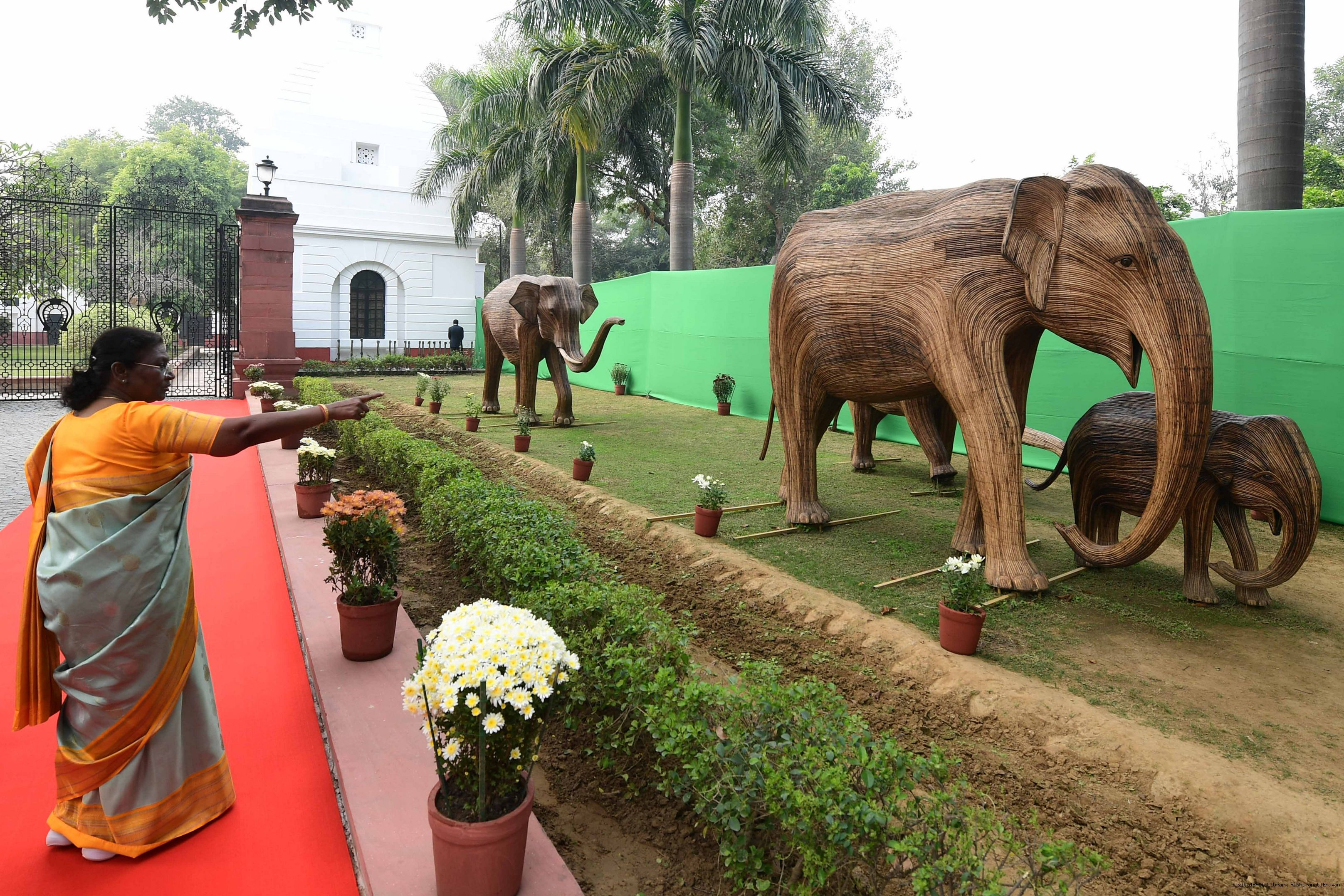 | Caption: | The President of India Smt. Droupadi Murmu Inaugurating three Military platforms the lantana elephants at Rastrapati Bhawan on December 4,2023 |