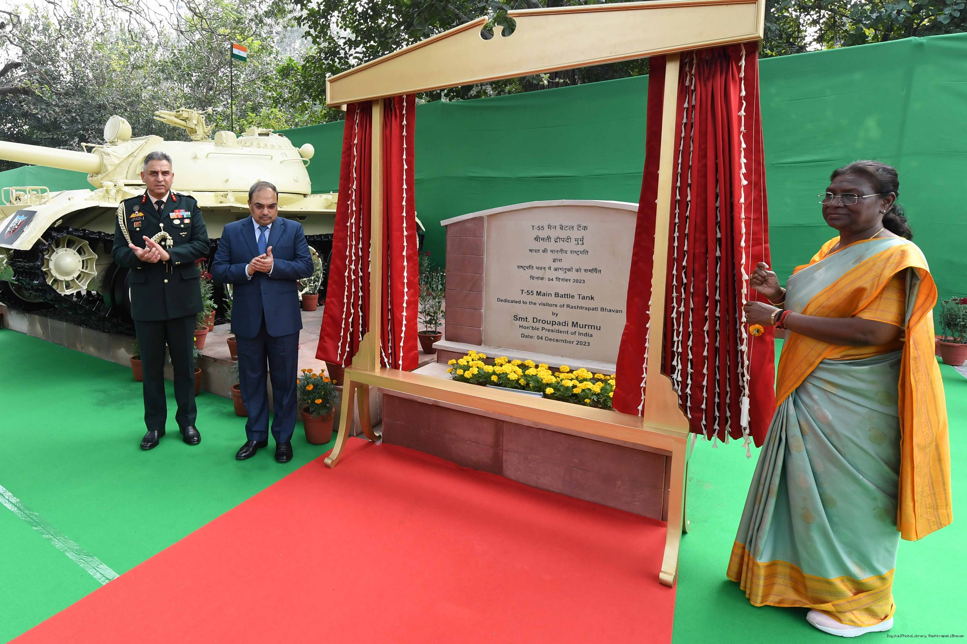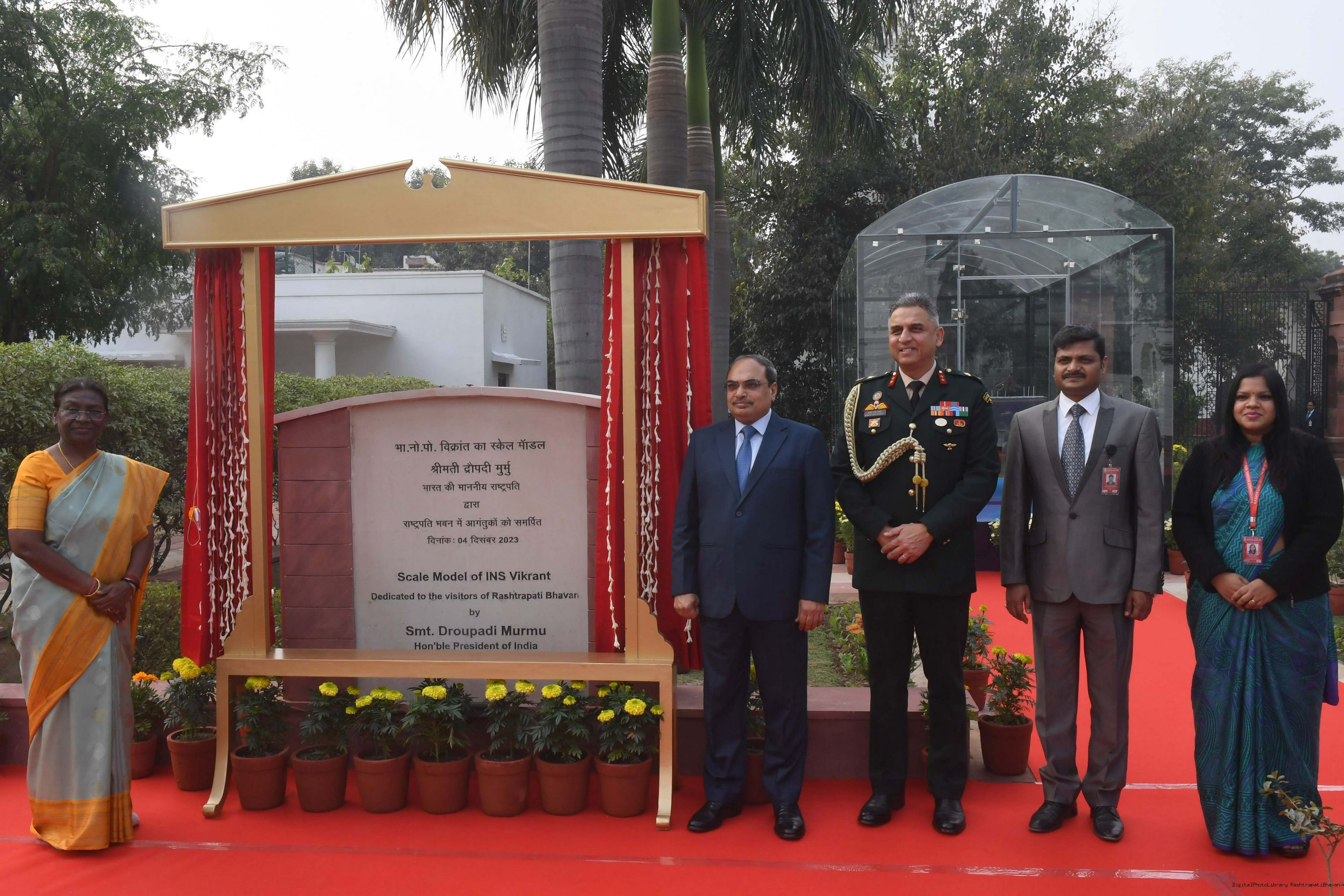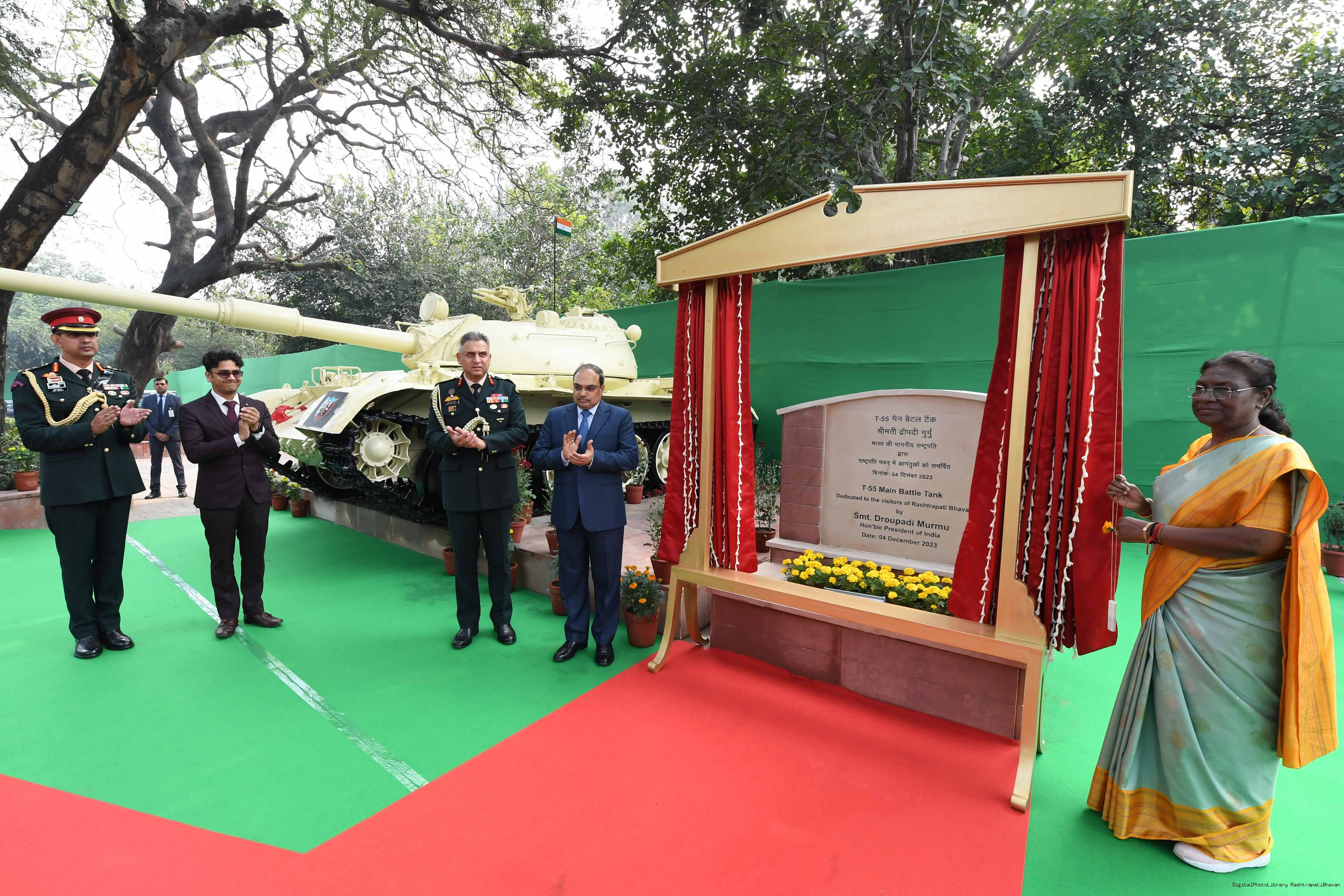 | Caption: | The President of India Smt. Droupadi Murmu Inaugurating three Military platforms the lantana elephants at Rastrapati Bhawan on December 4,2023 |
