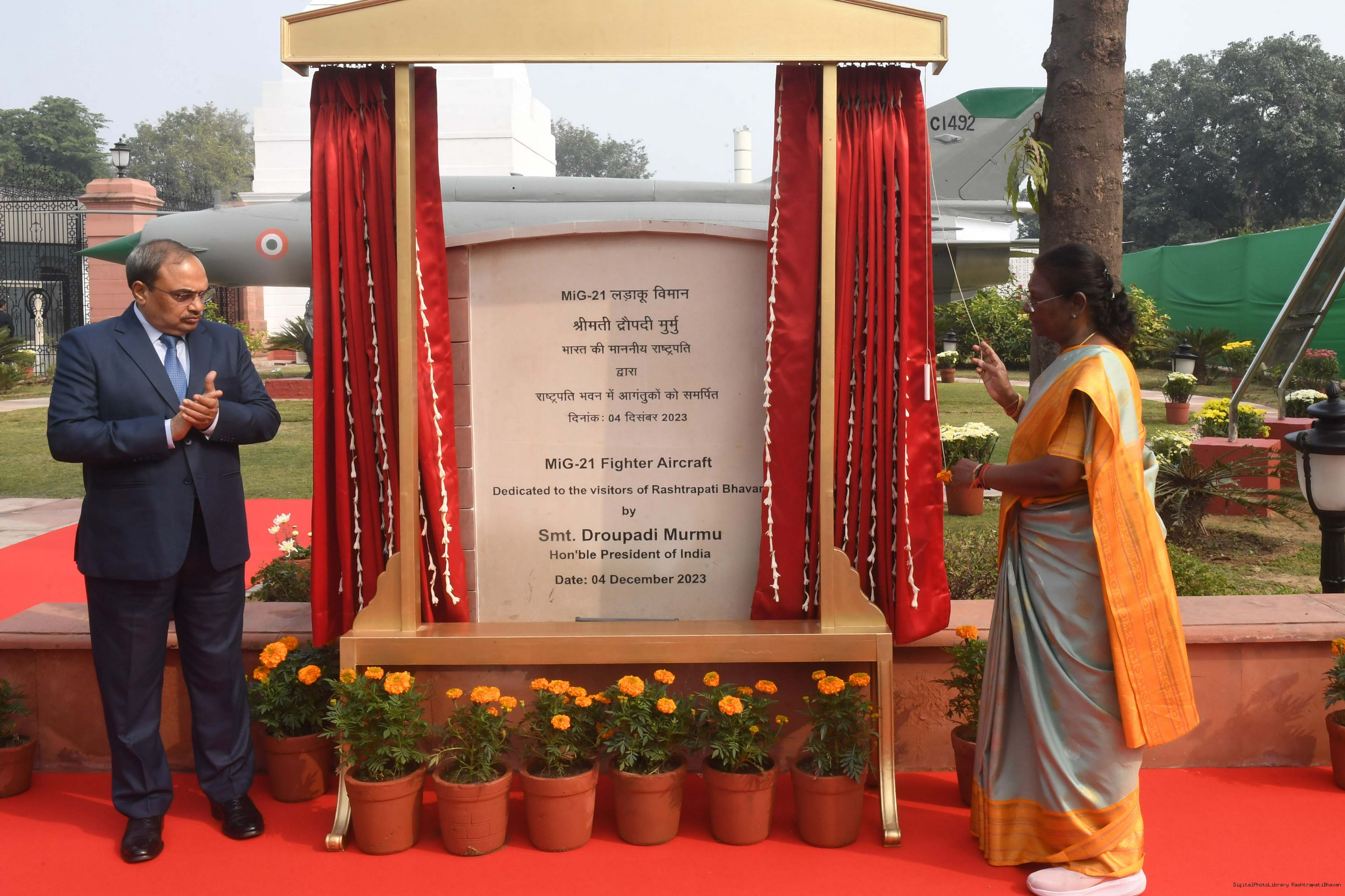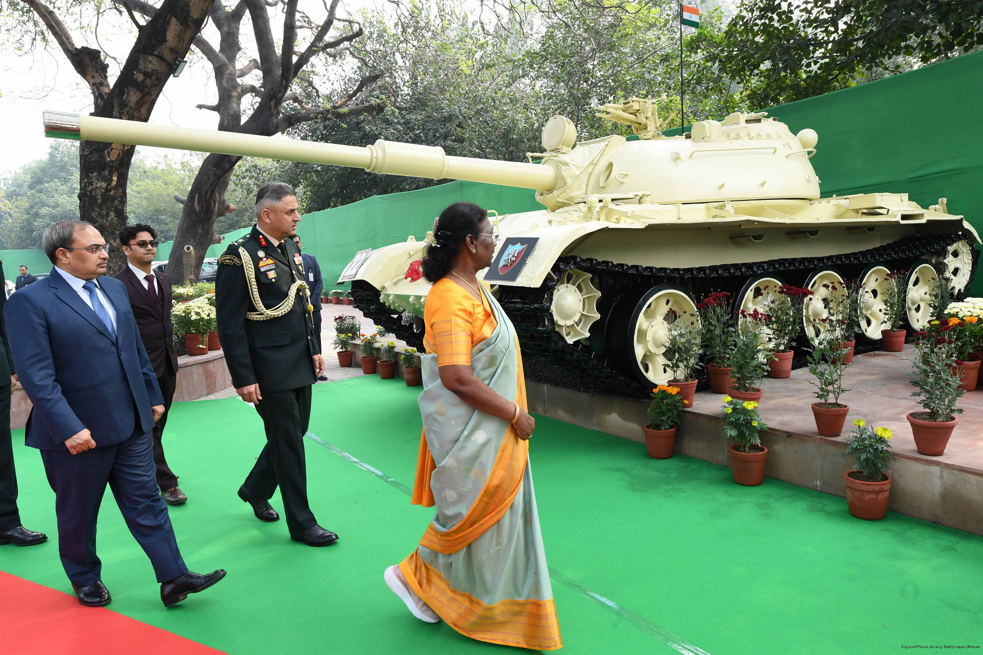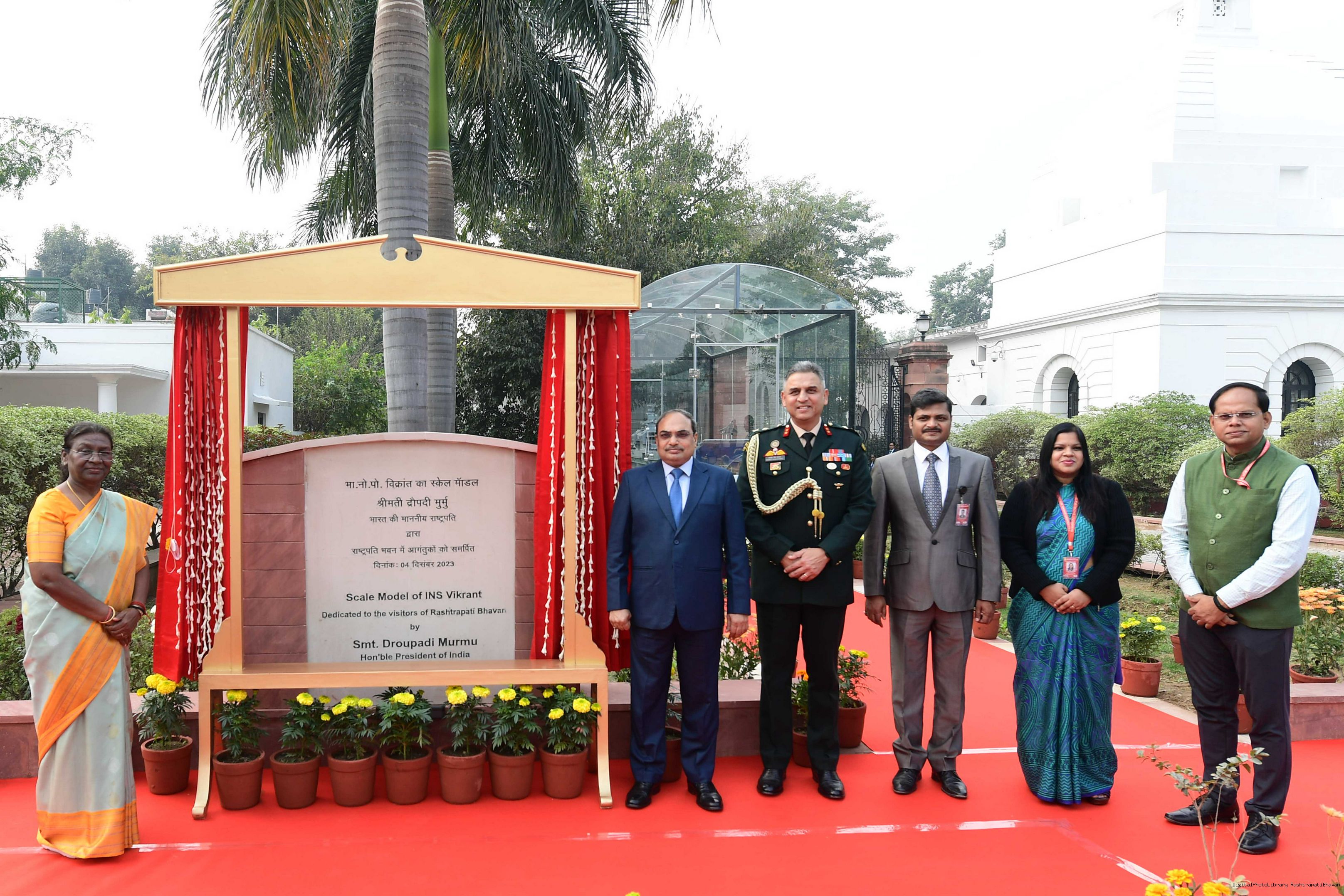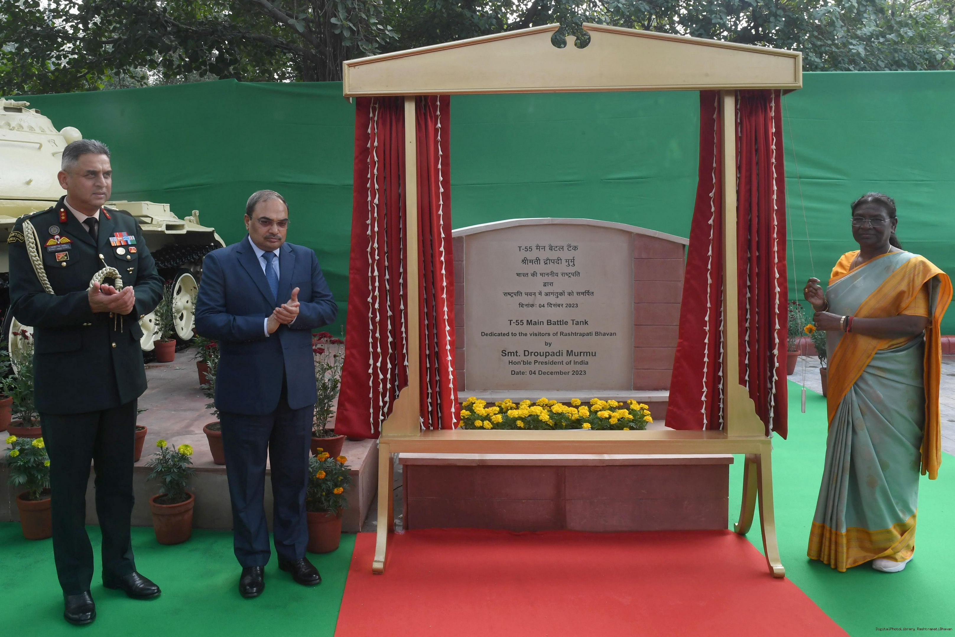| Caption: | The President of India Smt. Droupadi Murmu Inaugurating three Military platforms the lantana elephants at Rastrapati Bhawan on December 4,2023 |