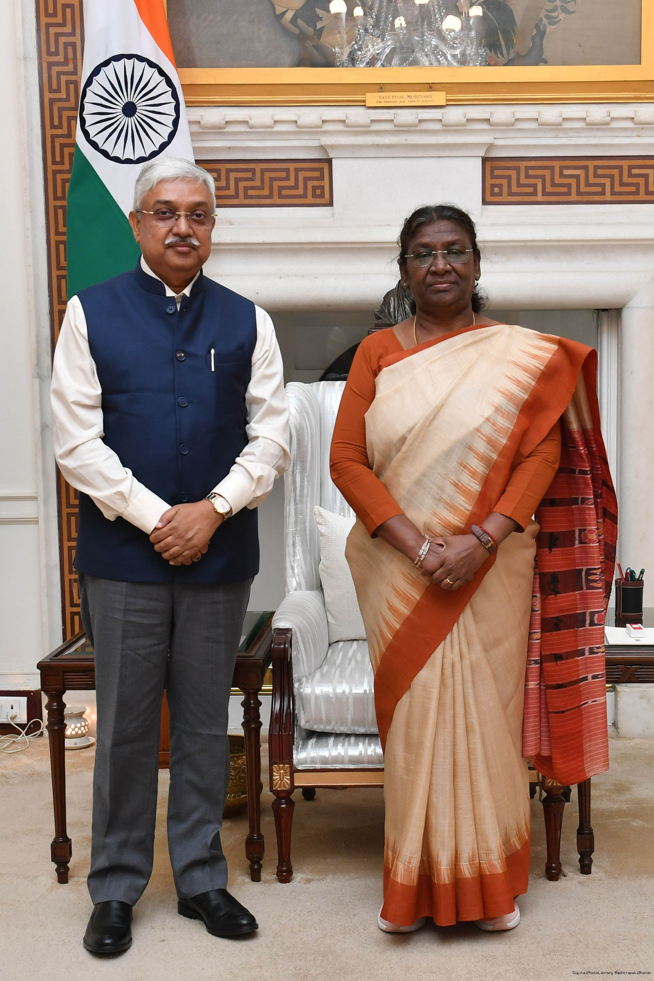| Caption: | Shri Rajiv Ranjan, Advocate General, Jharkhand meeting with the President of India, Smt. Droupadi Murmu at Rashtrapati Bhavan on June 23, 2023. |