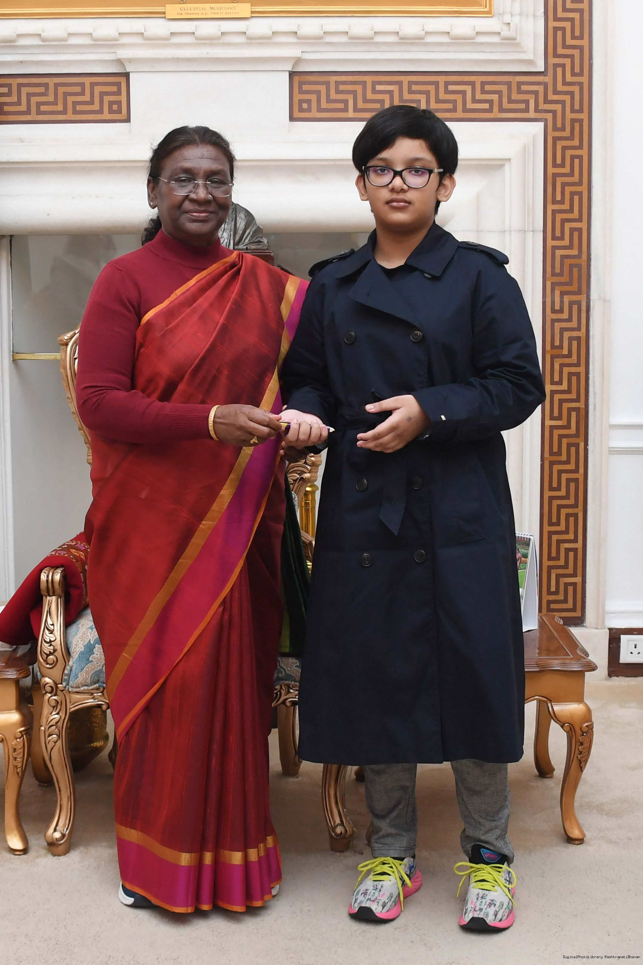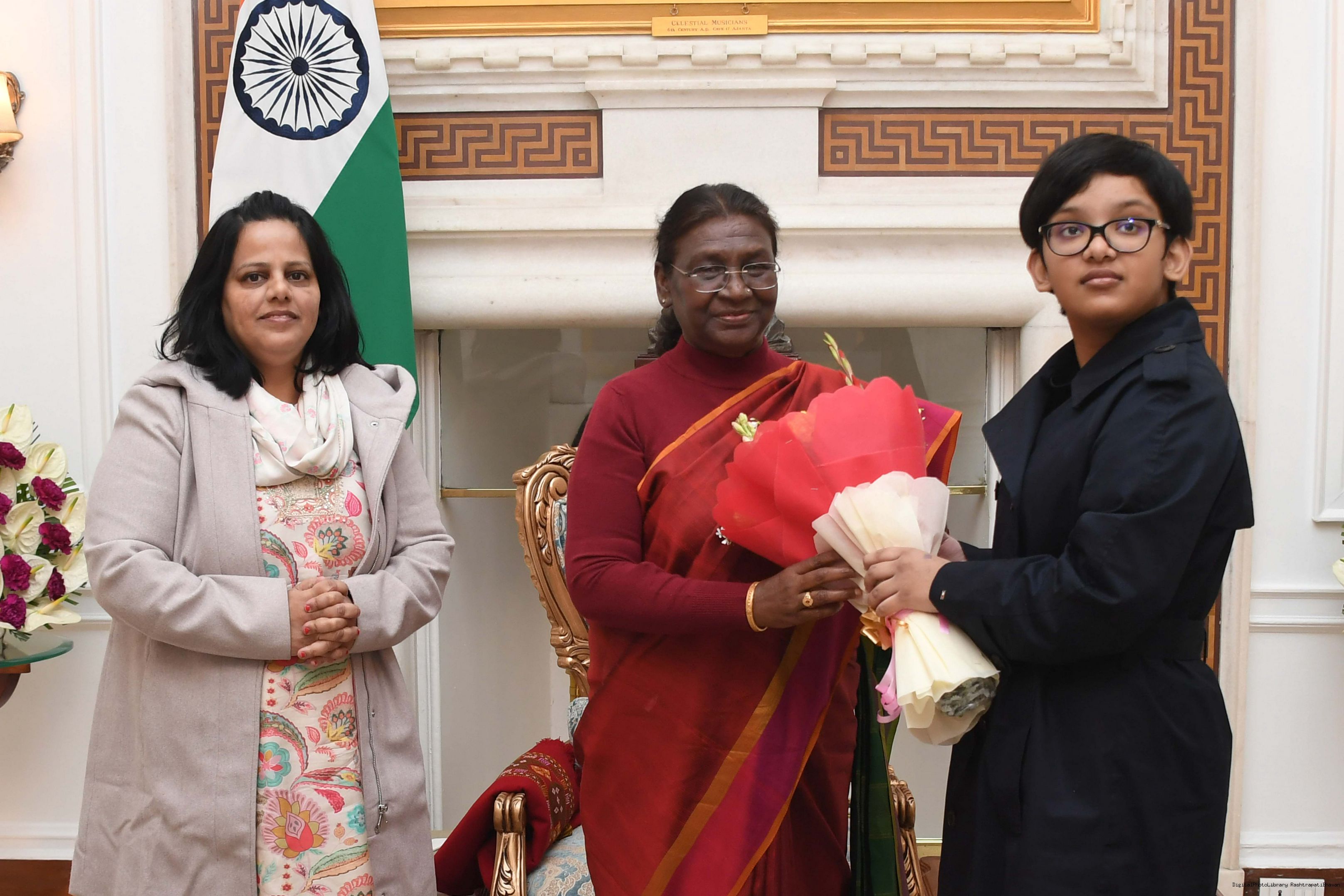 | Caption: | Ms. Ravyanshi Singh along with other meeting with the President of India, Smt. Droupadi Murmu, at Rashtrapati Bhavan on Jan 03, 2024. |
