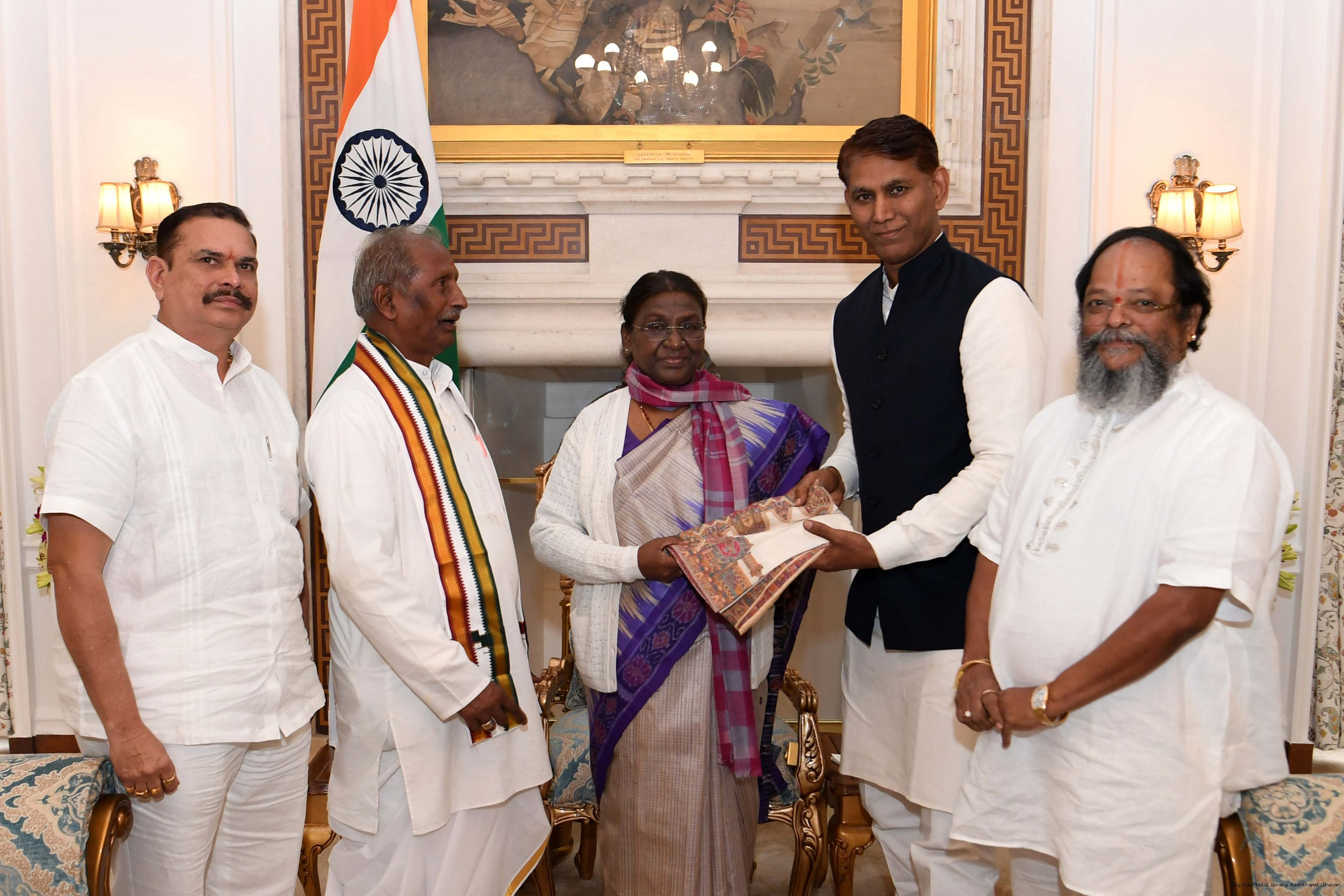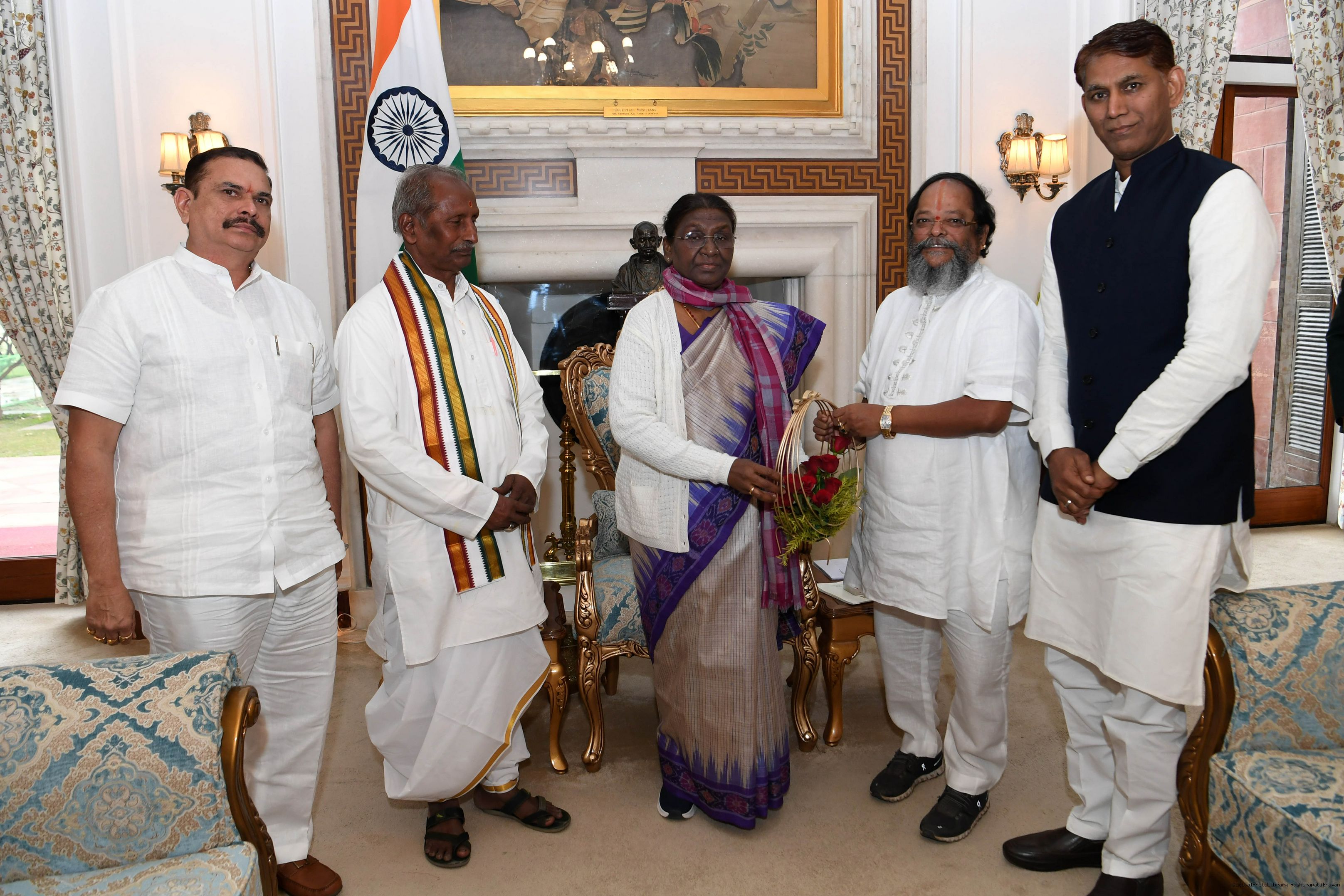 | Caption: | Shri Y. Raghavulu along with others meeting with the President of India, Smt. Droupadi Murmu, at Rashtrapati Bhavan on Jan 04, 2024. |