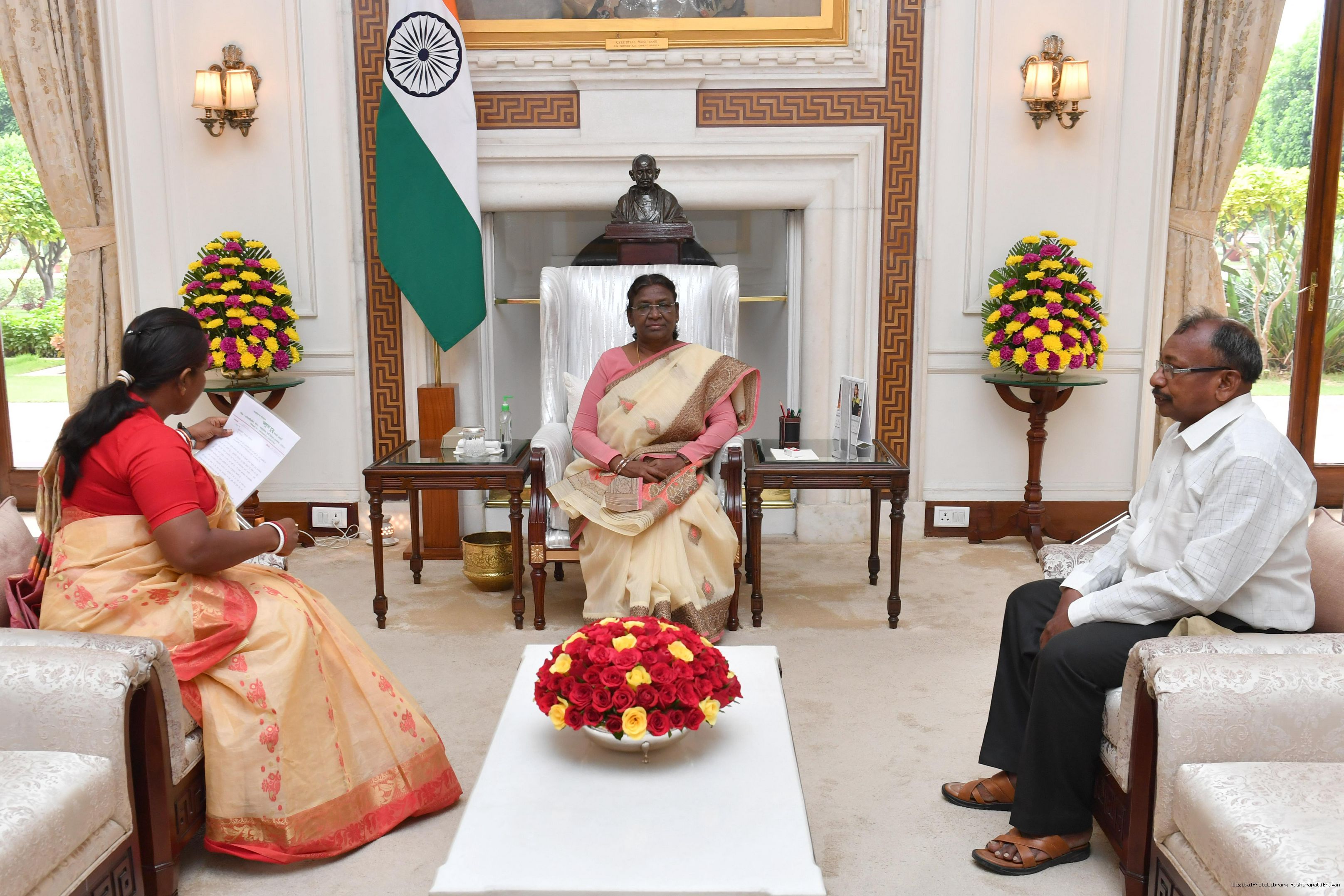 | Caption: | Smt. Jamuna Tudu, Padma Shri Awardee along with other meeting with the President of India Smt. Droupadi Murmu at Rashtrapati Bhavan on June 23, 2023. |