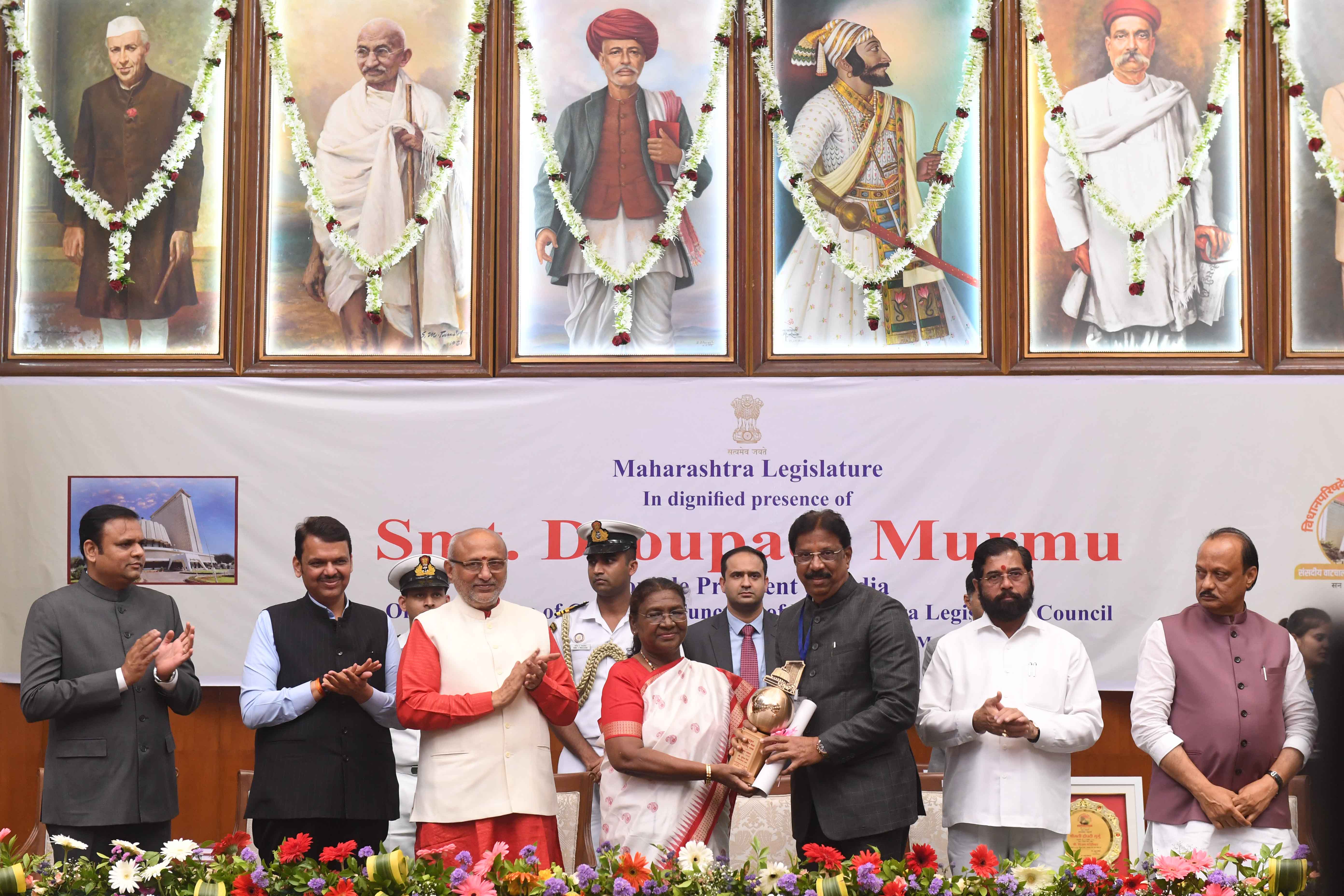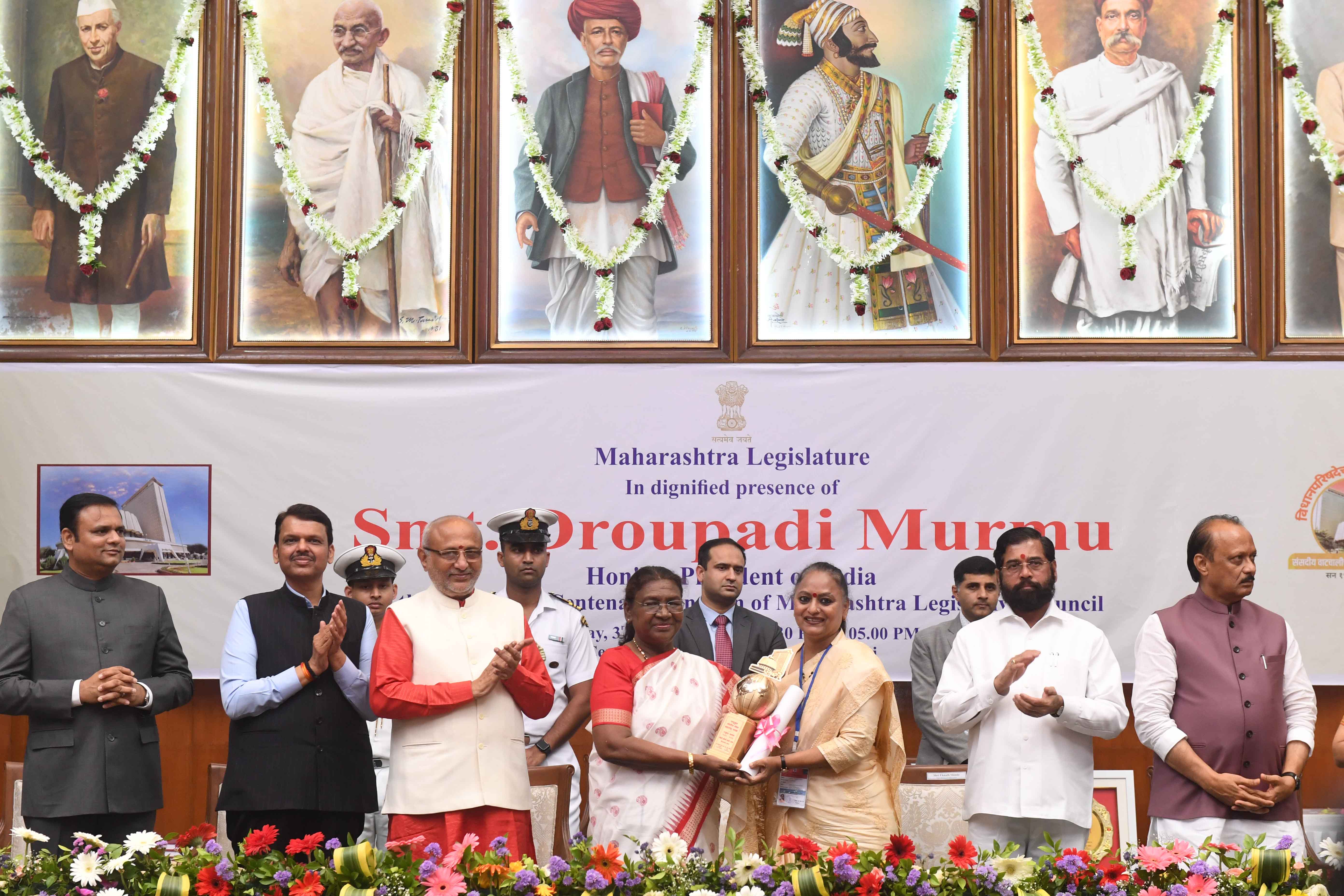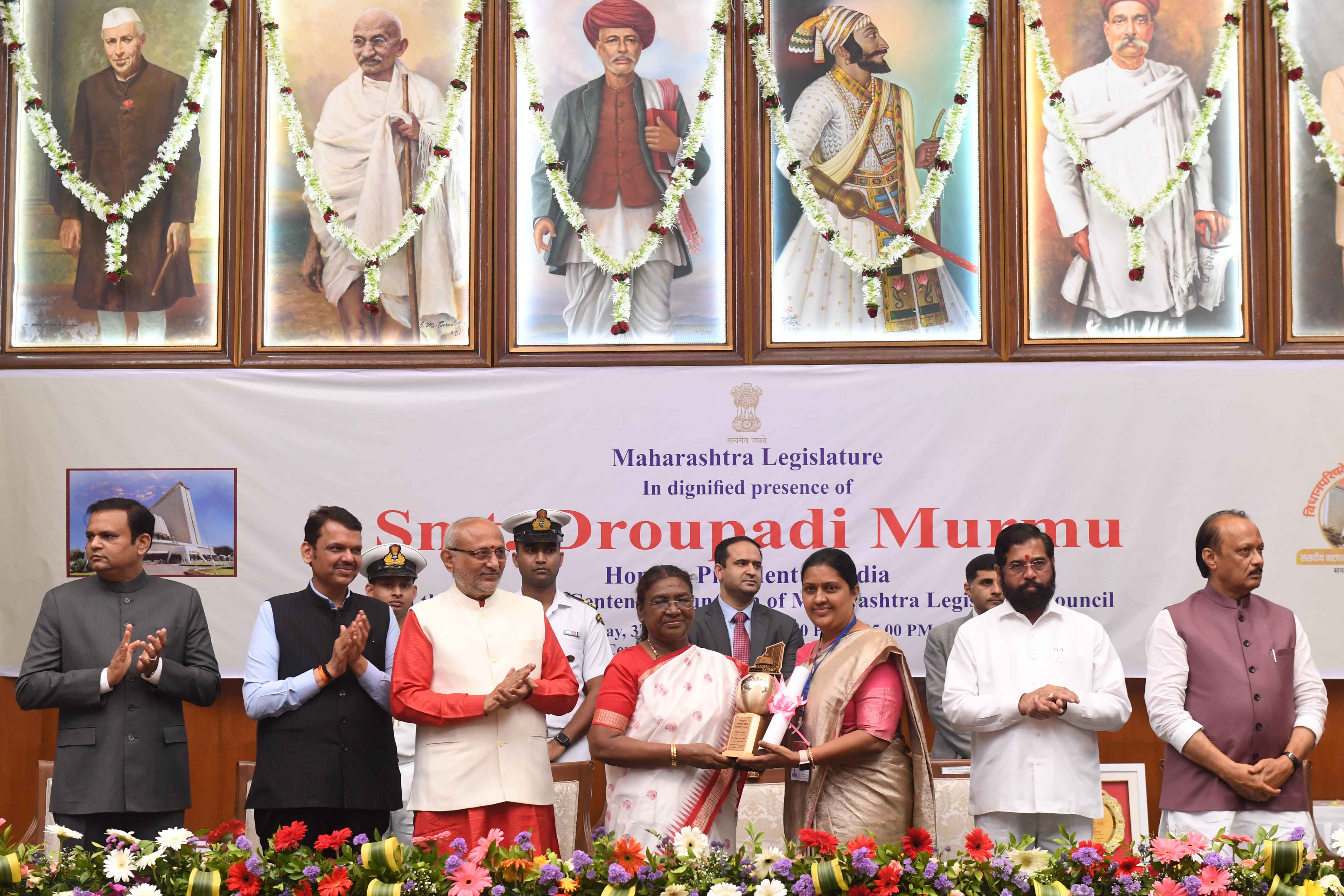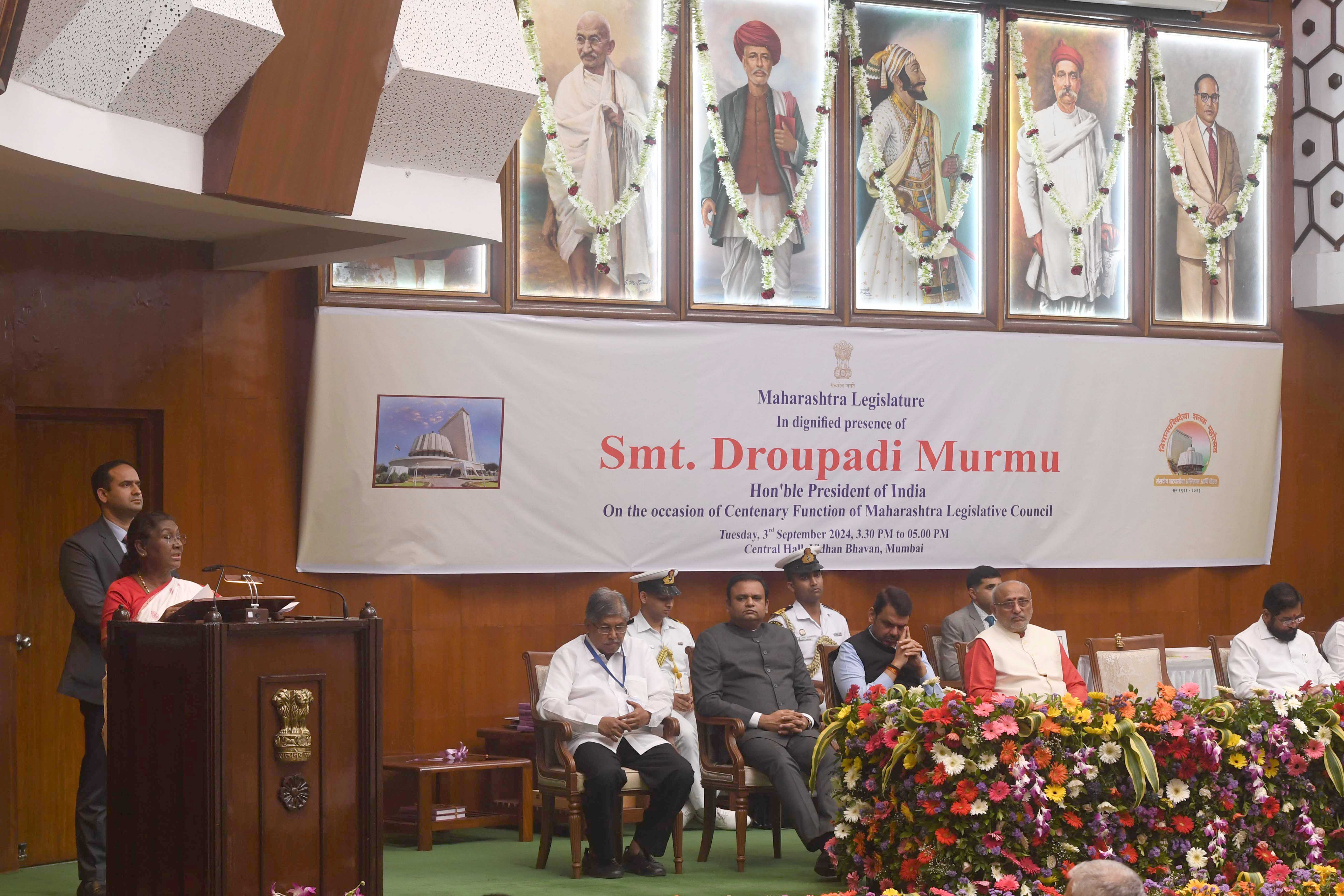 | Caption: | The President of India, Smt. Droupadi Murmu graced the centenary year function of the Maharashtra Legislative Council in Mumbai on September 3, 2024. |