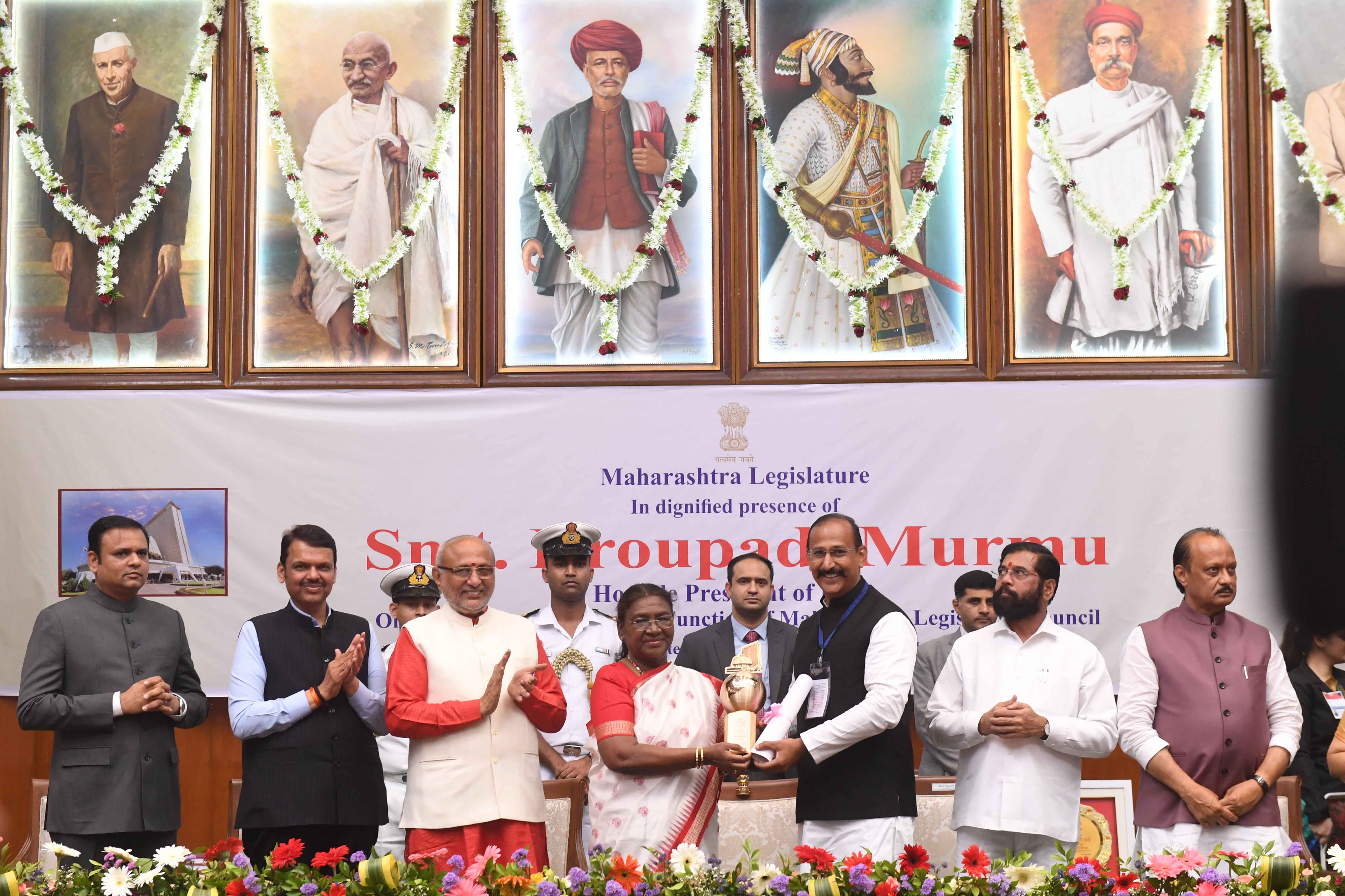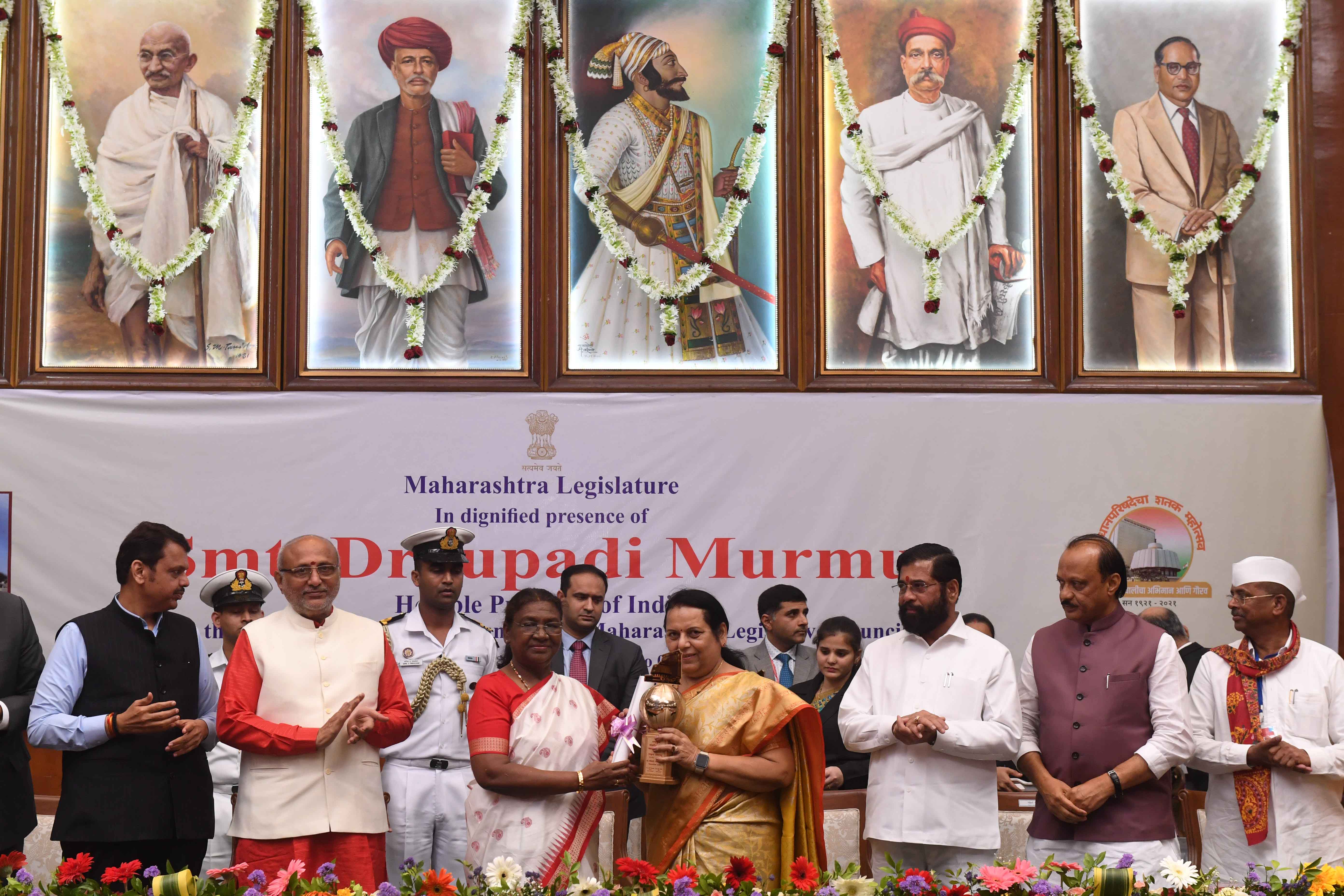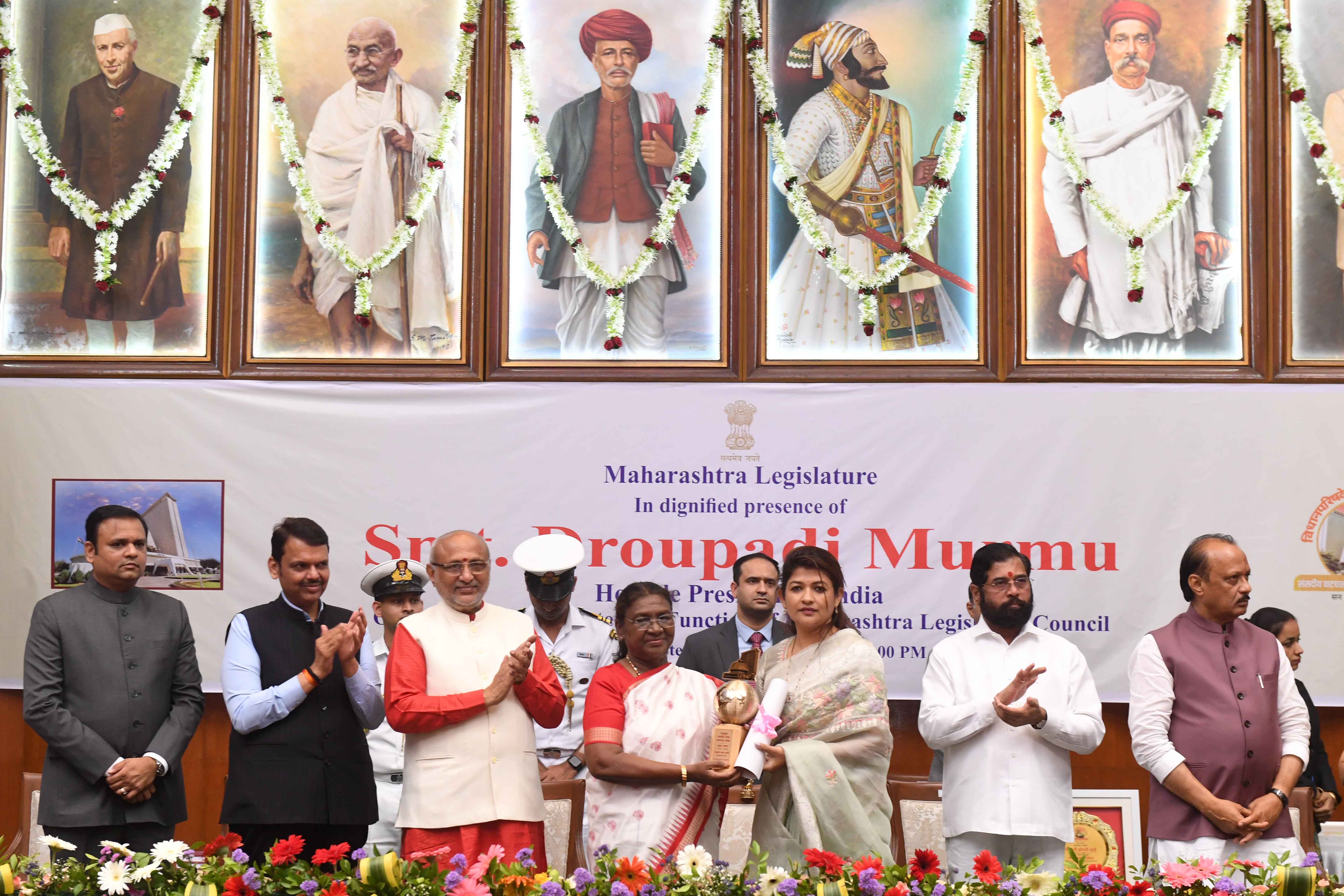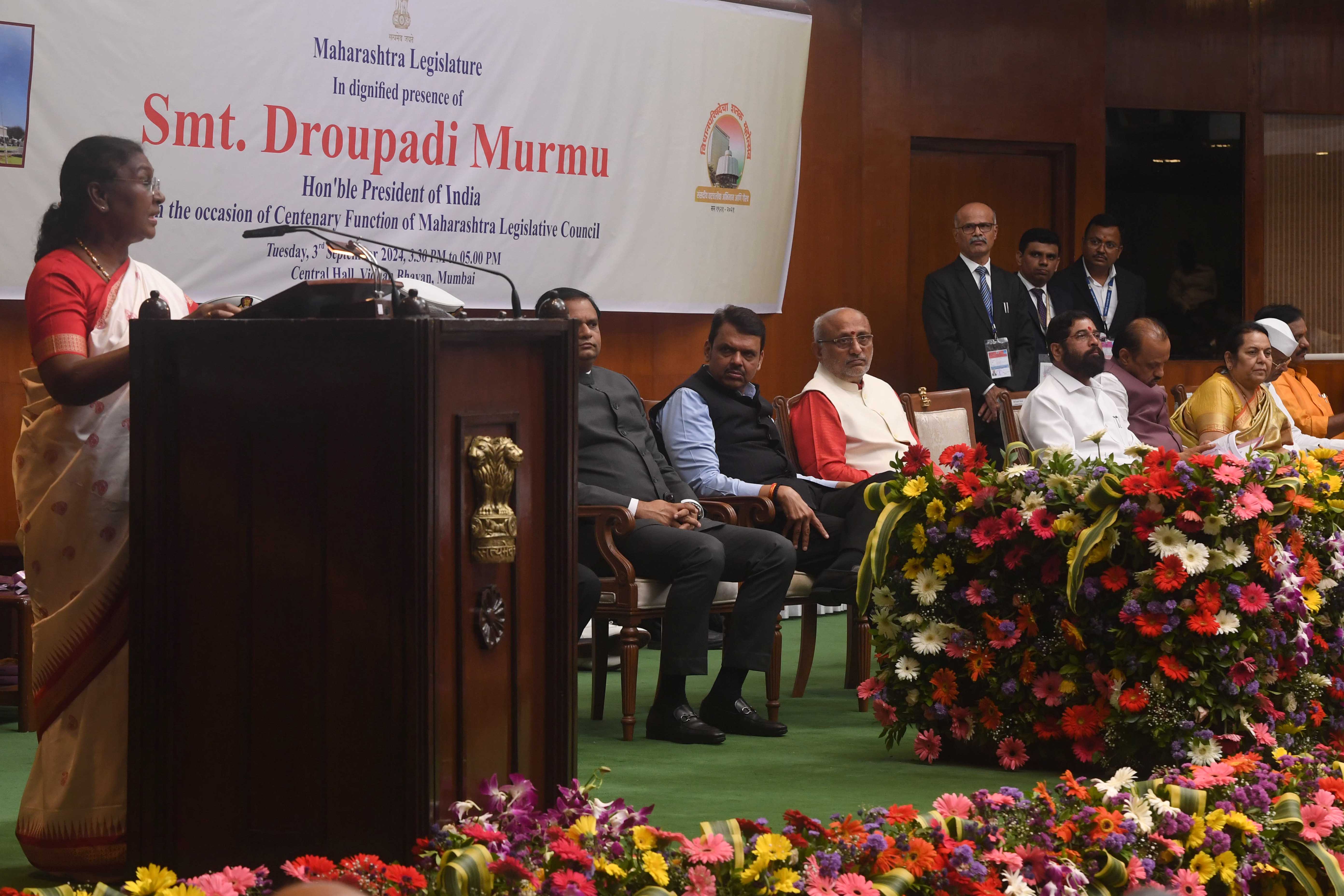 | Caption: | The President of India, Smt. Droupadi Murmu graced the centenary year function of the Maharashtra Legislative Council in Mumbai on September 3, 2024. |