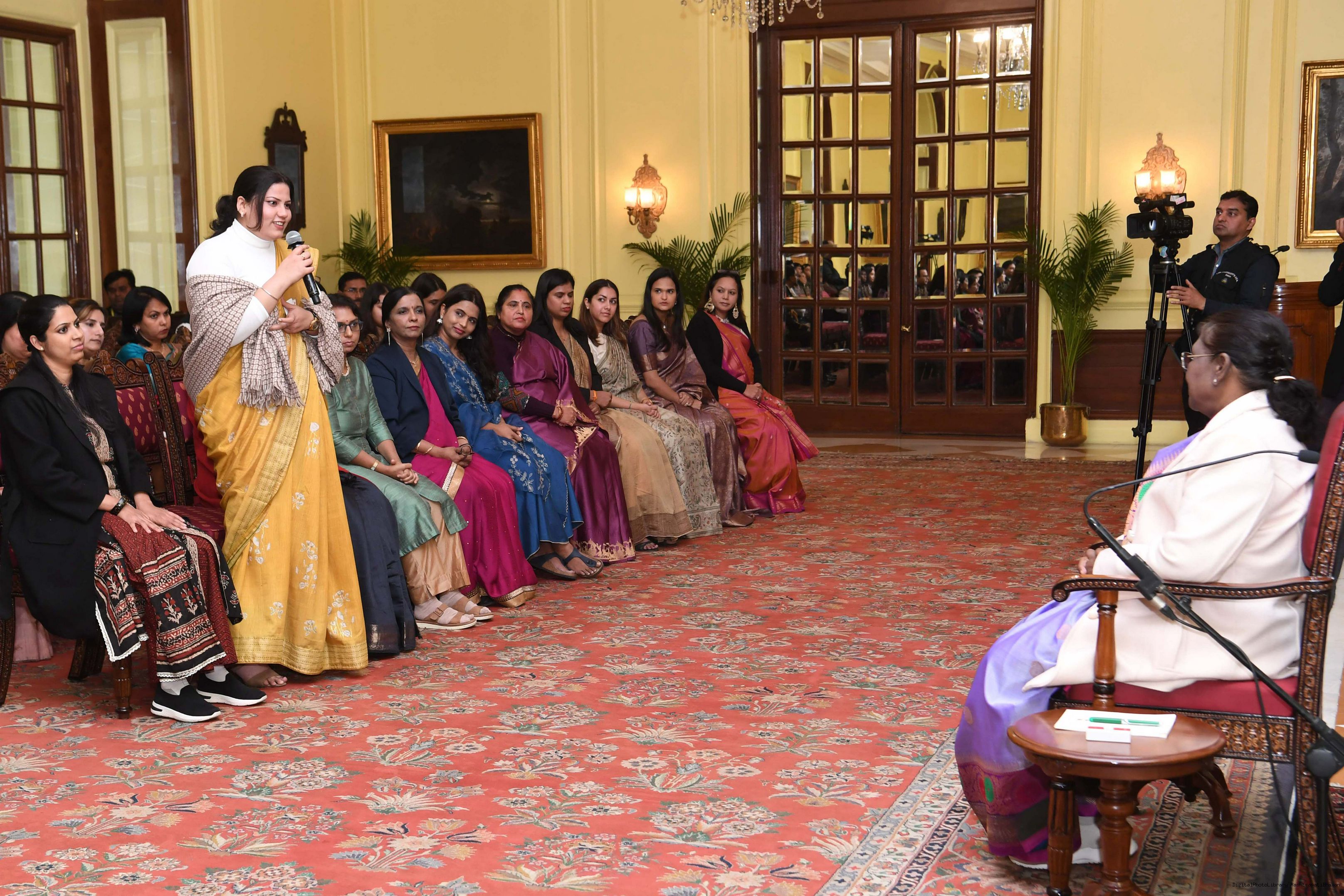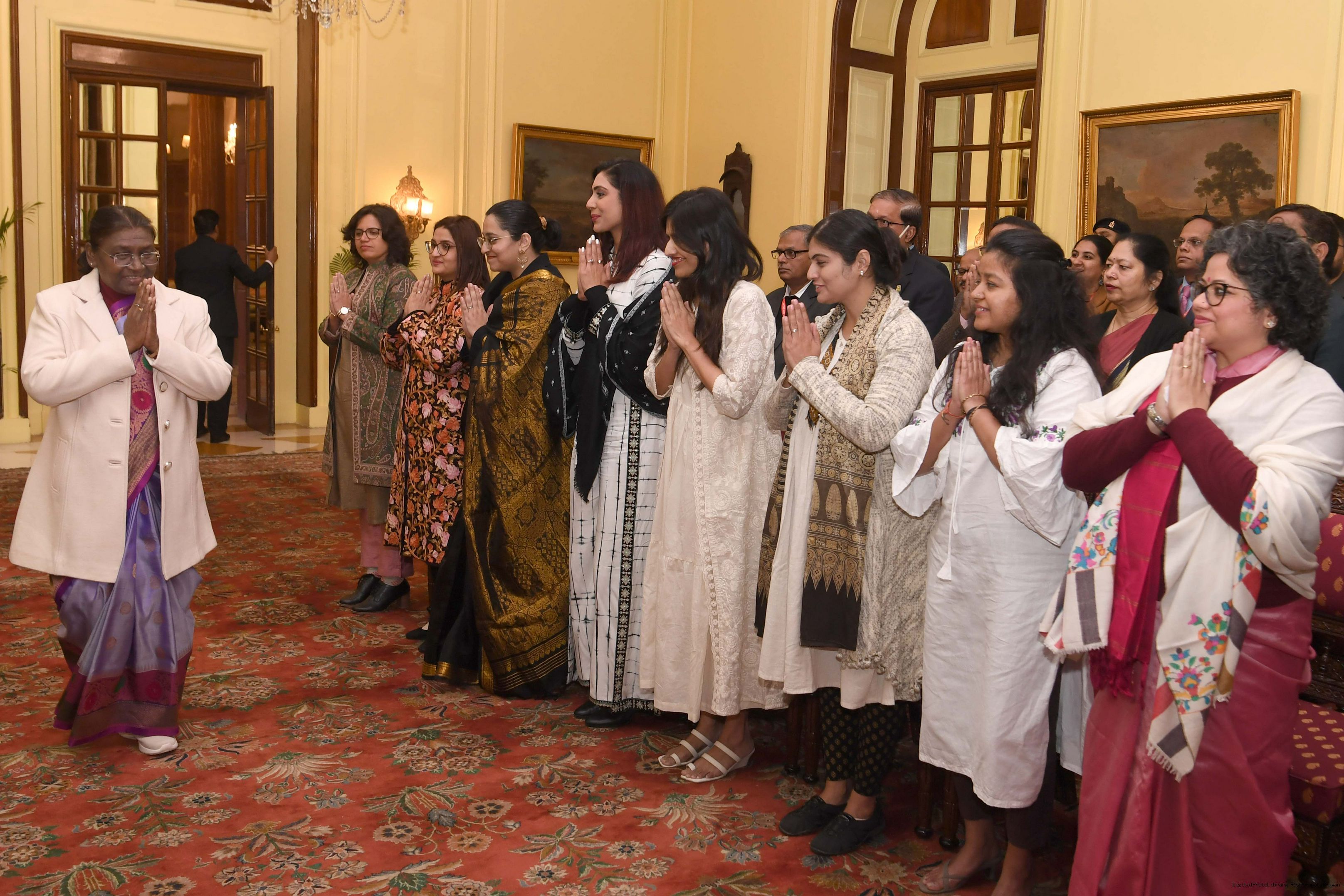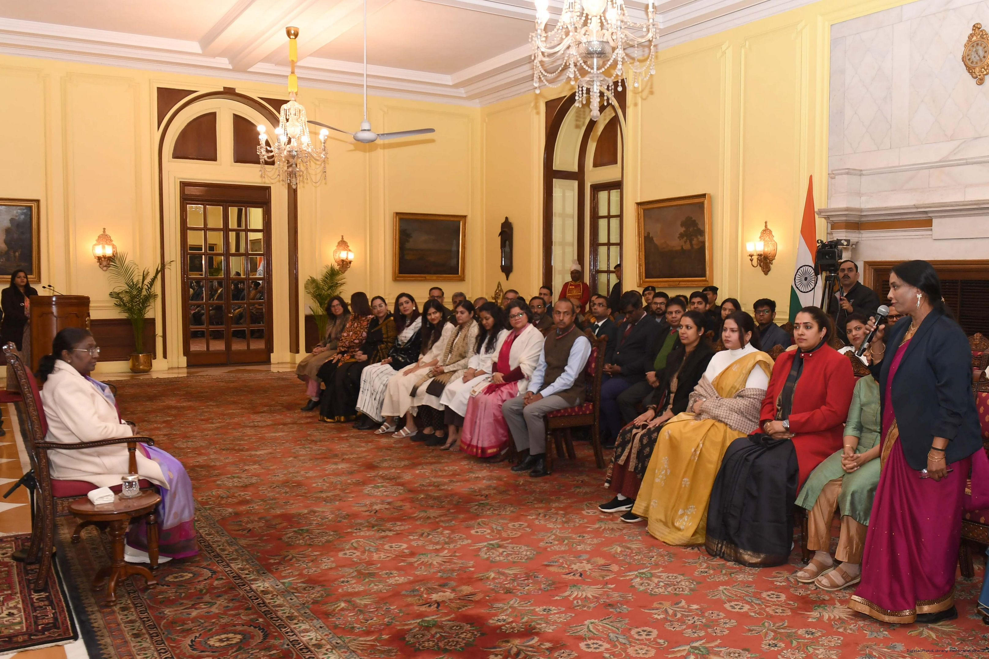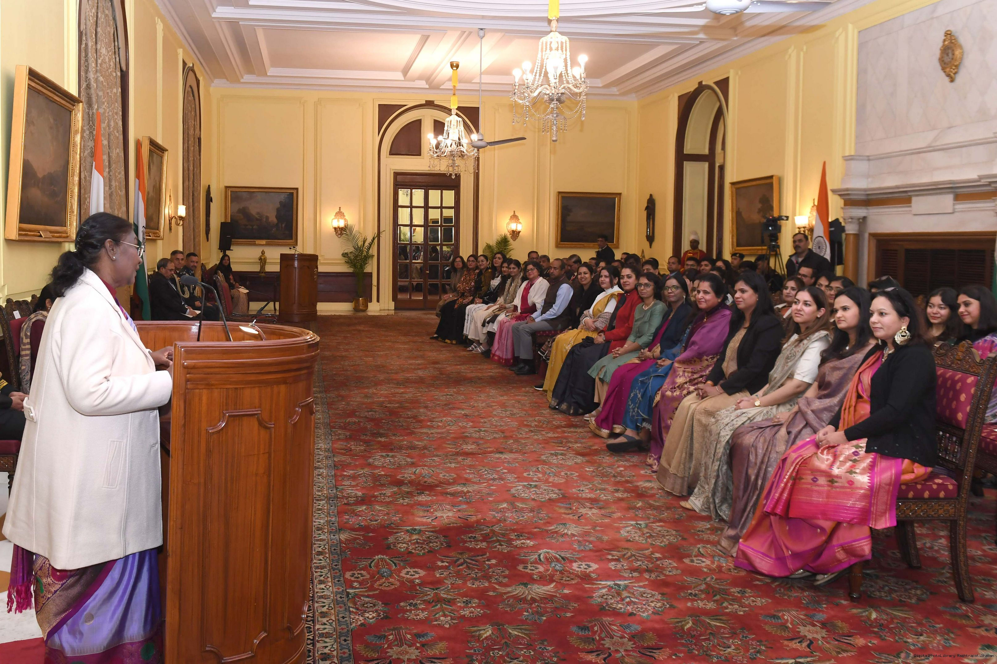 | Caption: | The President of India Smt. Droupadi Murmu interacted with a group of women who are founders and co-founders of leading start-ups and unicorns at Rashtrapati Bhavan on January 18, 2024. |