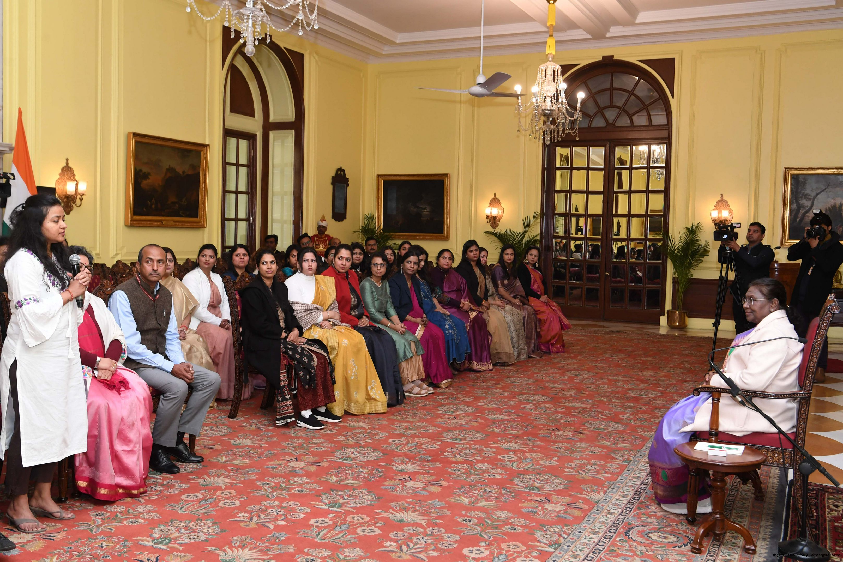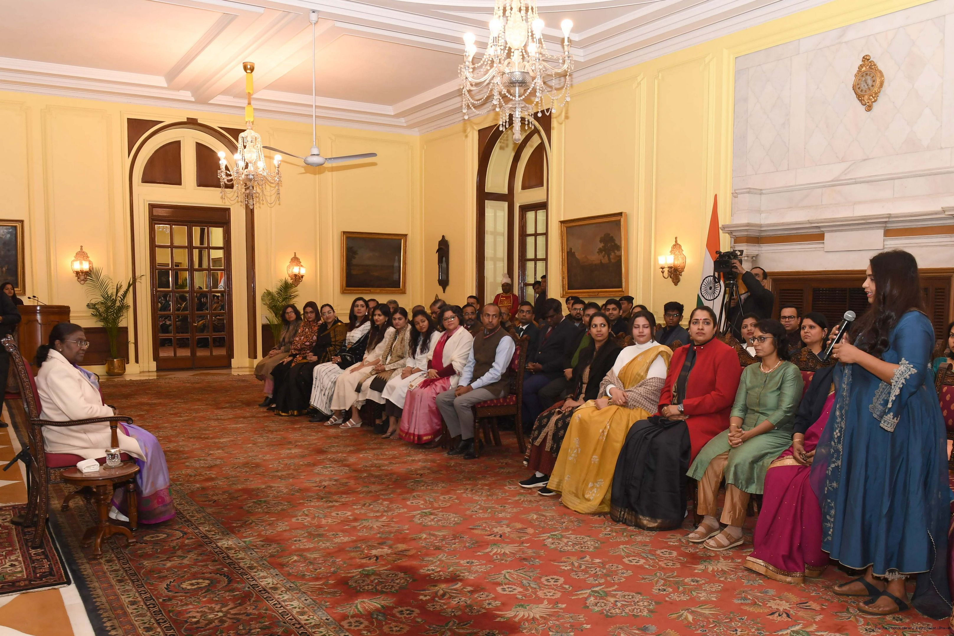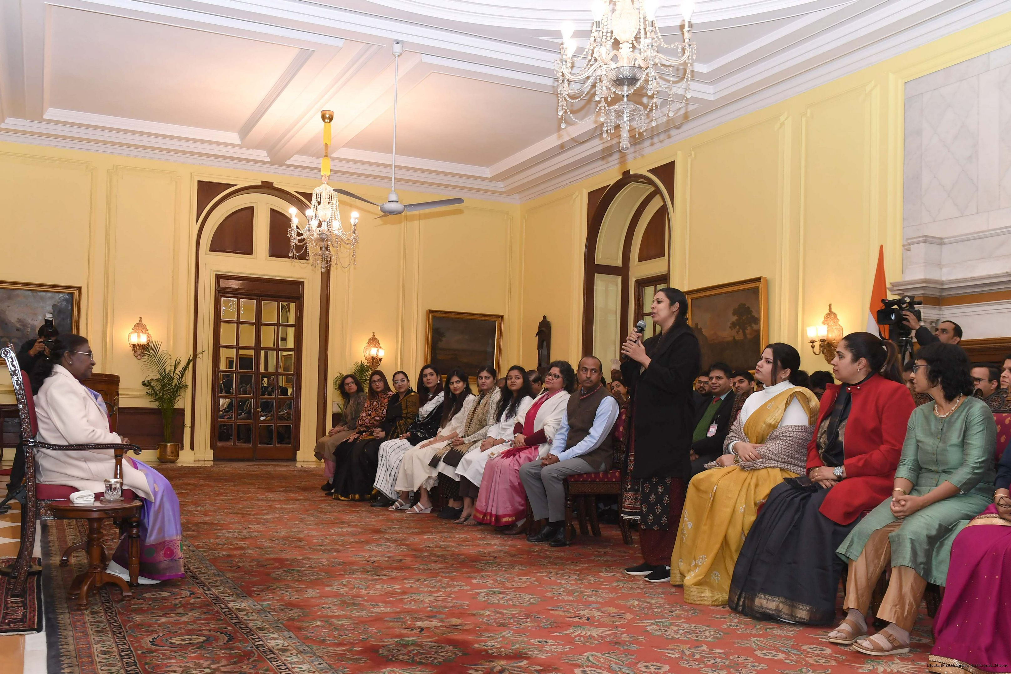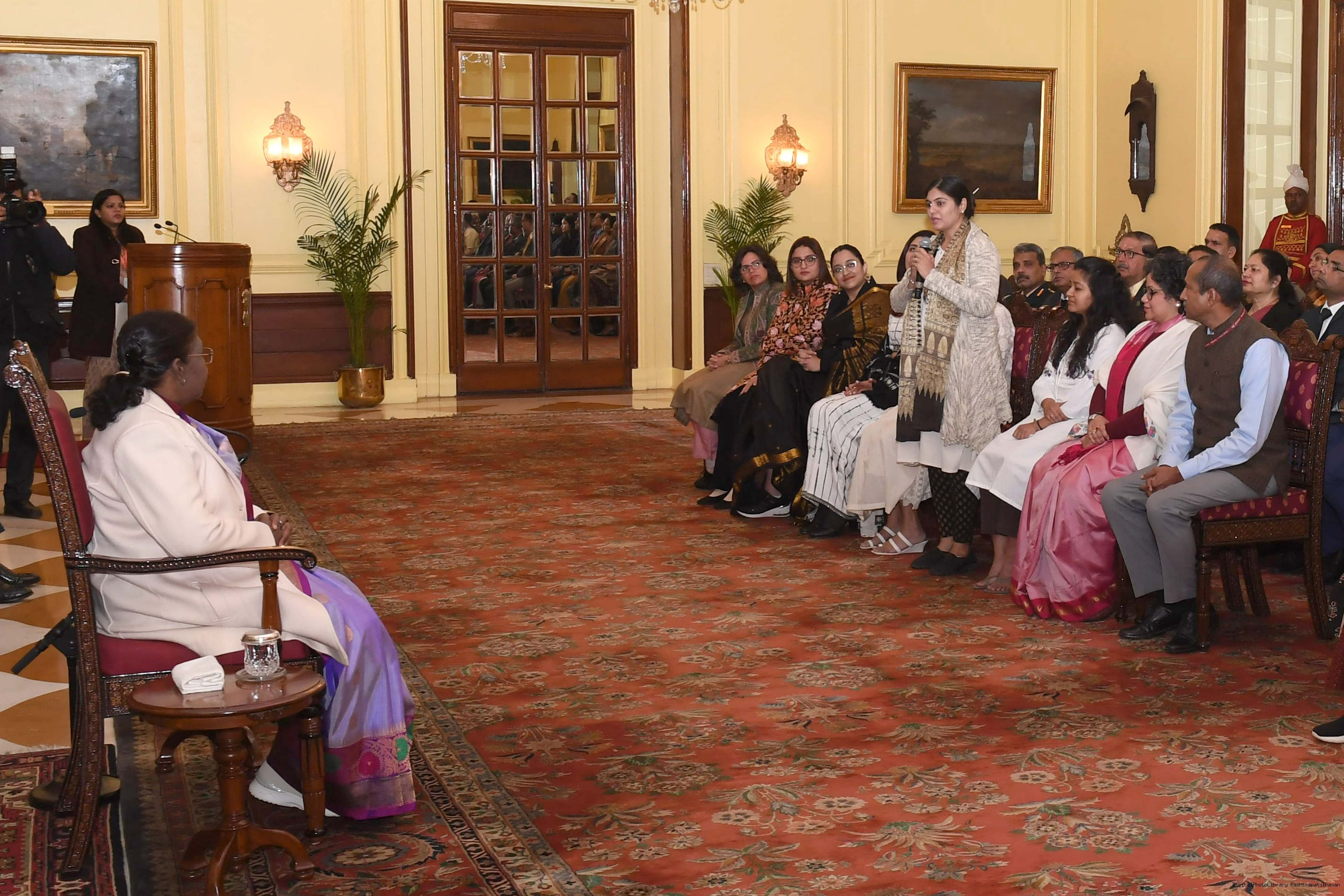 | Caption: | The President of India Smt. Droupadi Murmu interacted with a group of women who are founders and co-founders of leading start-ups and unicorns at Rashtrapati Bhavan on January 18, 2024. |