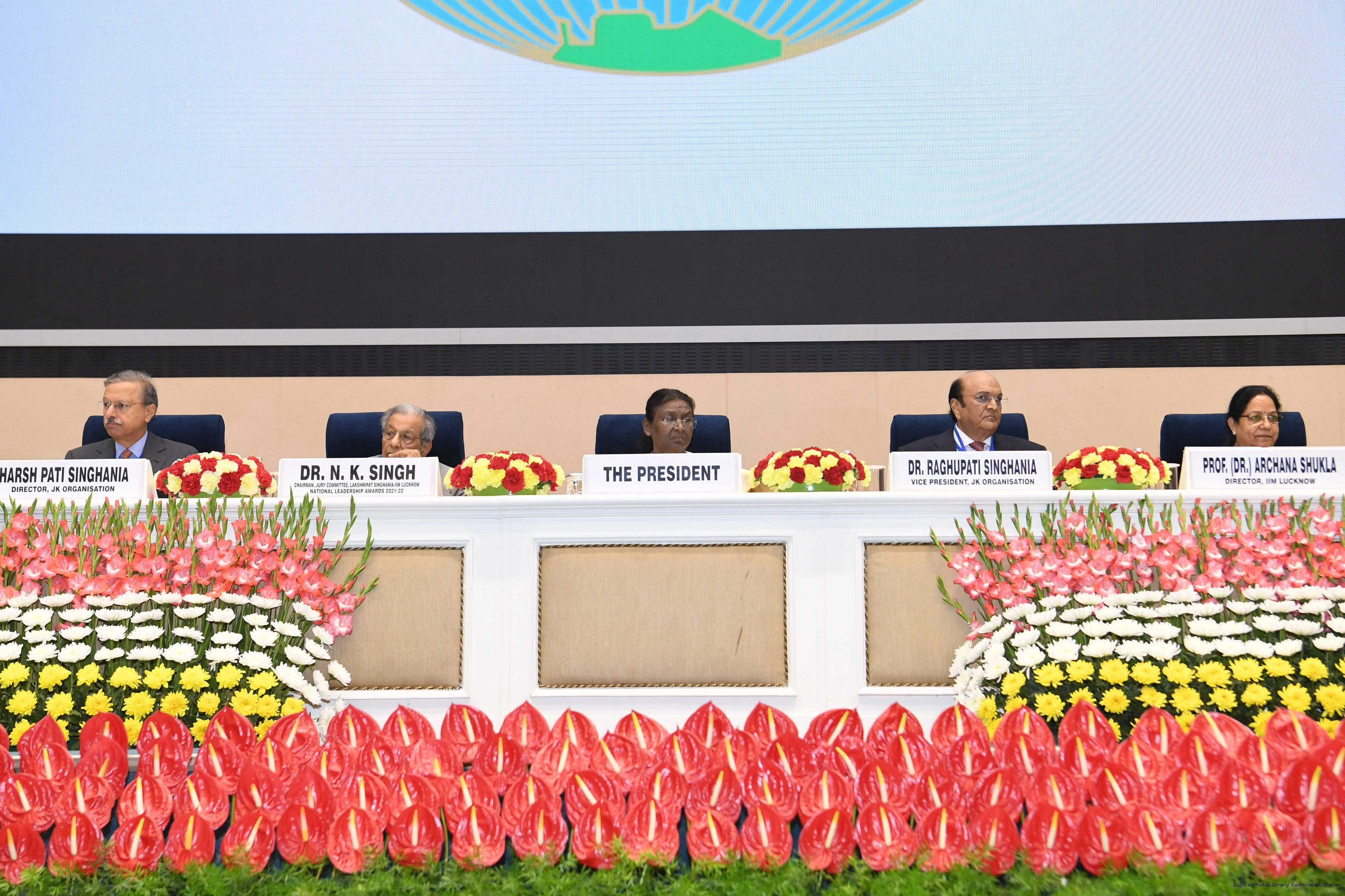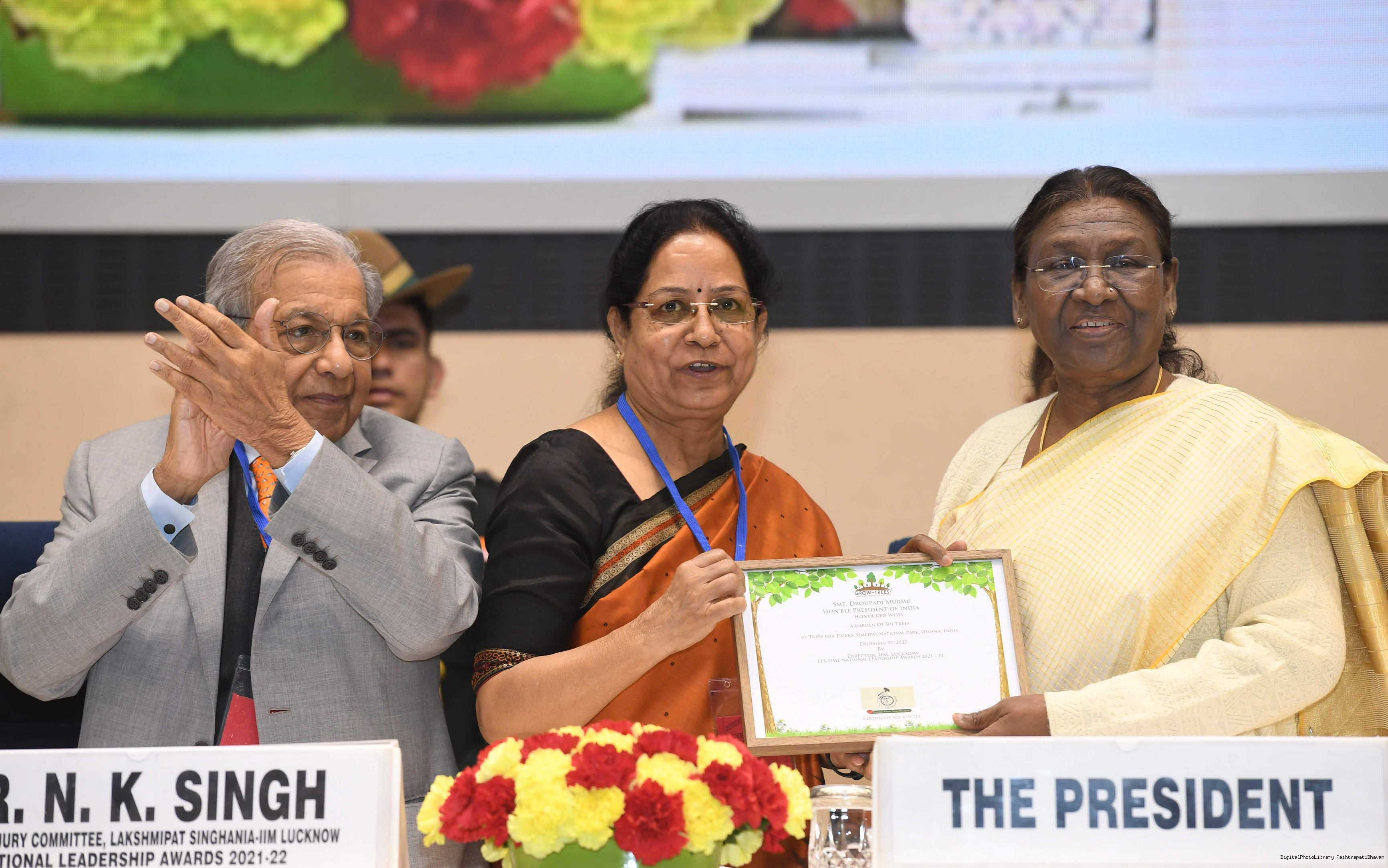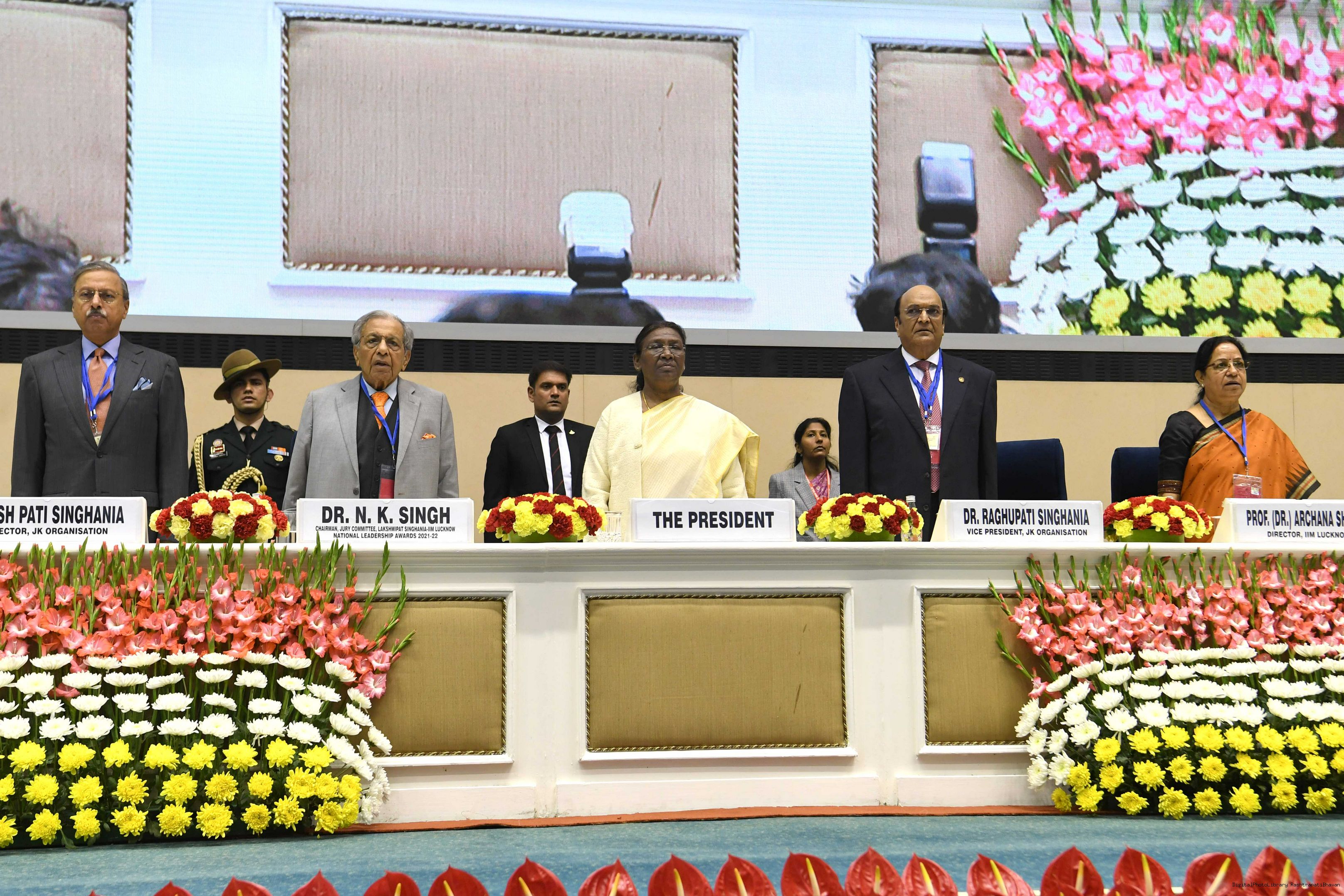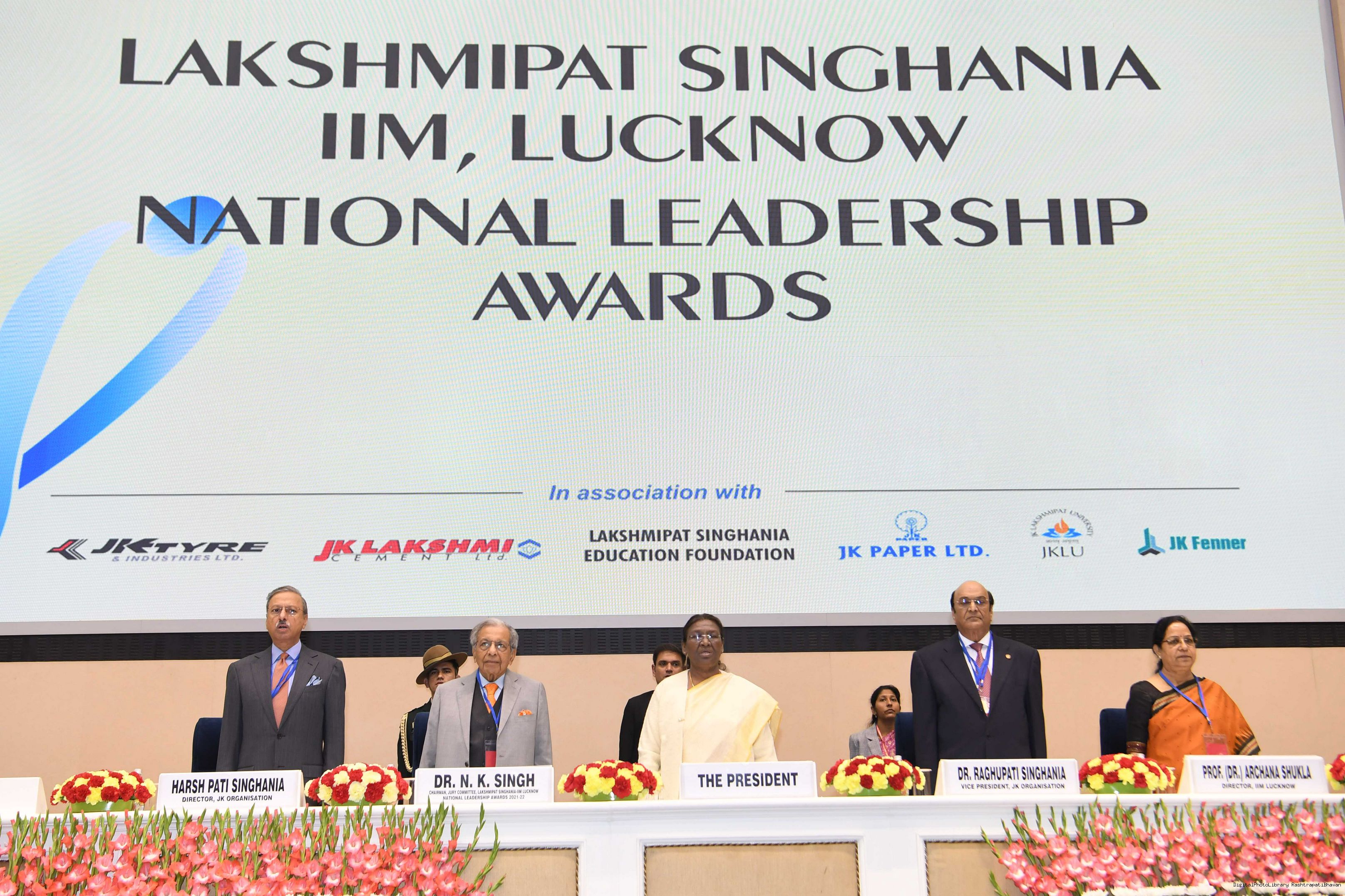 | Caption: | The President of India, Smt Droupadi Murmu presented the Lakshmipat Singhania – IIM Lucknow National Leadership Awards in New Delhi on December 7, 2023. |