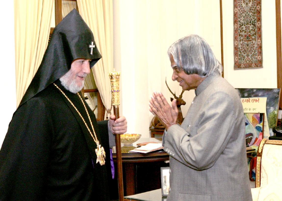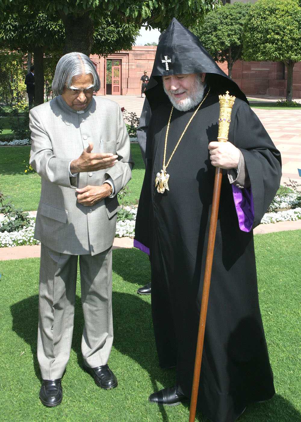 | Caption: | The Supreme Patriarch and Catholicos of All Armenians HH Karekin-II calling on the President of India, Dr A P J Abdul Kalam at the Morning Room of Rashtrapati Bhavan in New Delhi on March 04, 2007 |