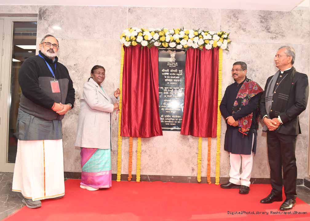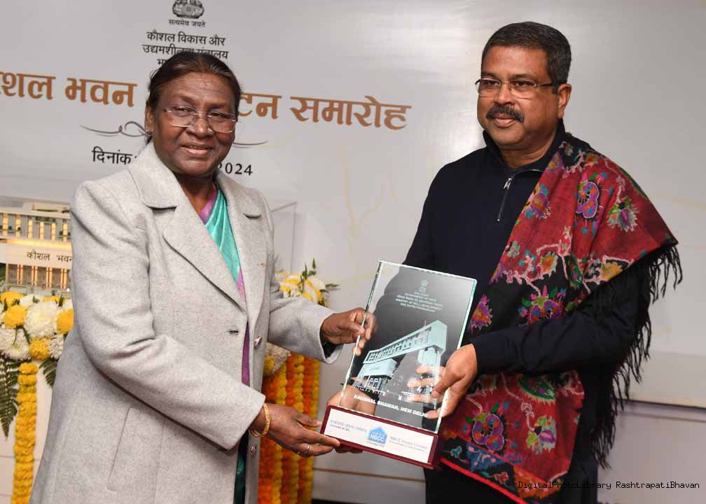| Caption: | The President of India, Smt Droupadi Murmu inaugurated Kaushal Bhawan – a new building of the Ministry of Skill Development and Entrepreneurship in New Delhi on January 24, 2024. |