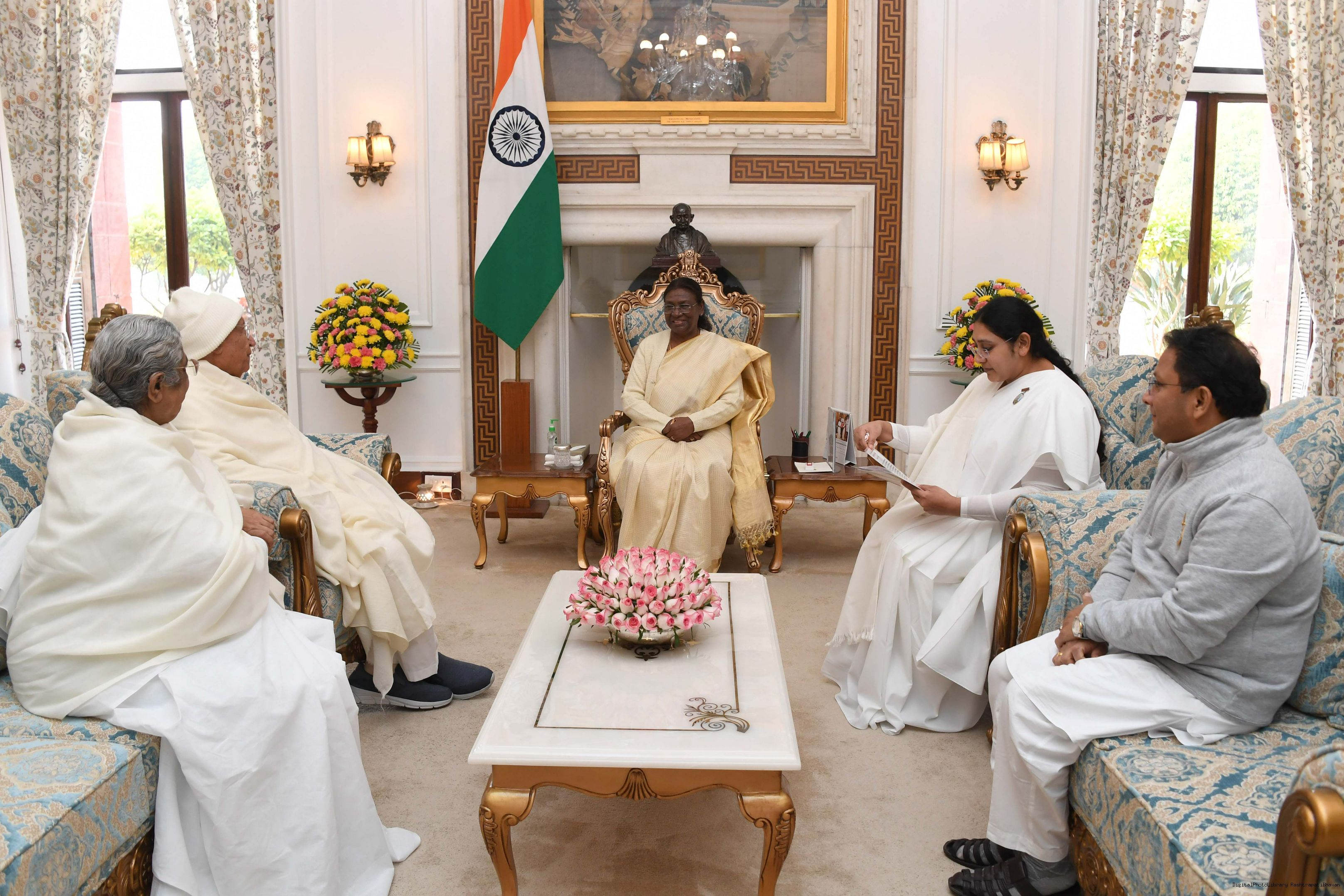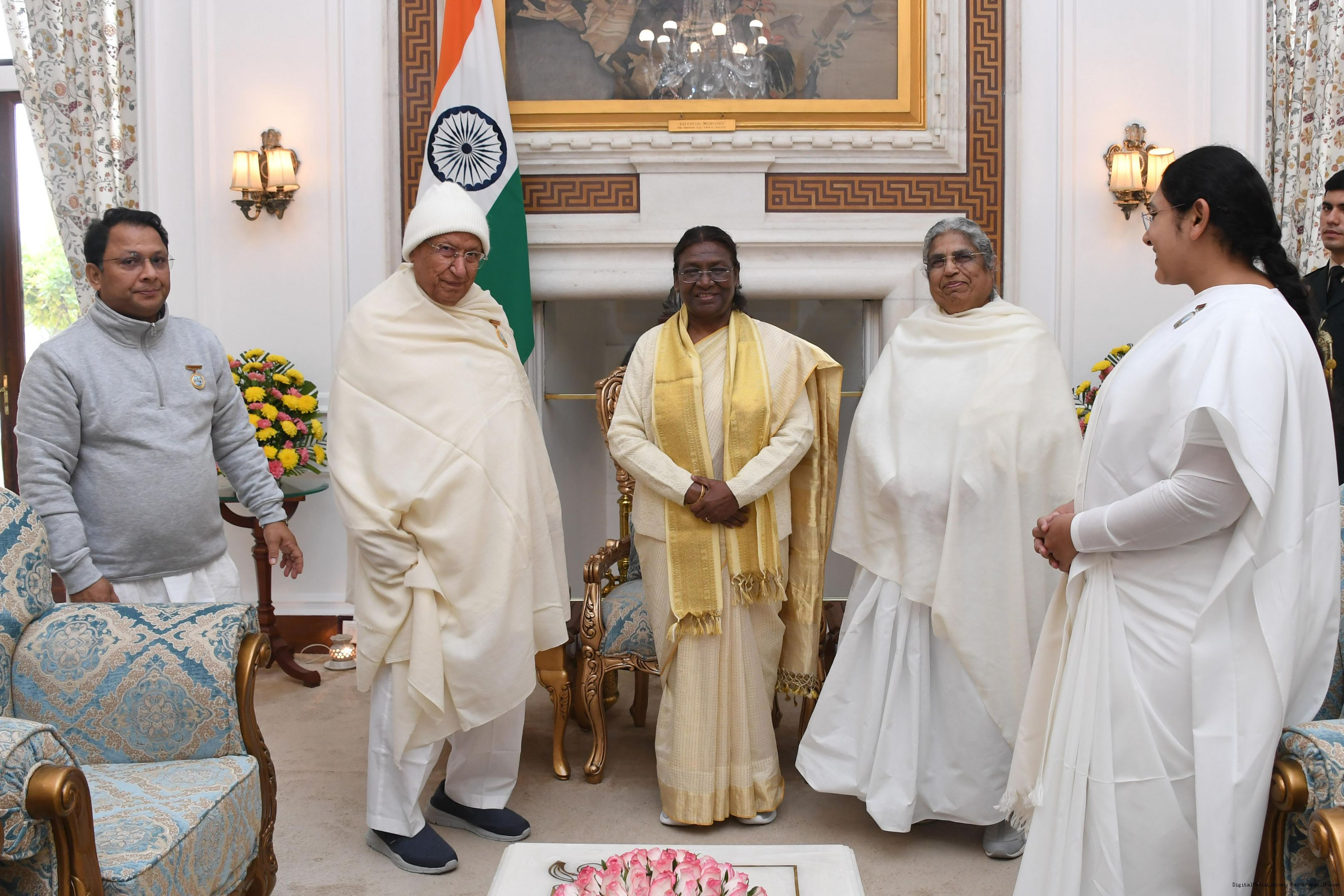 | Caption: | BK Brij Mohan Bhai, Additional Secretary General of Brahma Kumaris along with others meeting with the President of India, Smt. Droupadi Murmu at Rashtrapati Bhavan on December 07, 2023 |