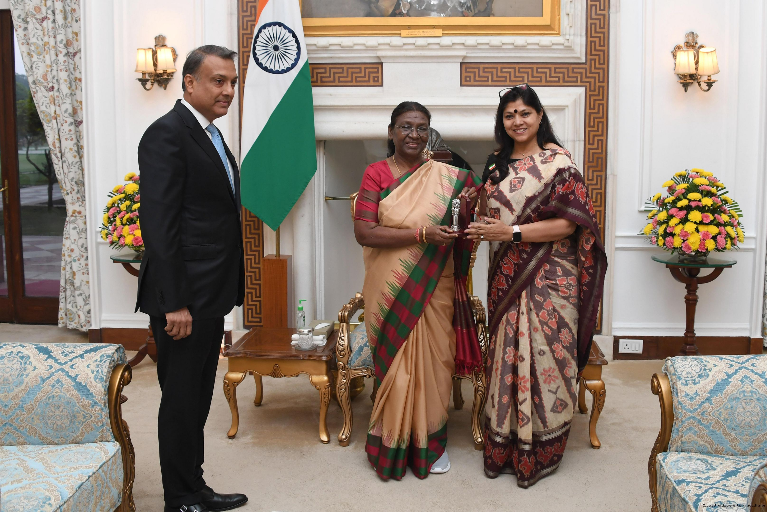 | Caption: | Shri Sumant Sinha, Founder, Chairman and CEO of ReNew along with others meeting with the President of India Smt. Droupadi Murmu at Rashtrapati Bhavan on December 7, 2023. |