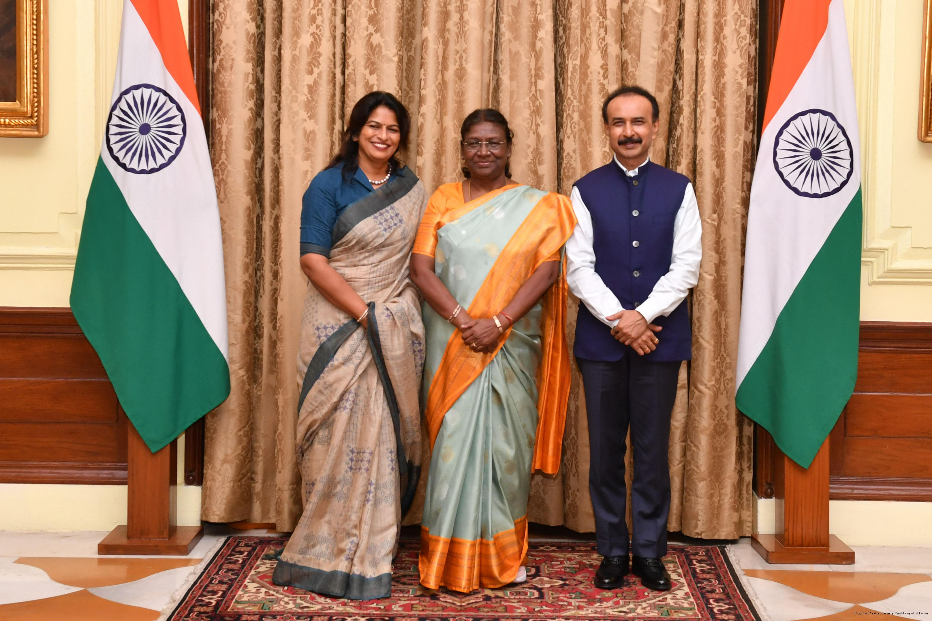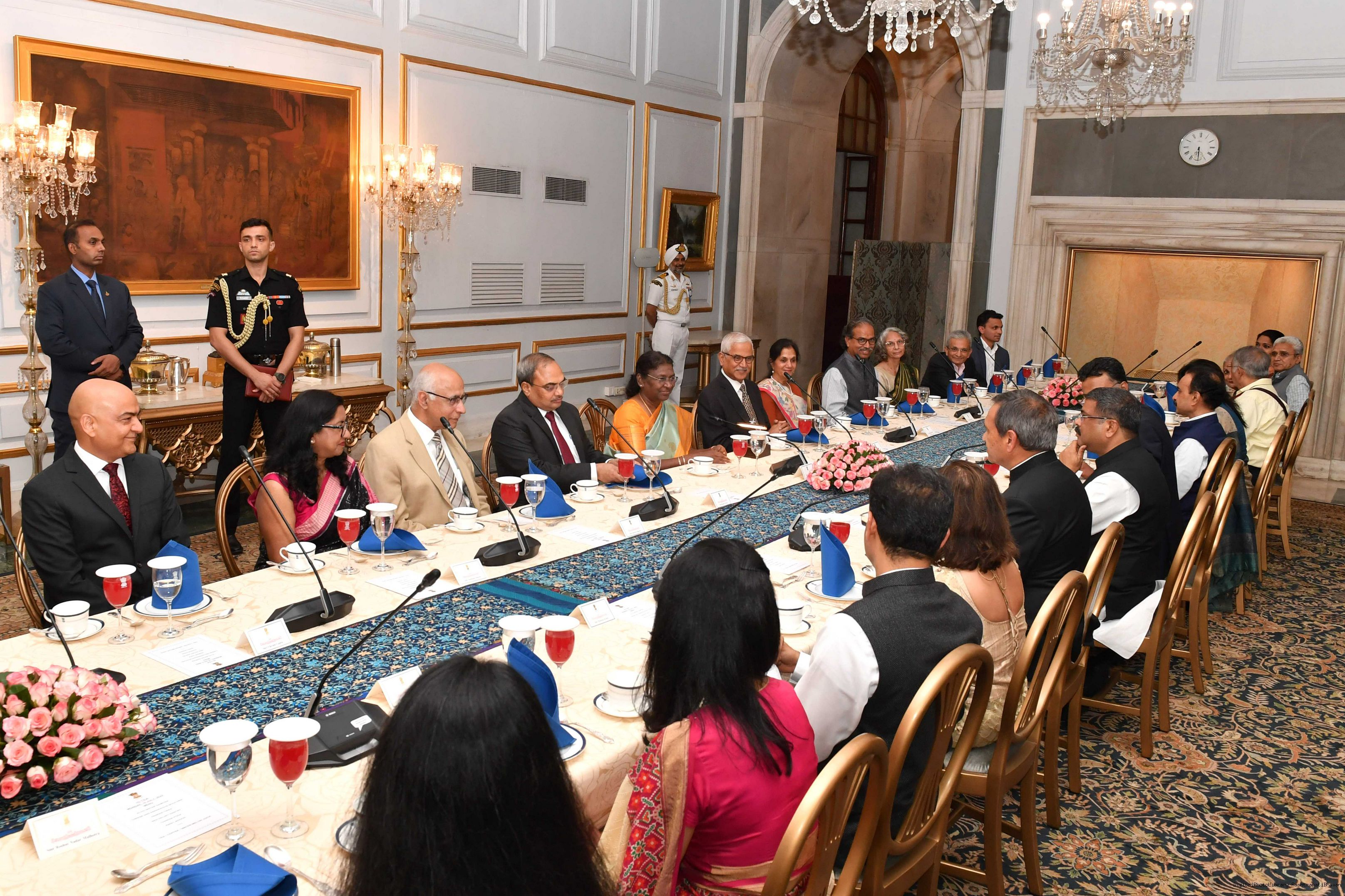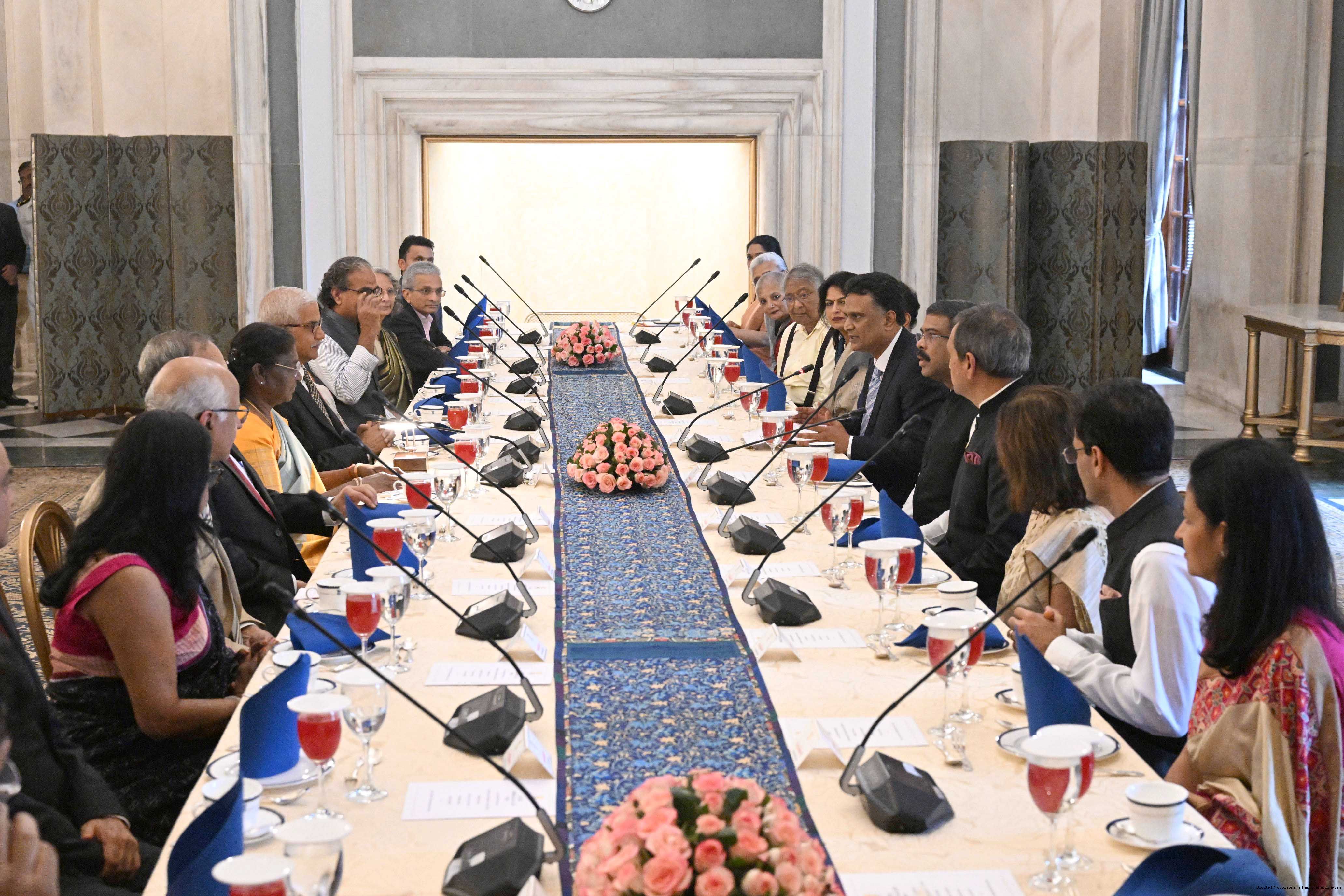 | Caption: | The President of India, Smt Droupadi Murmu meeting with Eminent Personalities followed by Hi Tea at Rashtrapati Bhavan on July 10, 2023. |