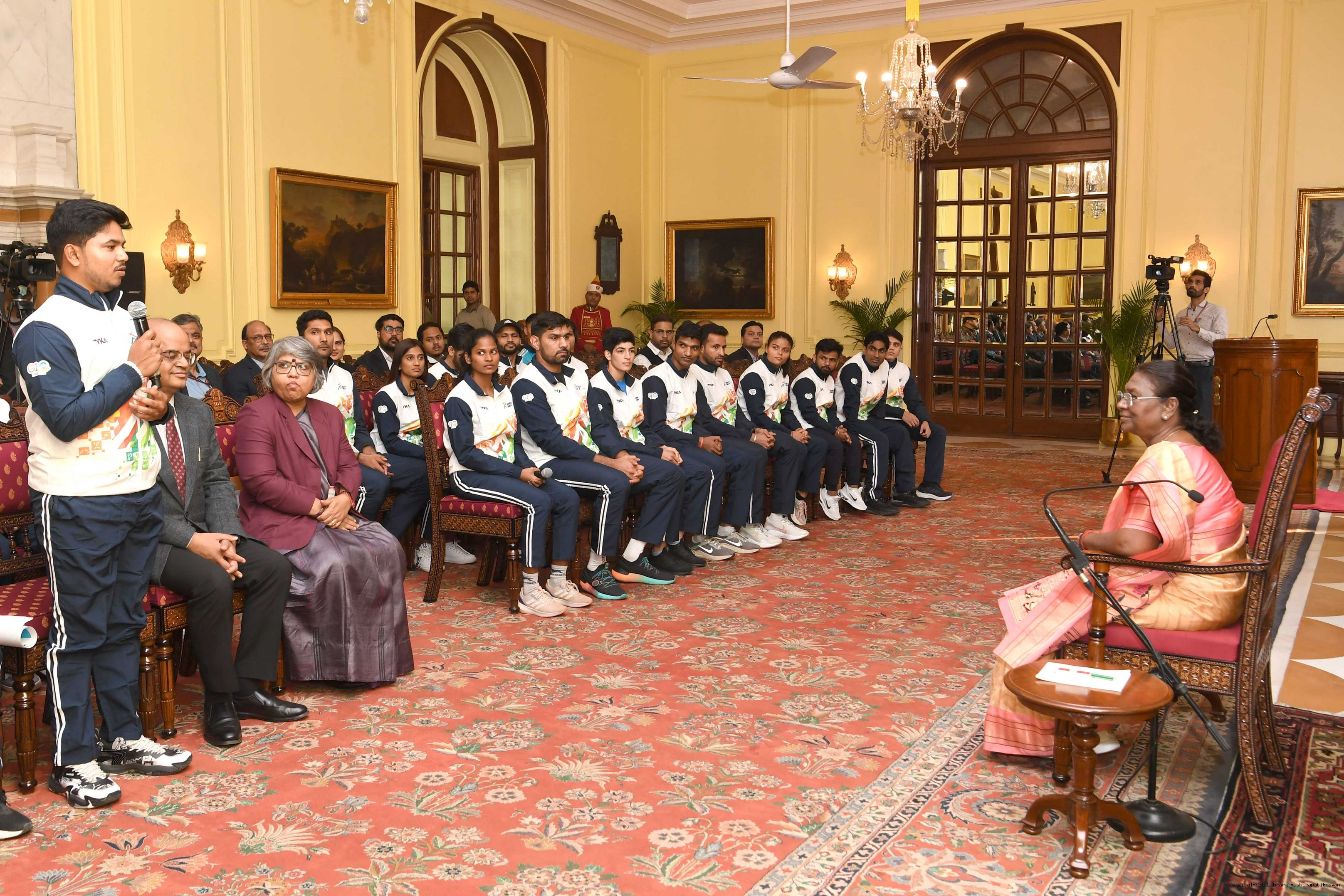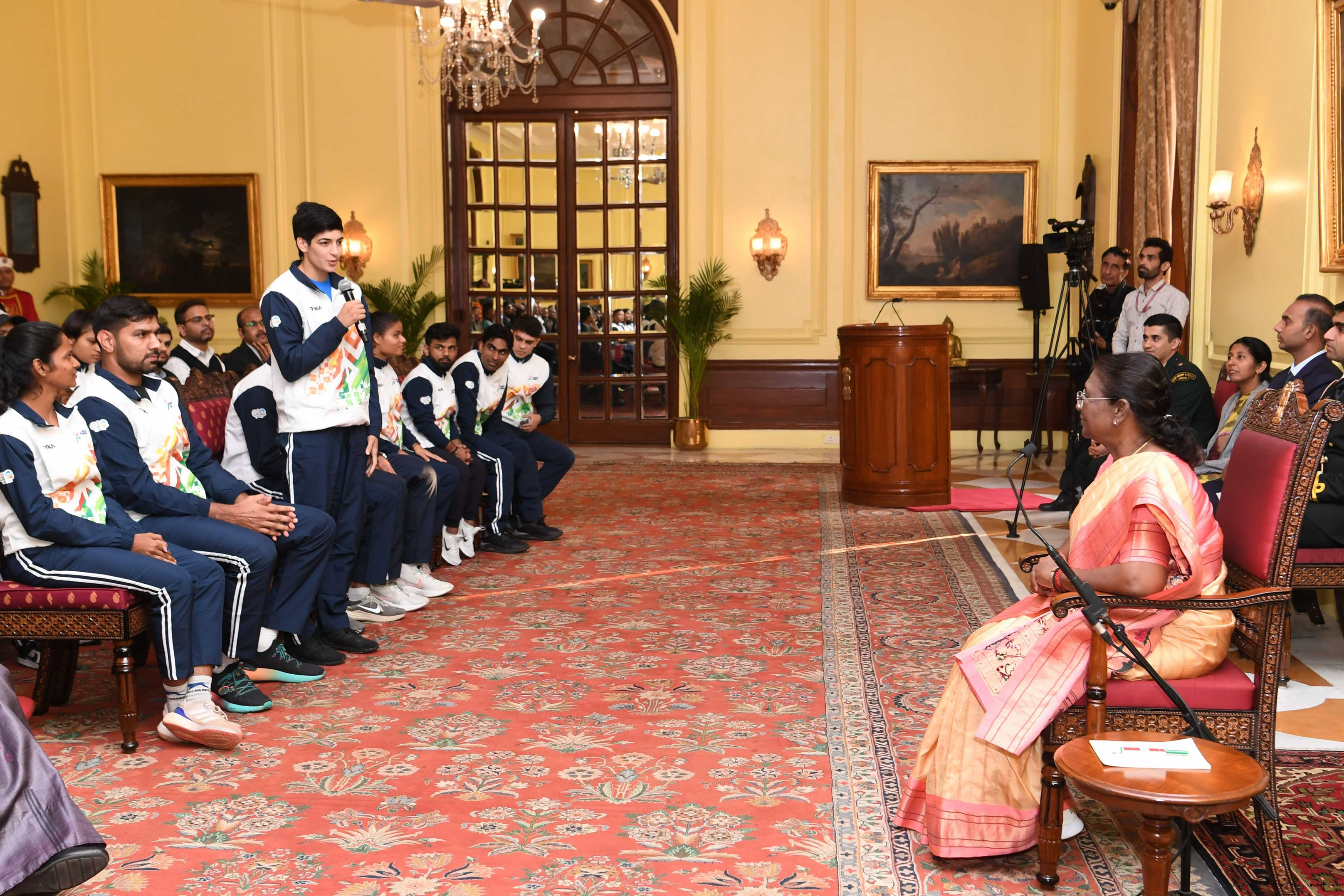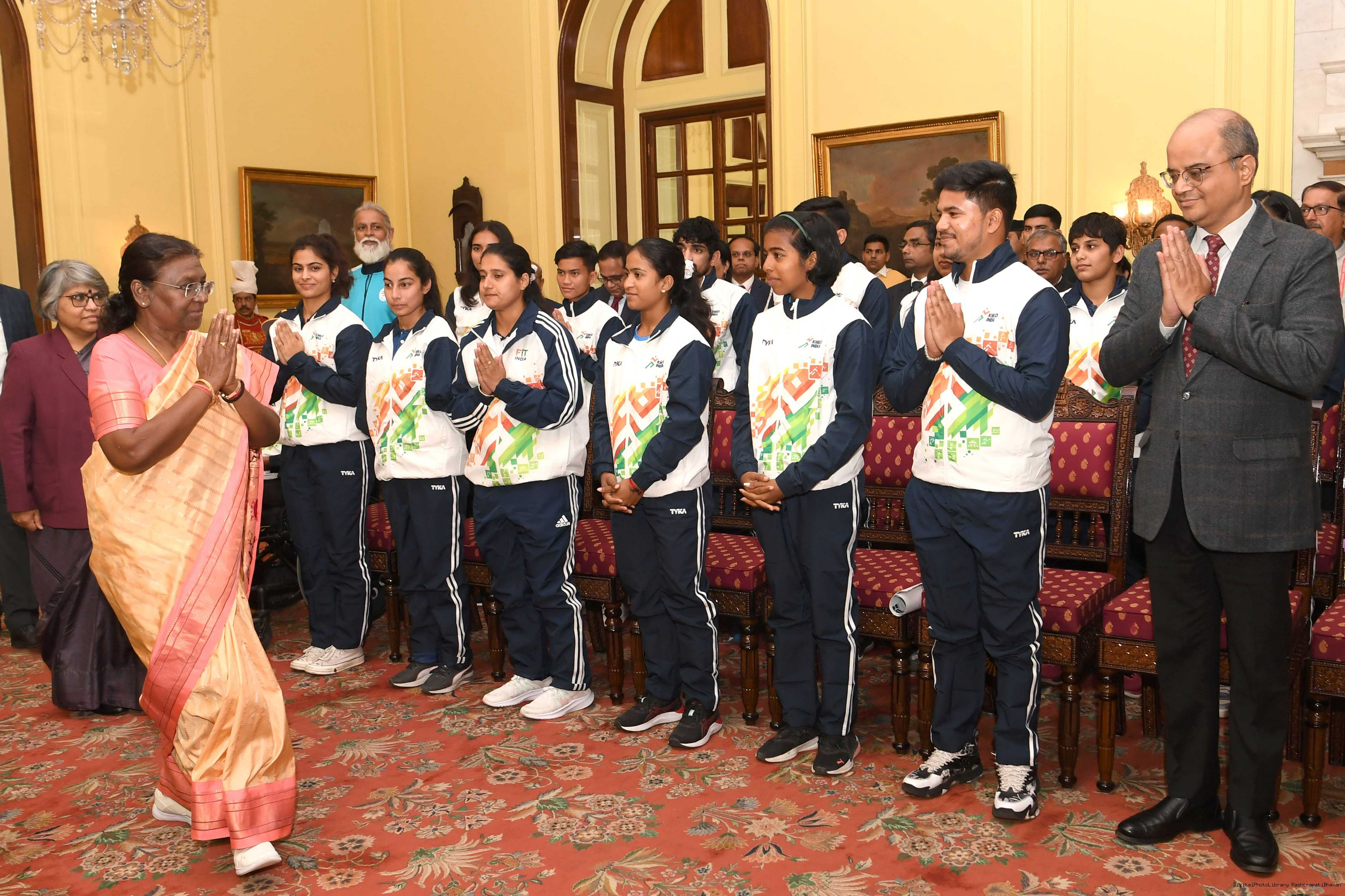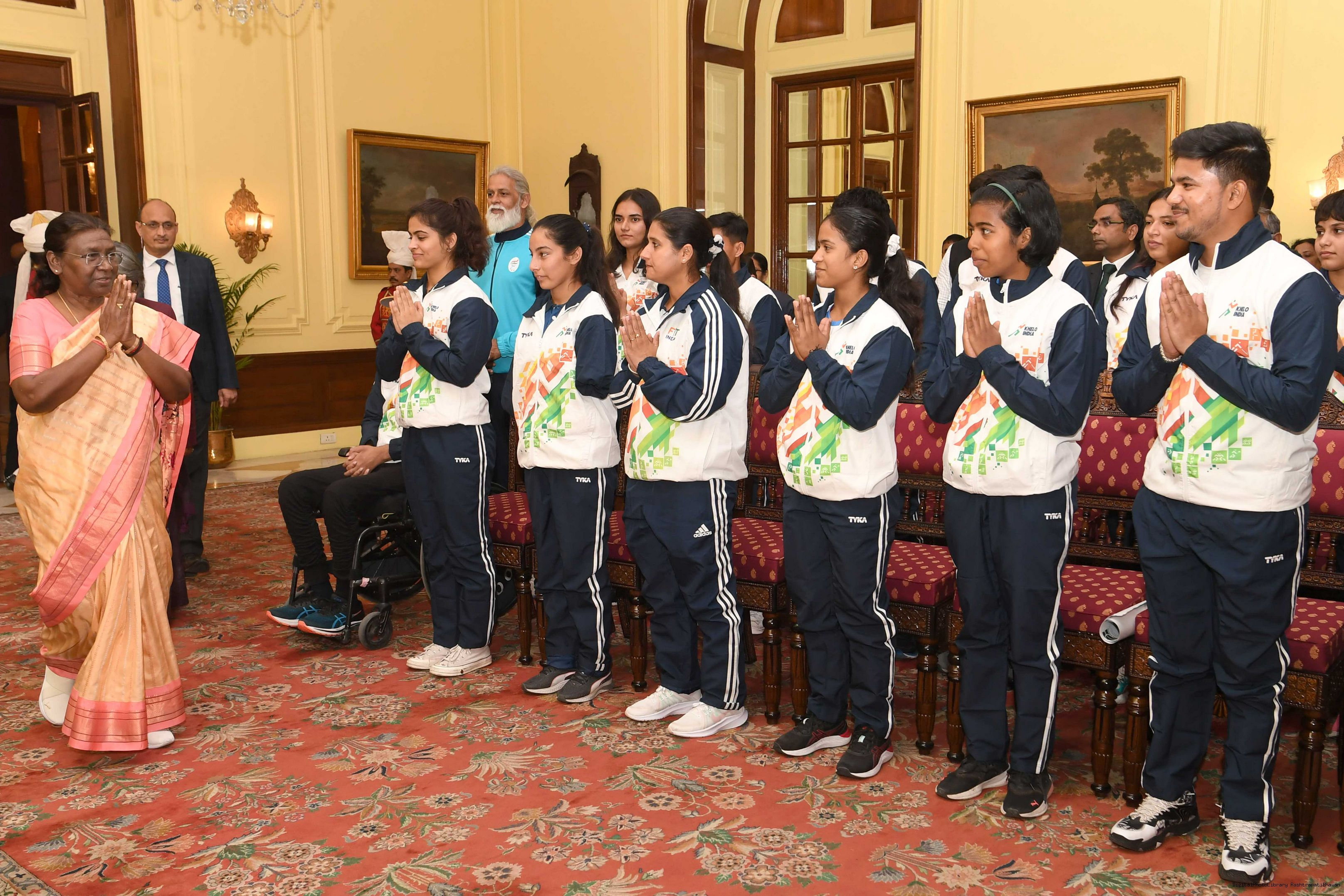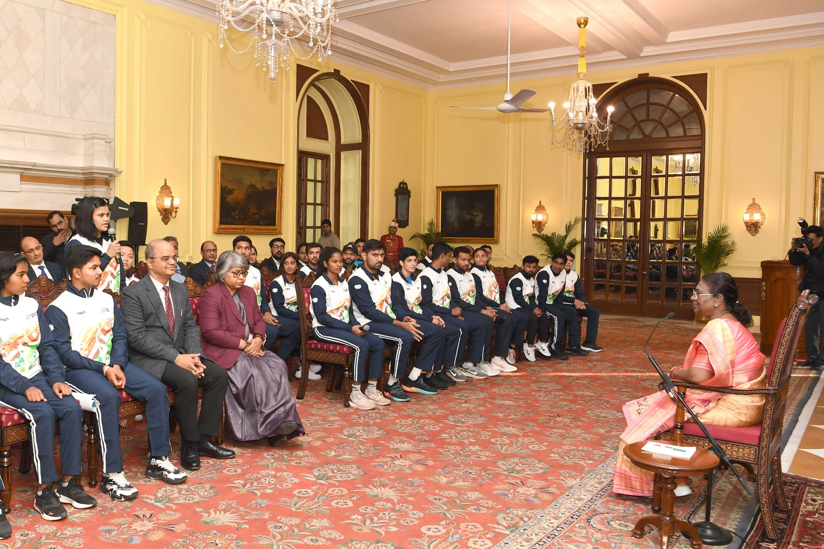 | Caption: | A group of sportspersons met the President of India, Smt Droupadi Murmu at Rashtrapati Bhavan on December 8, 2023. |
