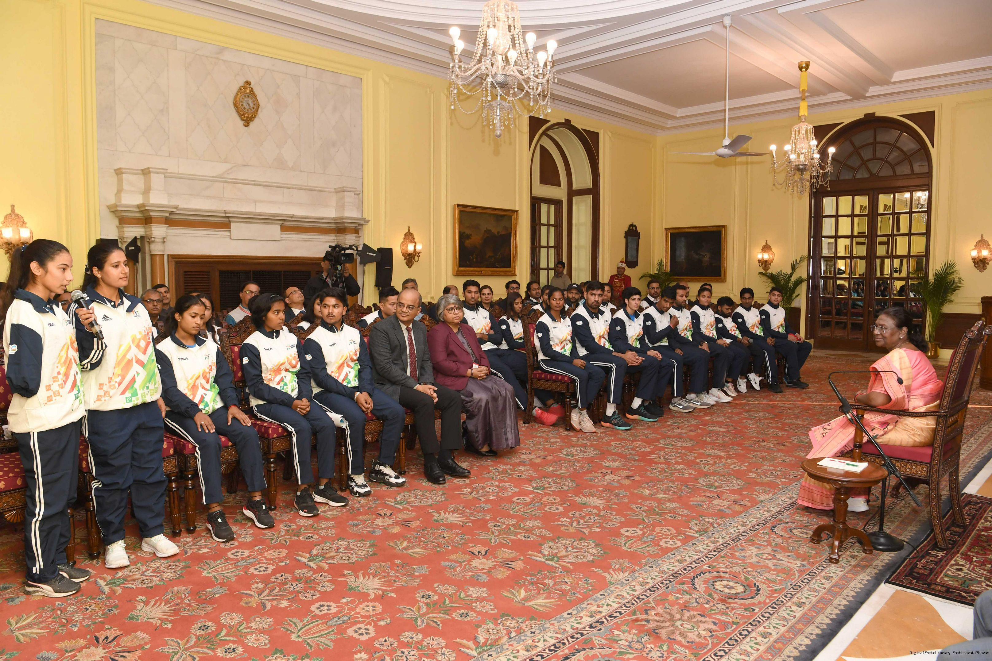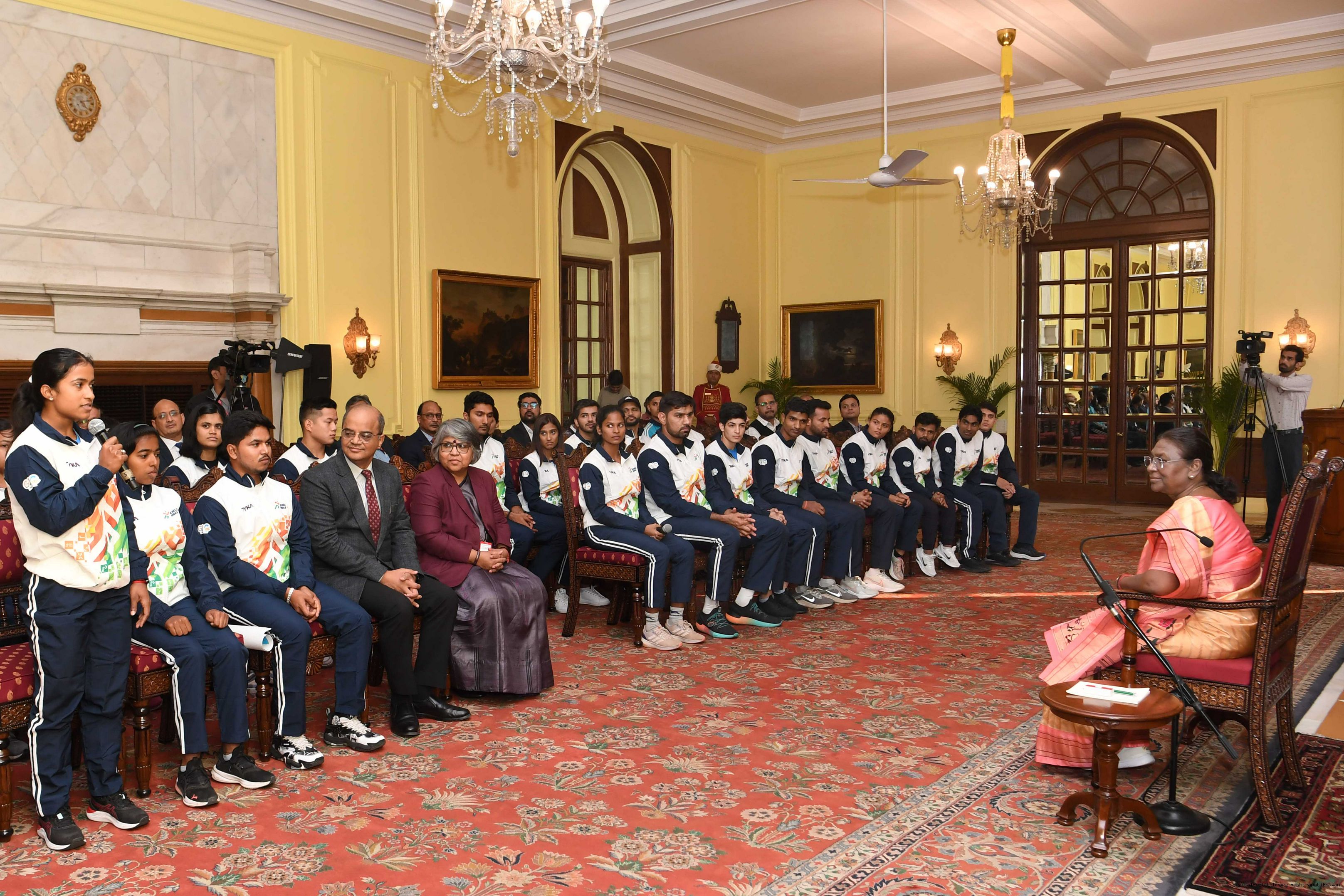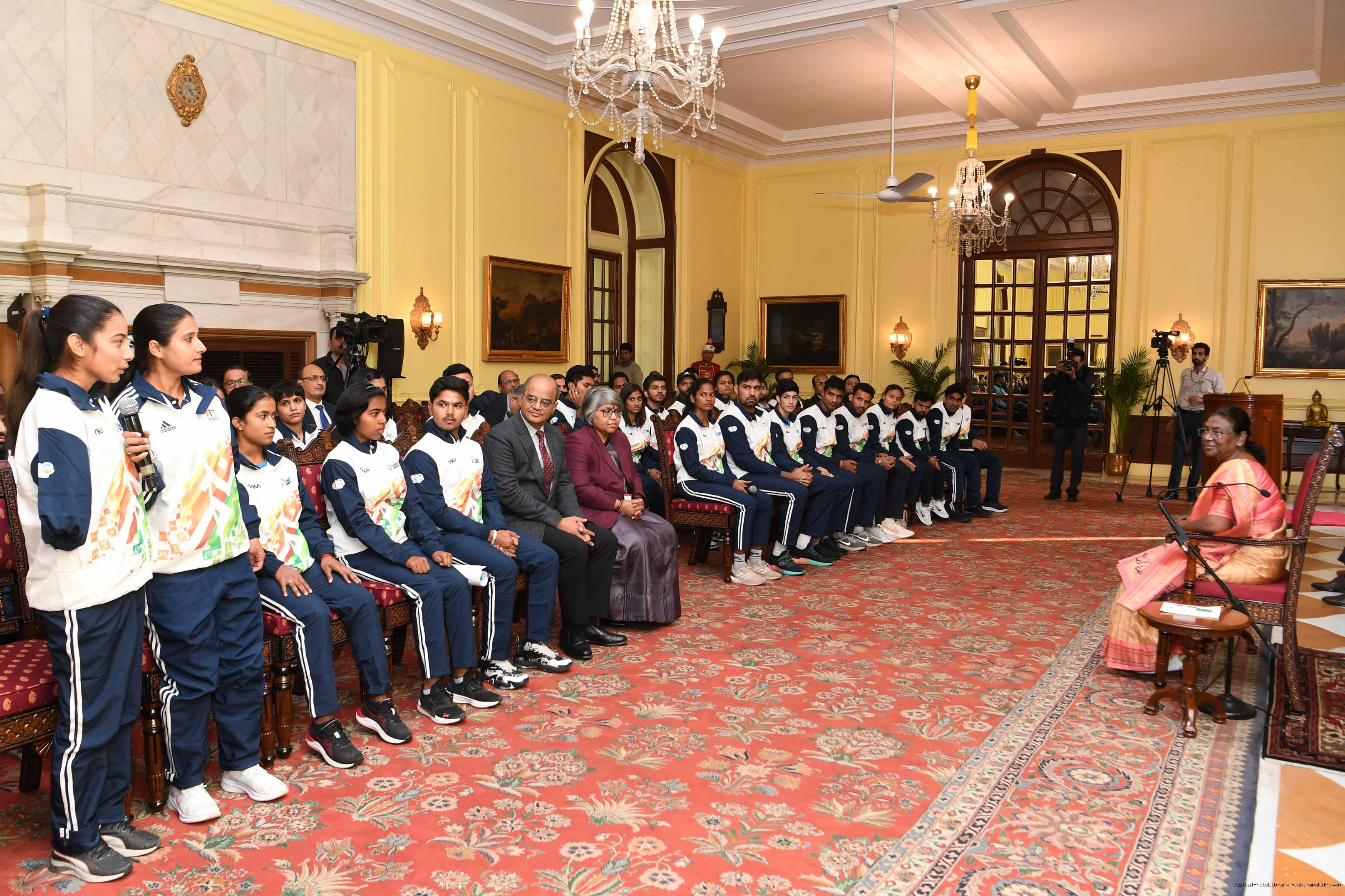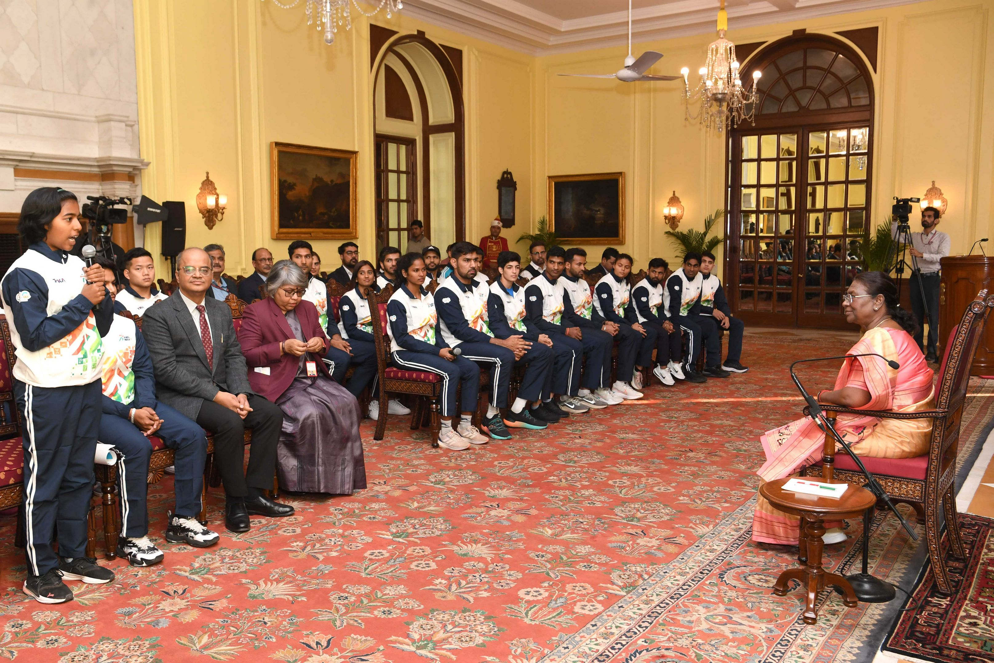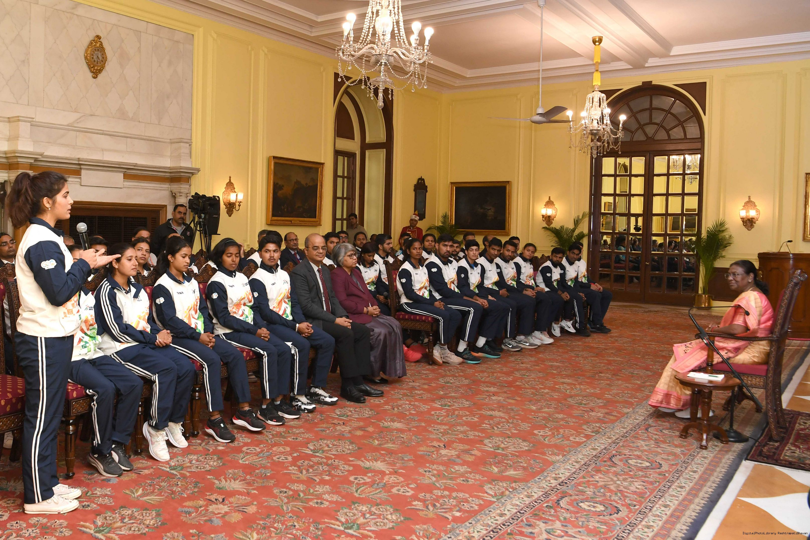| Caption: | A group of sportspersons met the President of India, Smt Droupadi Murmu at Rashtrapati Bhavan on December 8, 2023. |