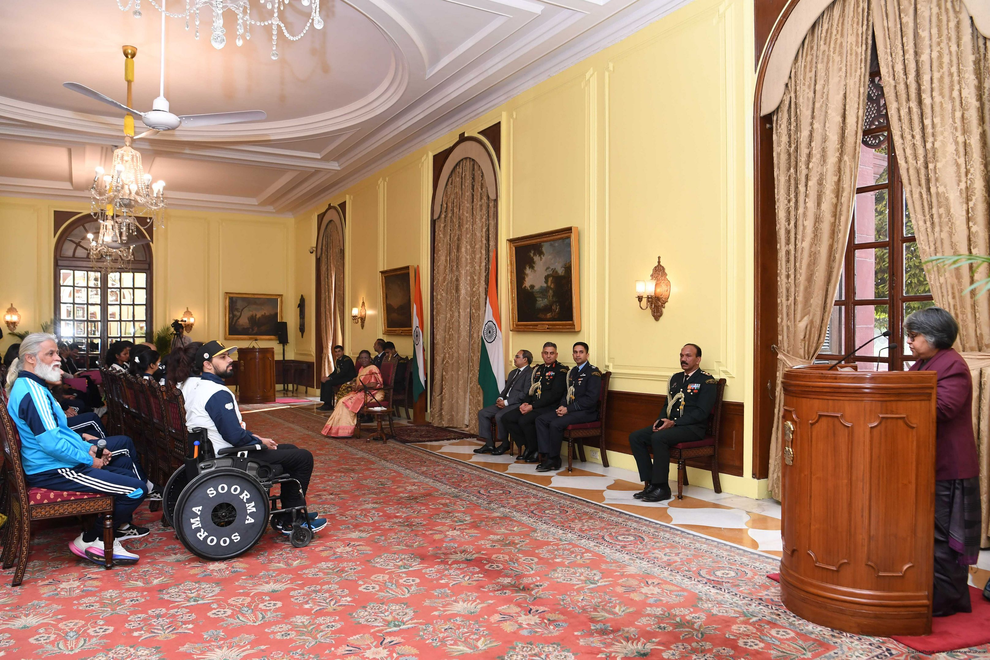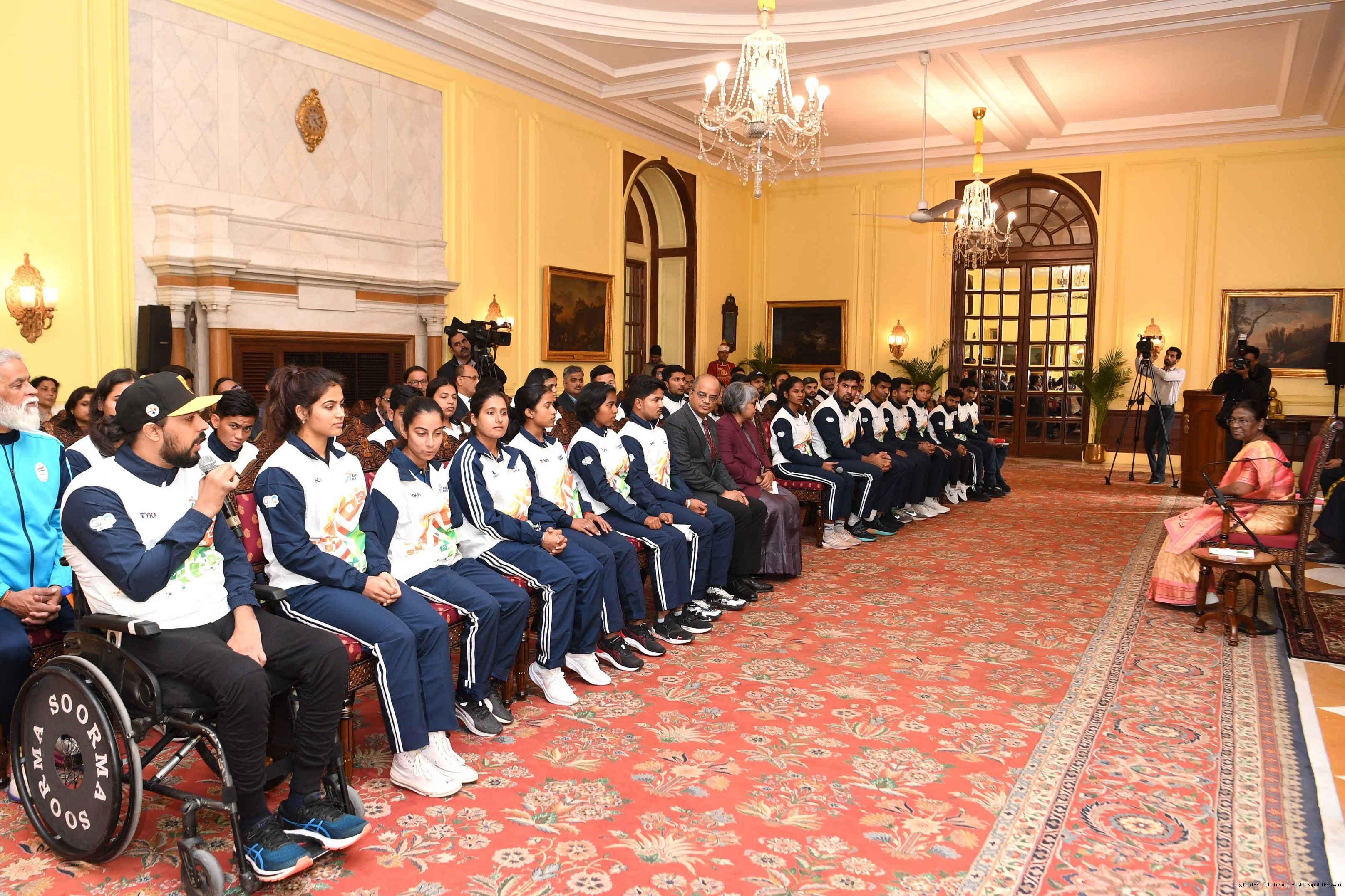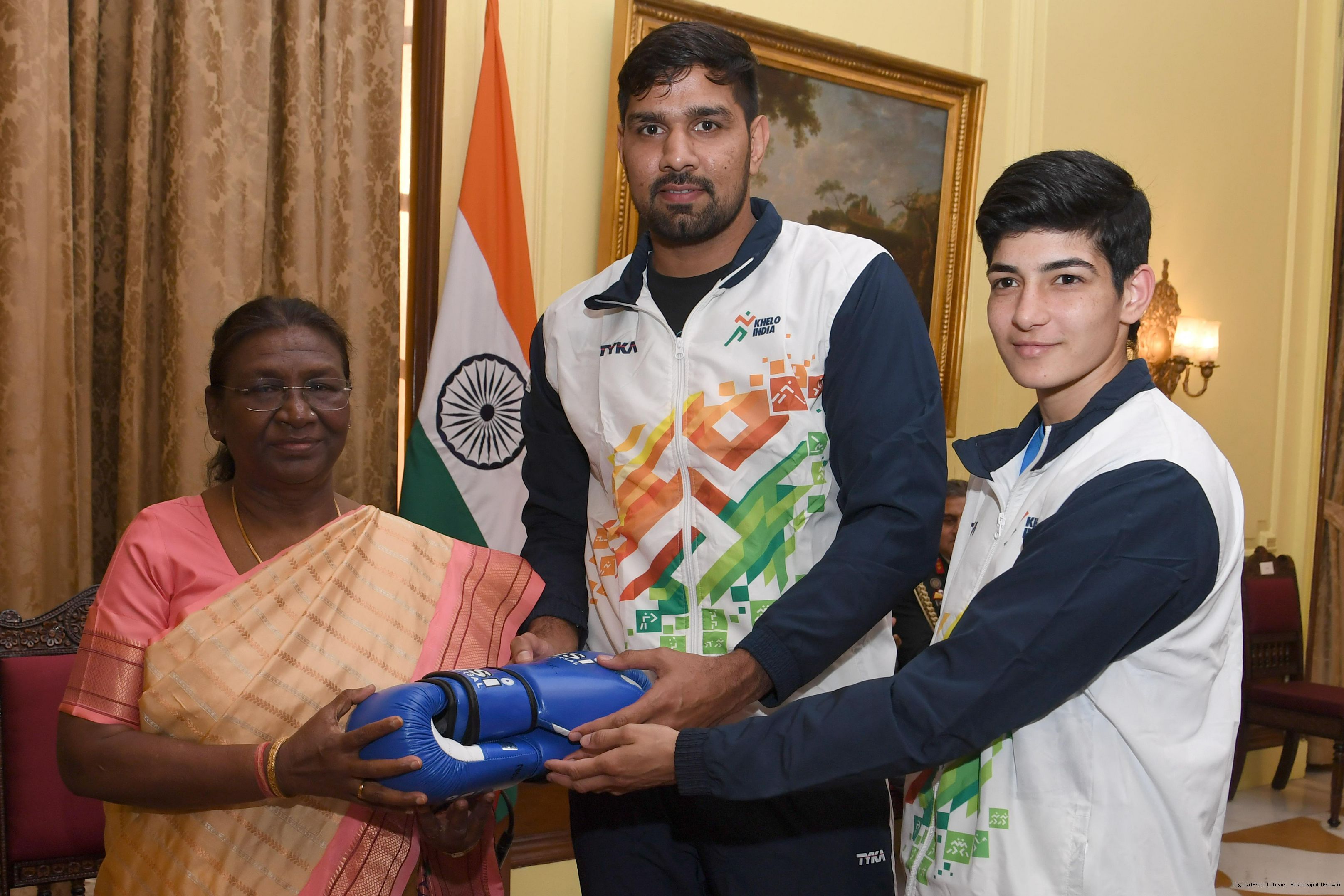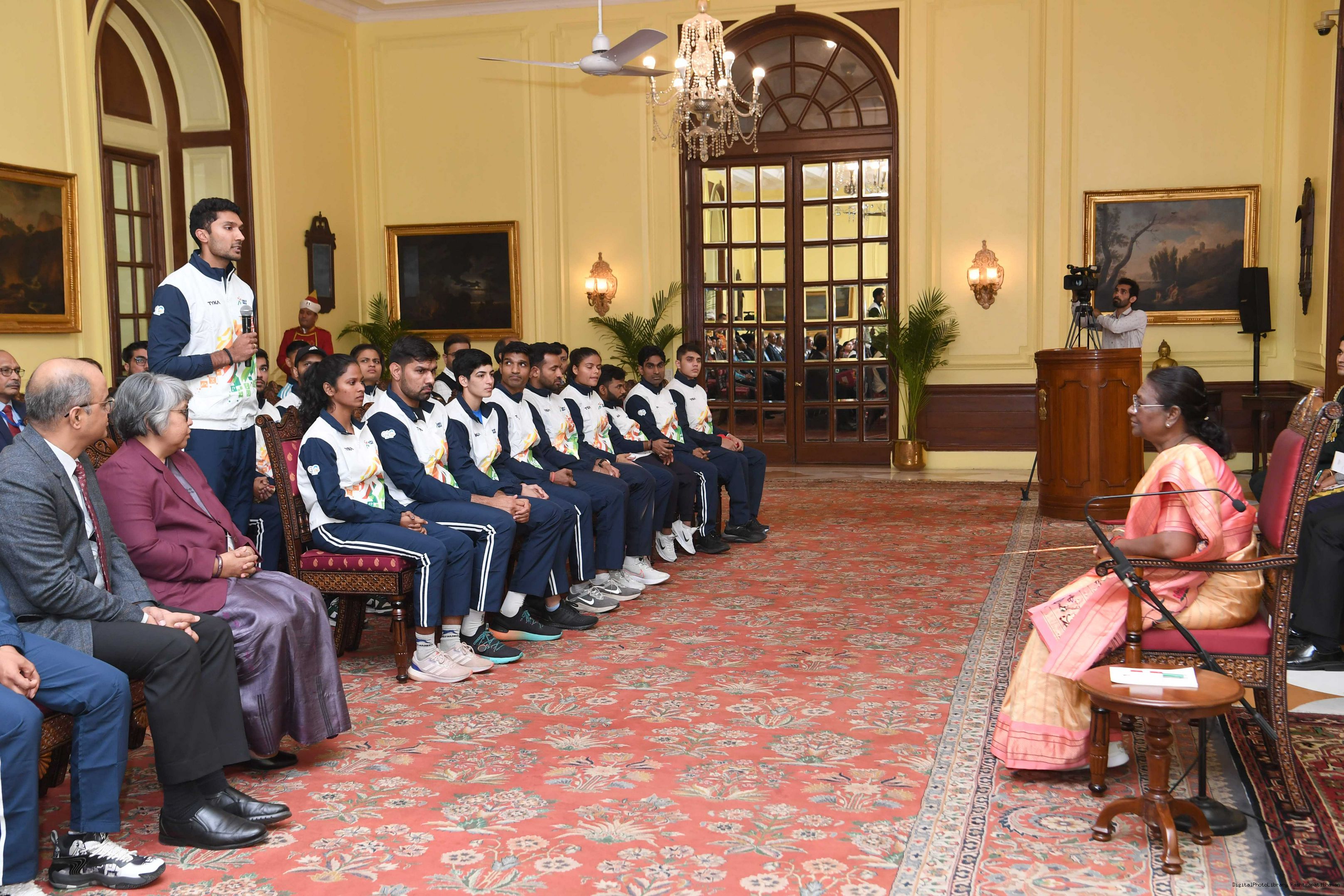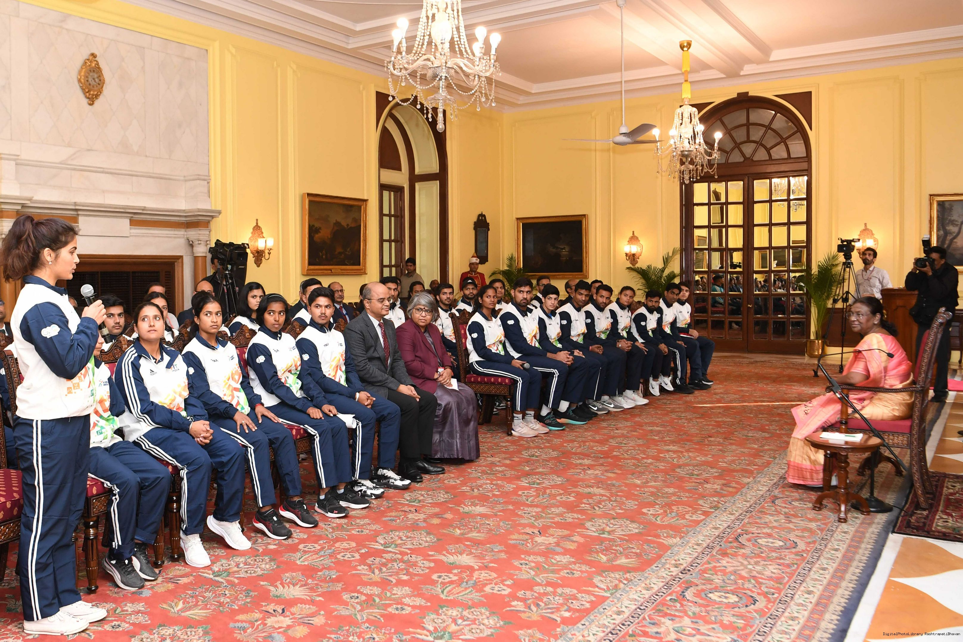 | Caption: | A group of sportspersons met the President of India, Smt Droupadi Murmu at Rashtrapati Bhavan on December 8, 2023. |
