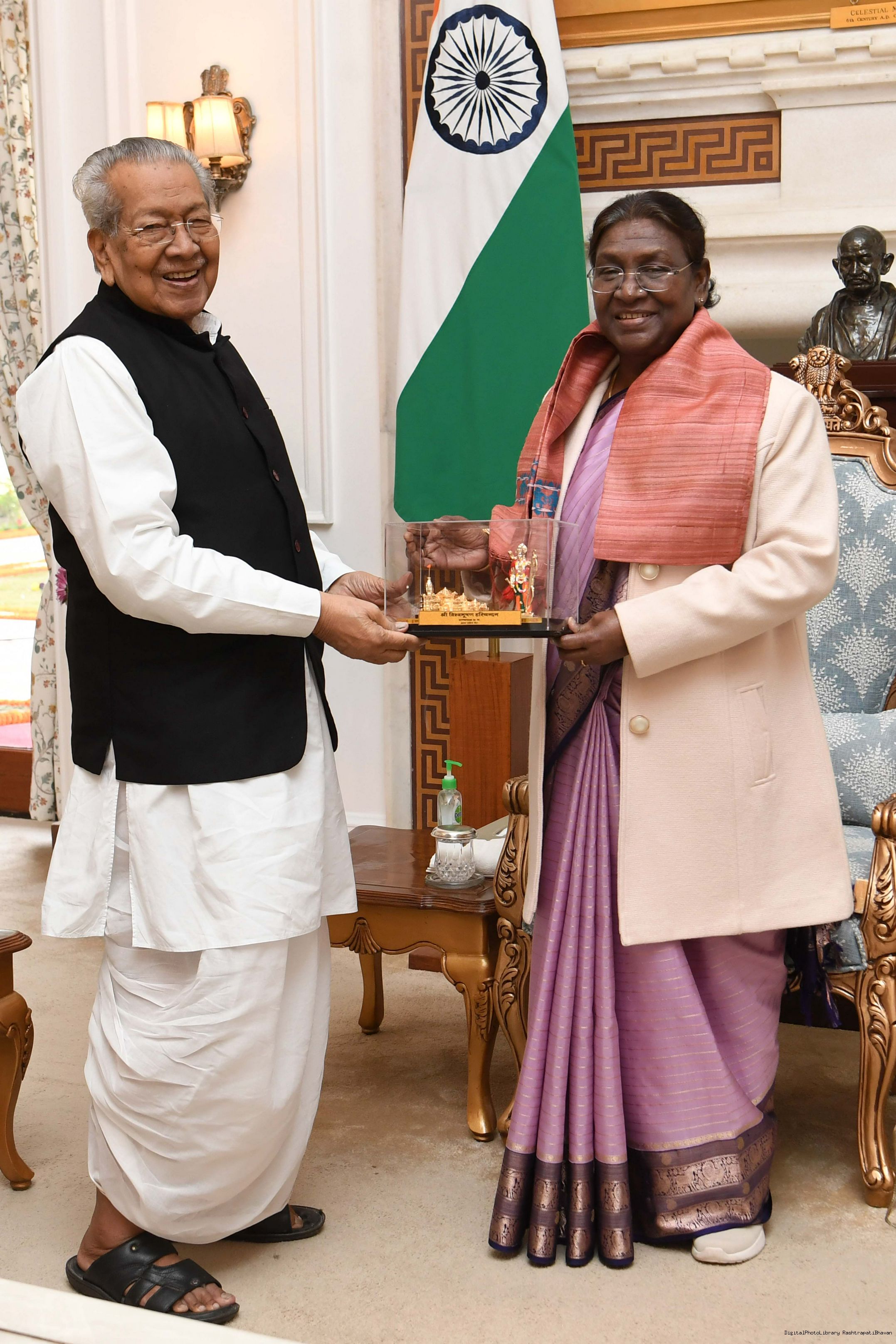 | Caption: | The Governor of Chhattisgarh, Shri Biswabhushan Harichandan called on the President of India Smt. Droupadi Murmu at Rashtrapati Bhavan on January 29-01-2024. |